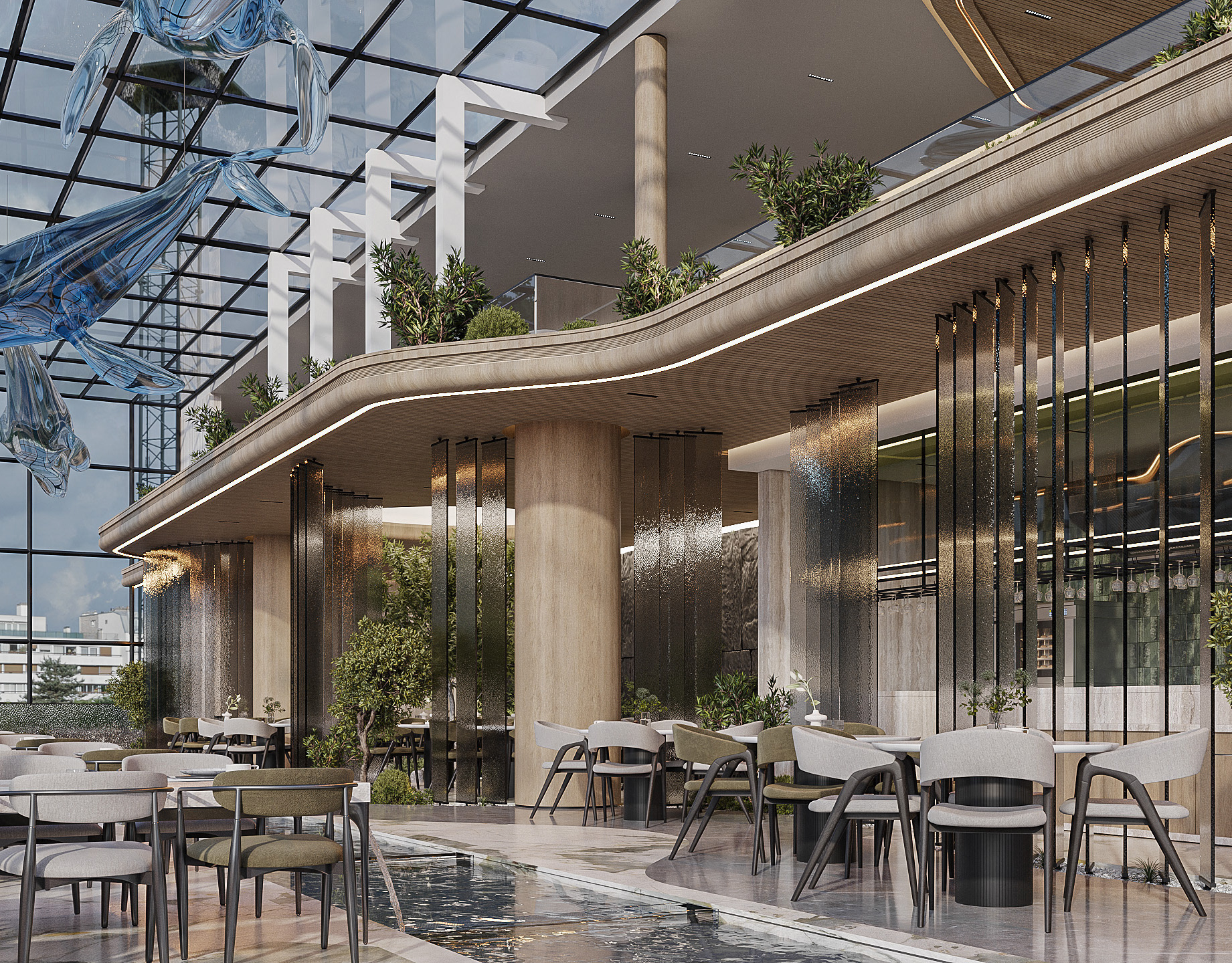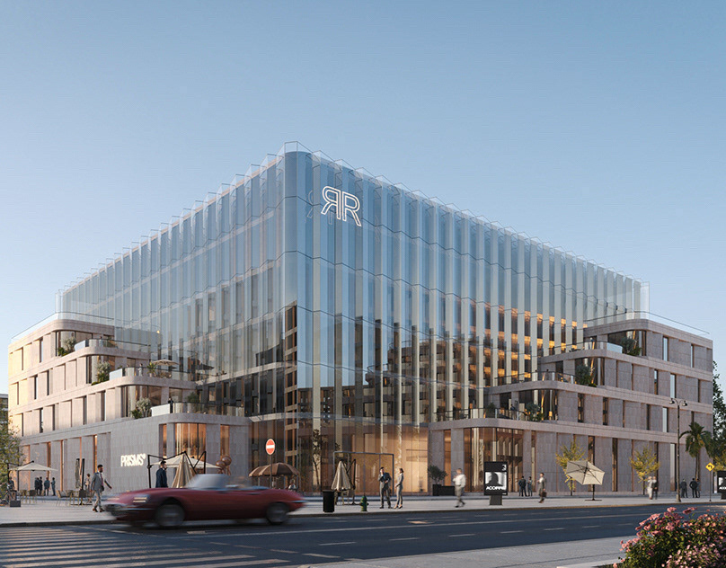 At the heart of the project stands a monumental glass volume, visually lighter and more expressive, symbolizing the transformation of stone into glass.