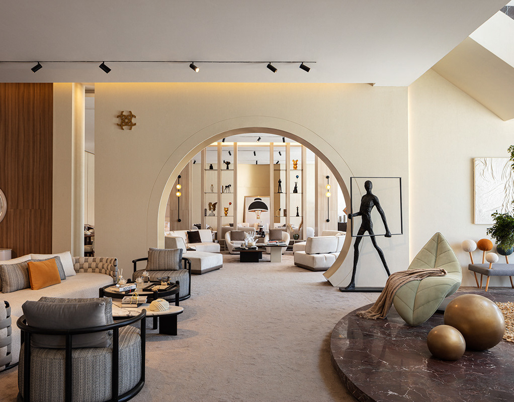 This design beautifully aligns with the brand’s vision of combining luxury with a narrative journey, making each step through the showroom a unique experience.