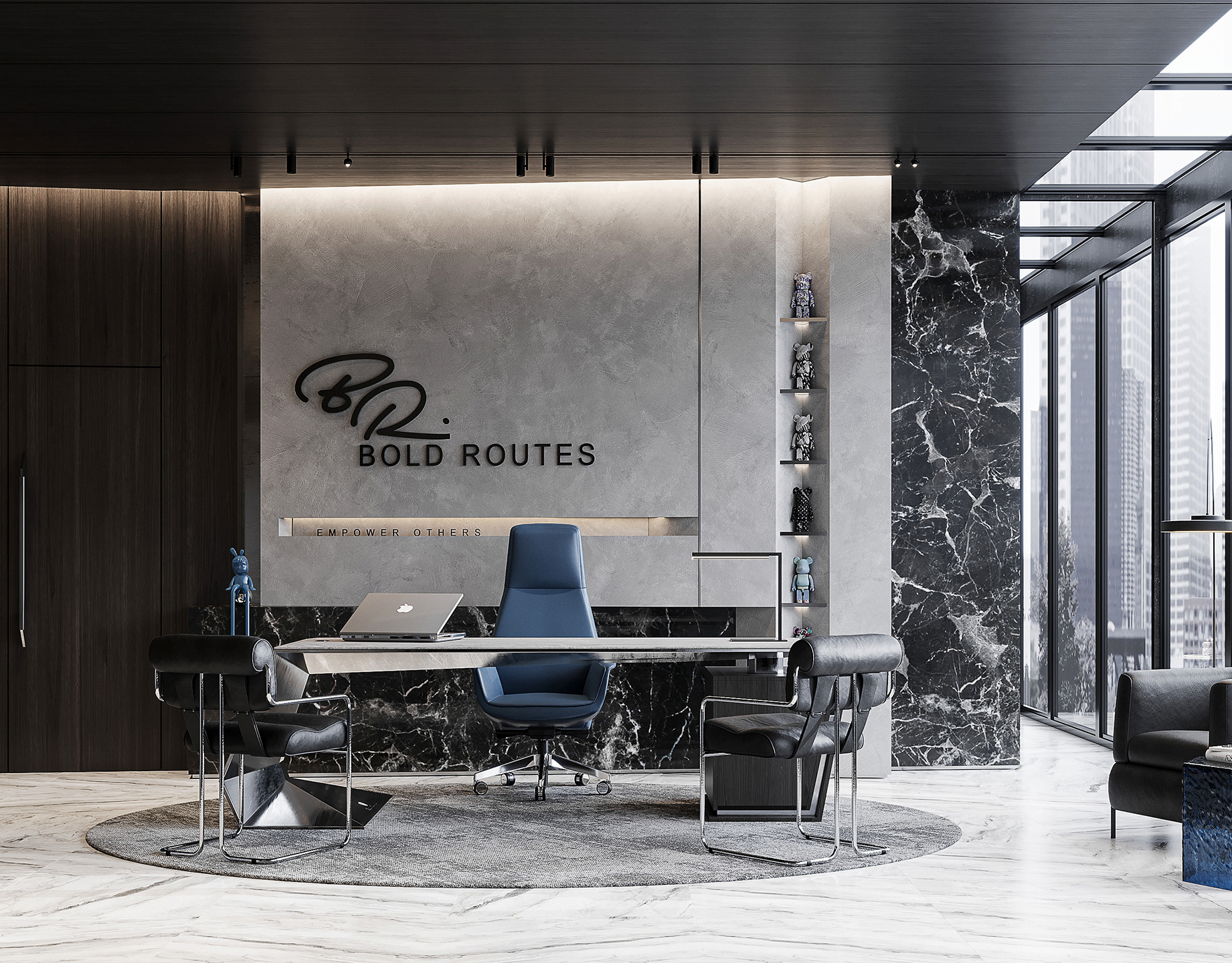 The project is an interior design for a corporate "Bold Rotes" the design concept is based on the identity of the corporate, designing for youth and giving statement of boldness and professionality.