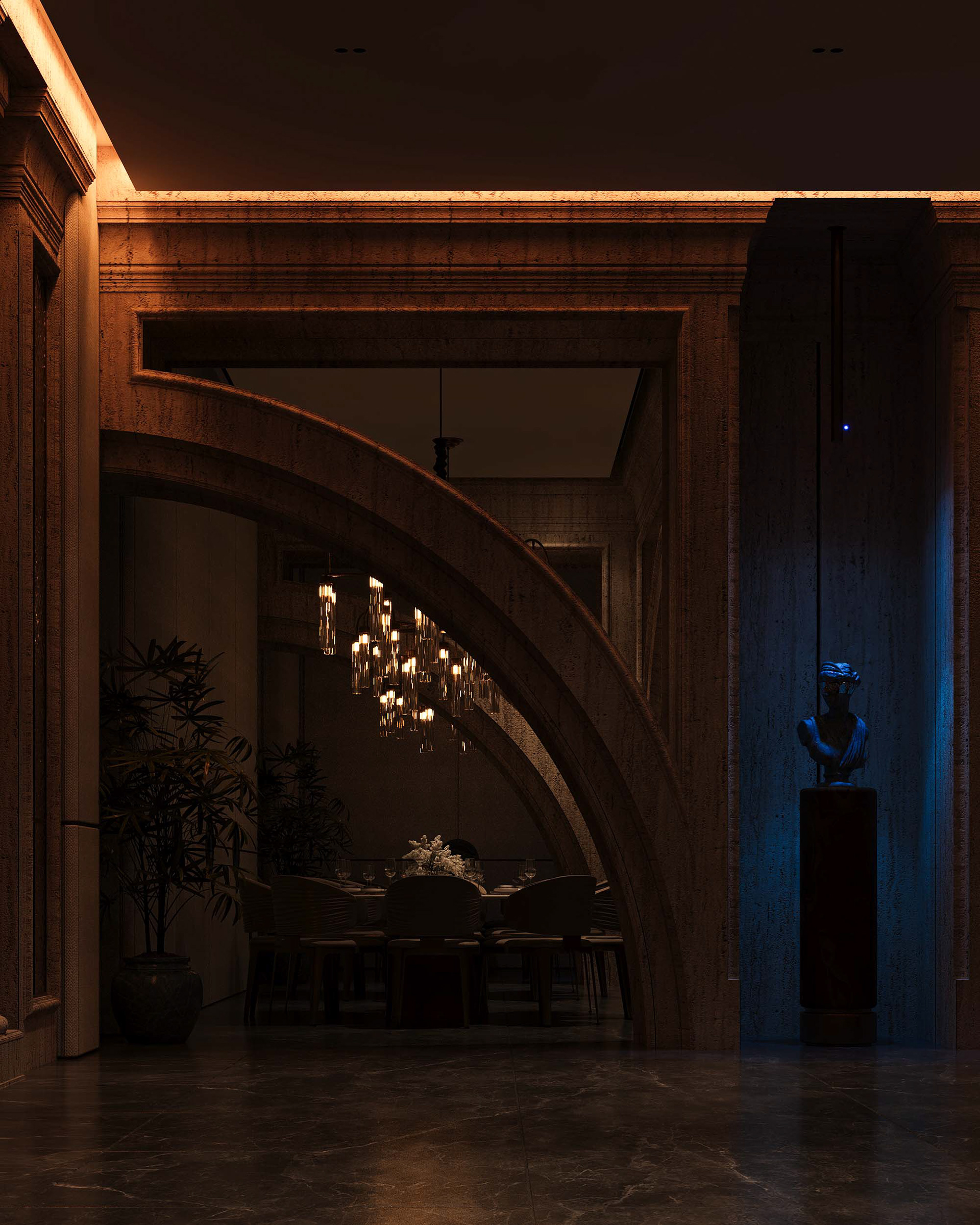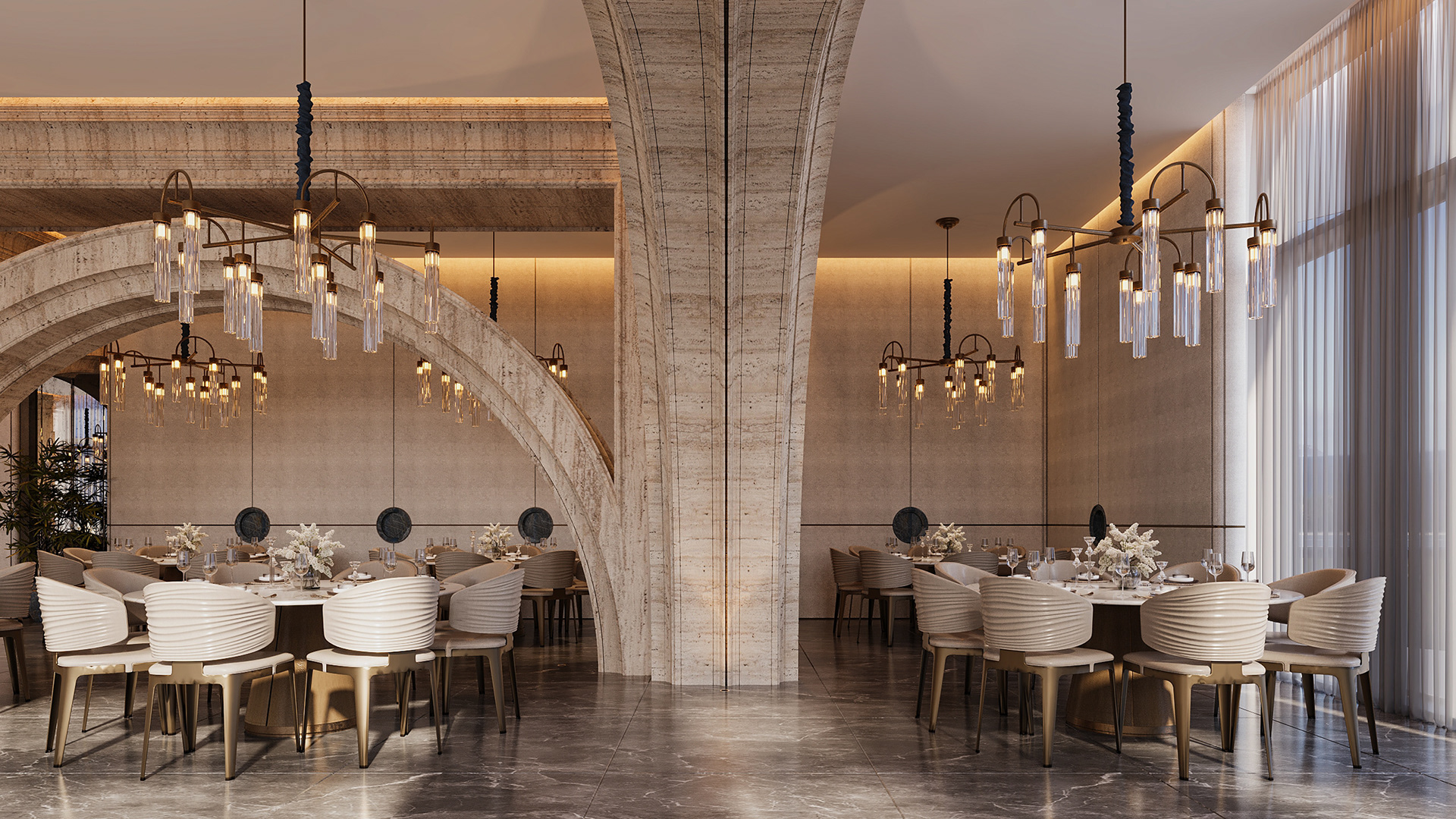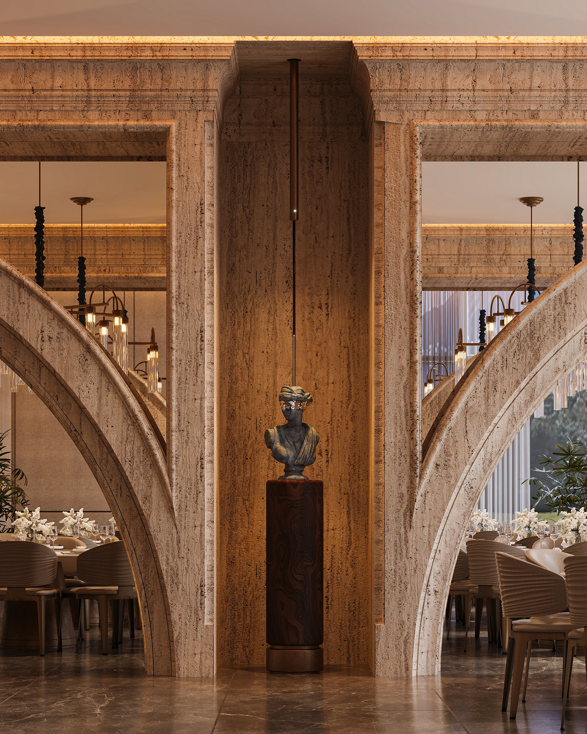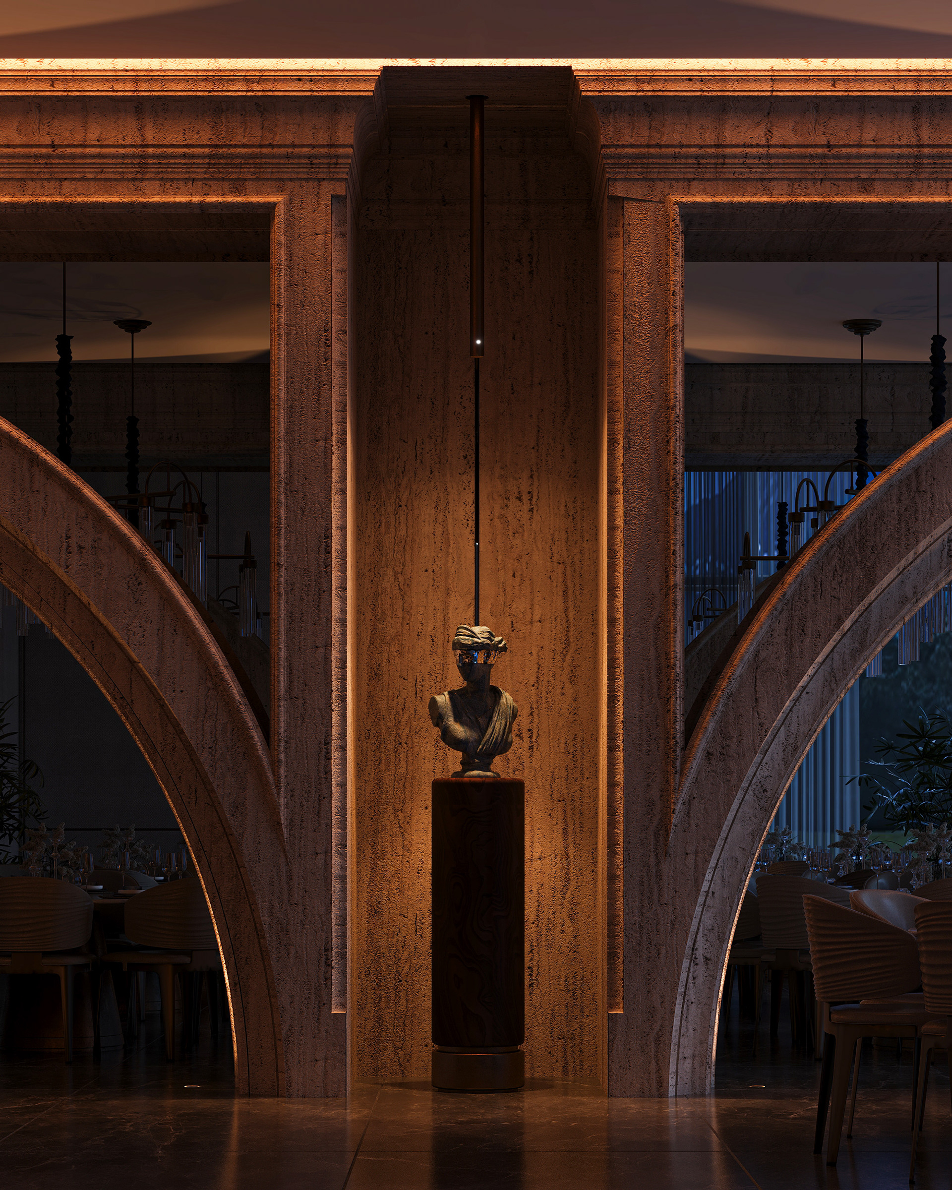 The concept is based on gradually revealing the development of the space starting from the primary mass, moving through the formation of walls and openings, and concluding with the architectural details that enhance the project's visual identity.