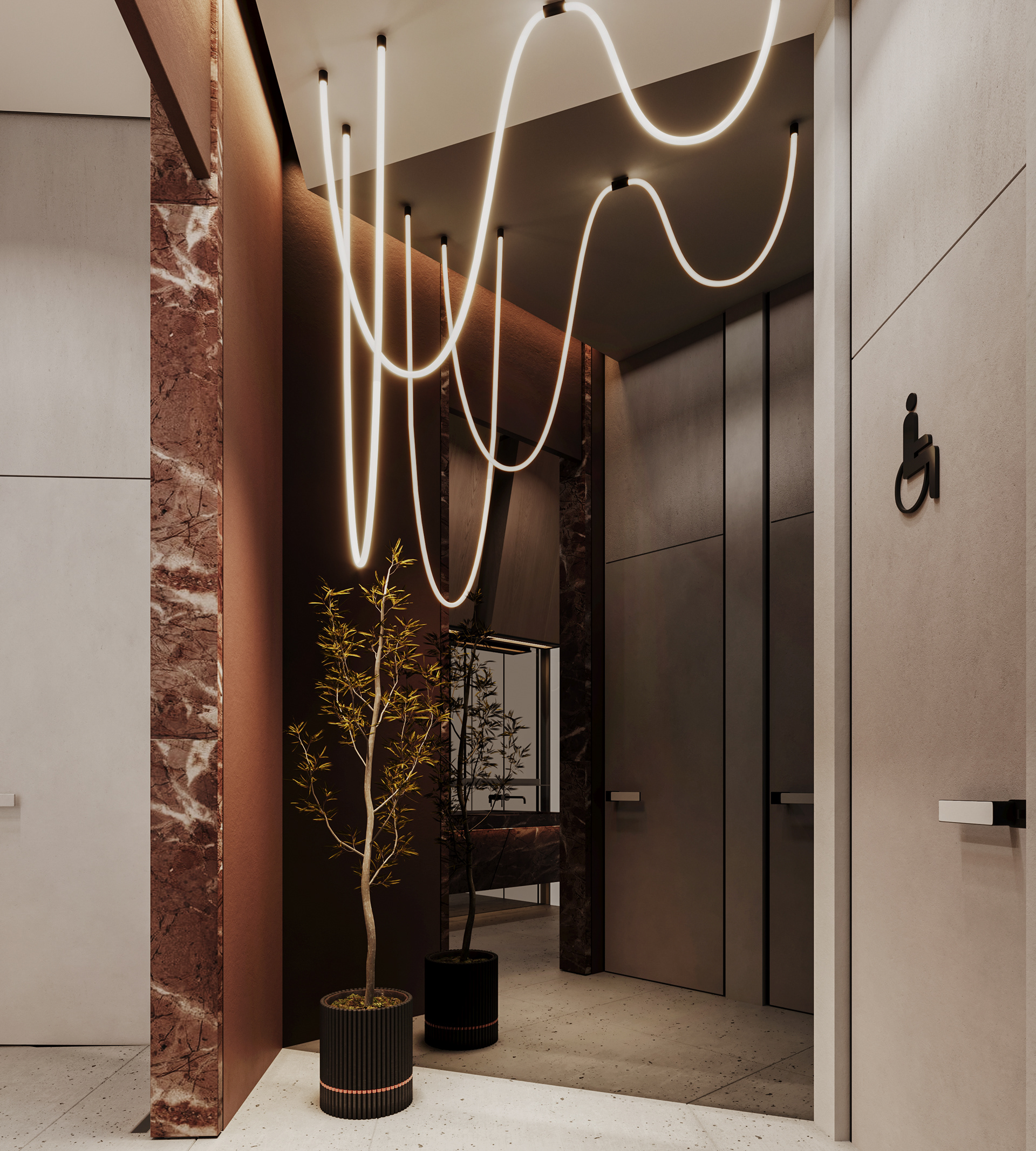 Every detail, from the lighting strategy to the alignment of finishes, was crafted to express balance, rhythm, and calm luxury, aligning with the overall design language of the commercial hub.