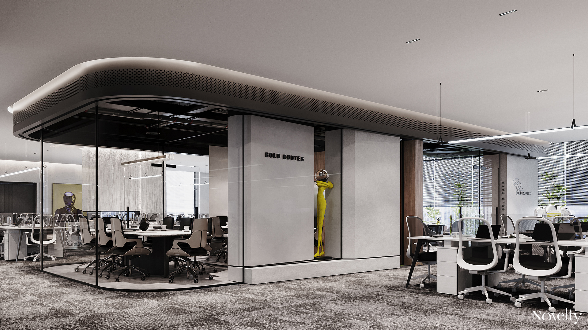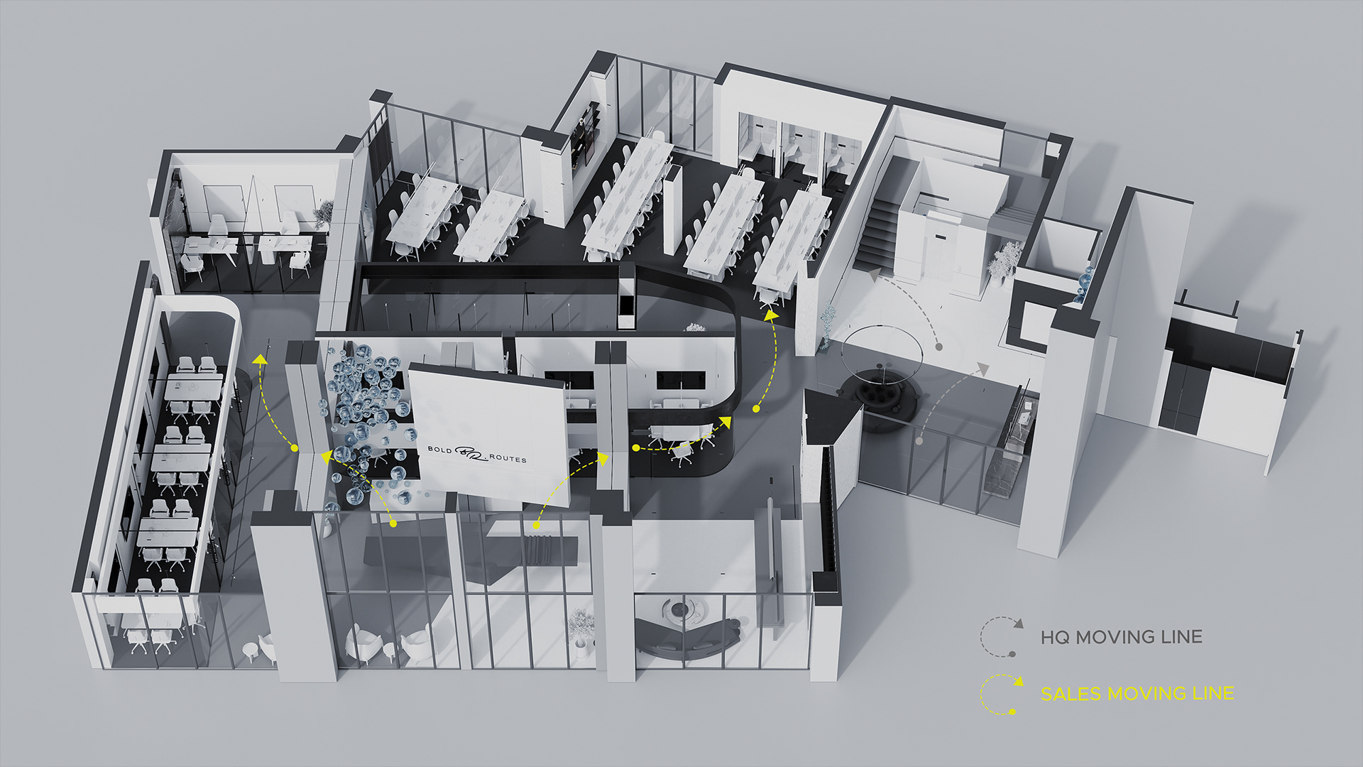 The project is an interior design for a corporate "Bold Rotes" the design concept is based on the identity of the corporate, designing for youth and giving statement of boldness and professionality.