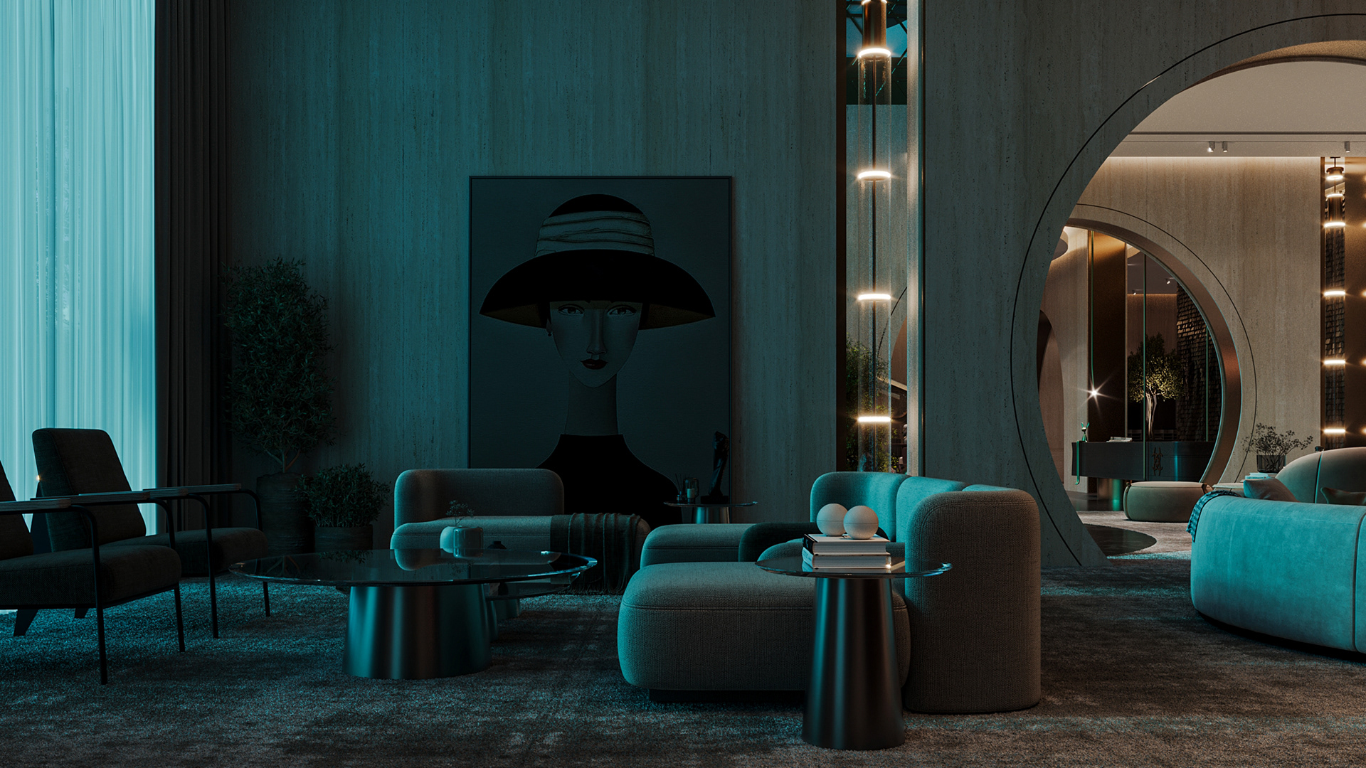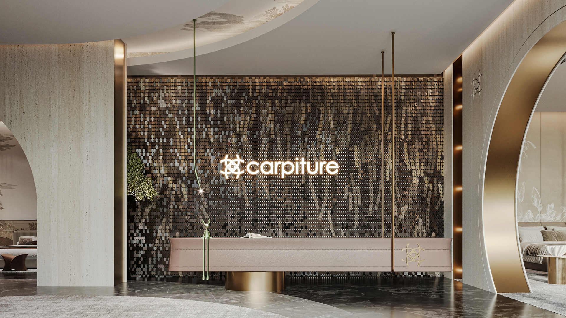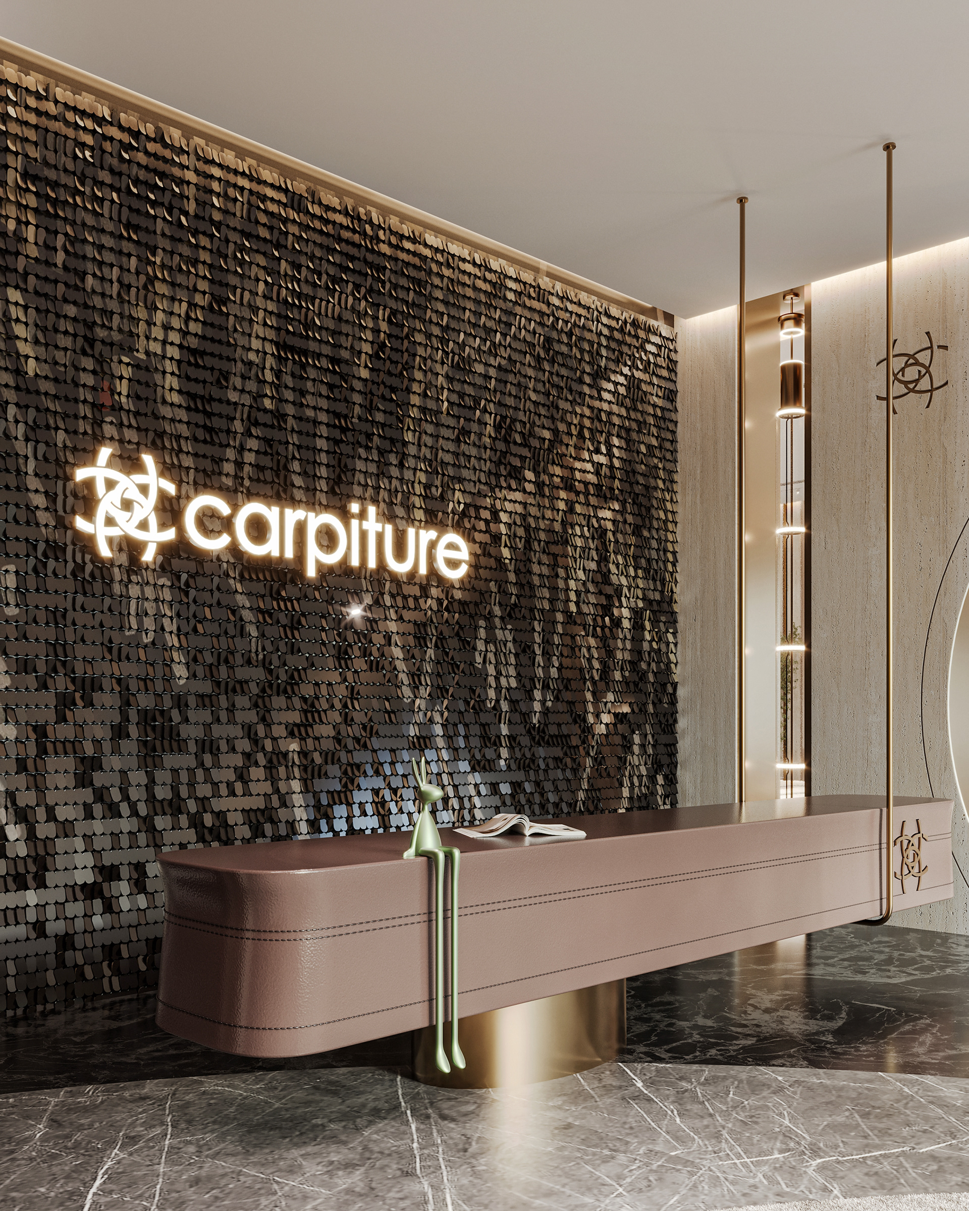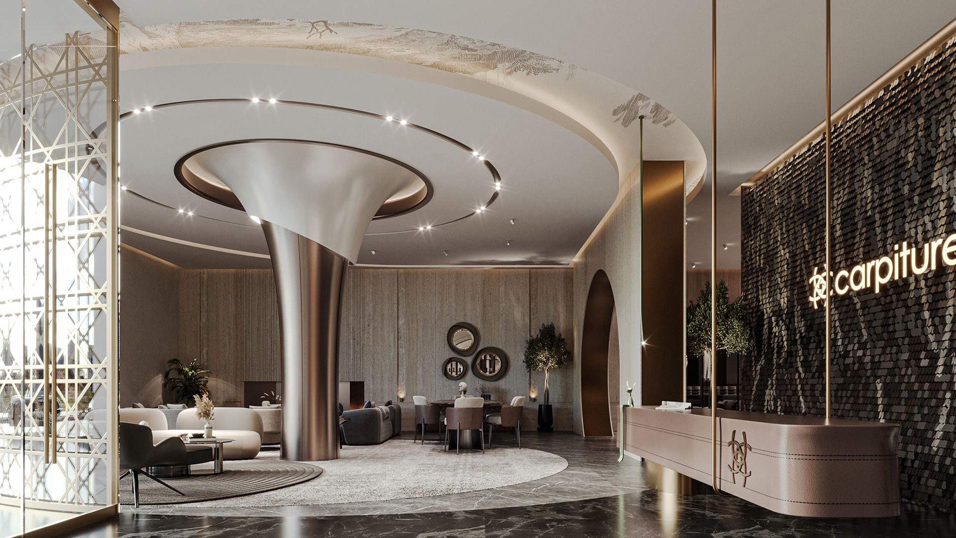 Carpiture, a furniture showroom located in Sheikh Zayed, Cairo, is designed to reflect the human journey through the universe, using the moon as its guiding concept. This theme is expressed through three key areas: the entrance, the staircase, and the chimney, each represented by a circular, moon-like form.