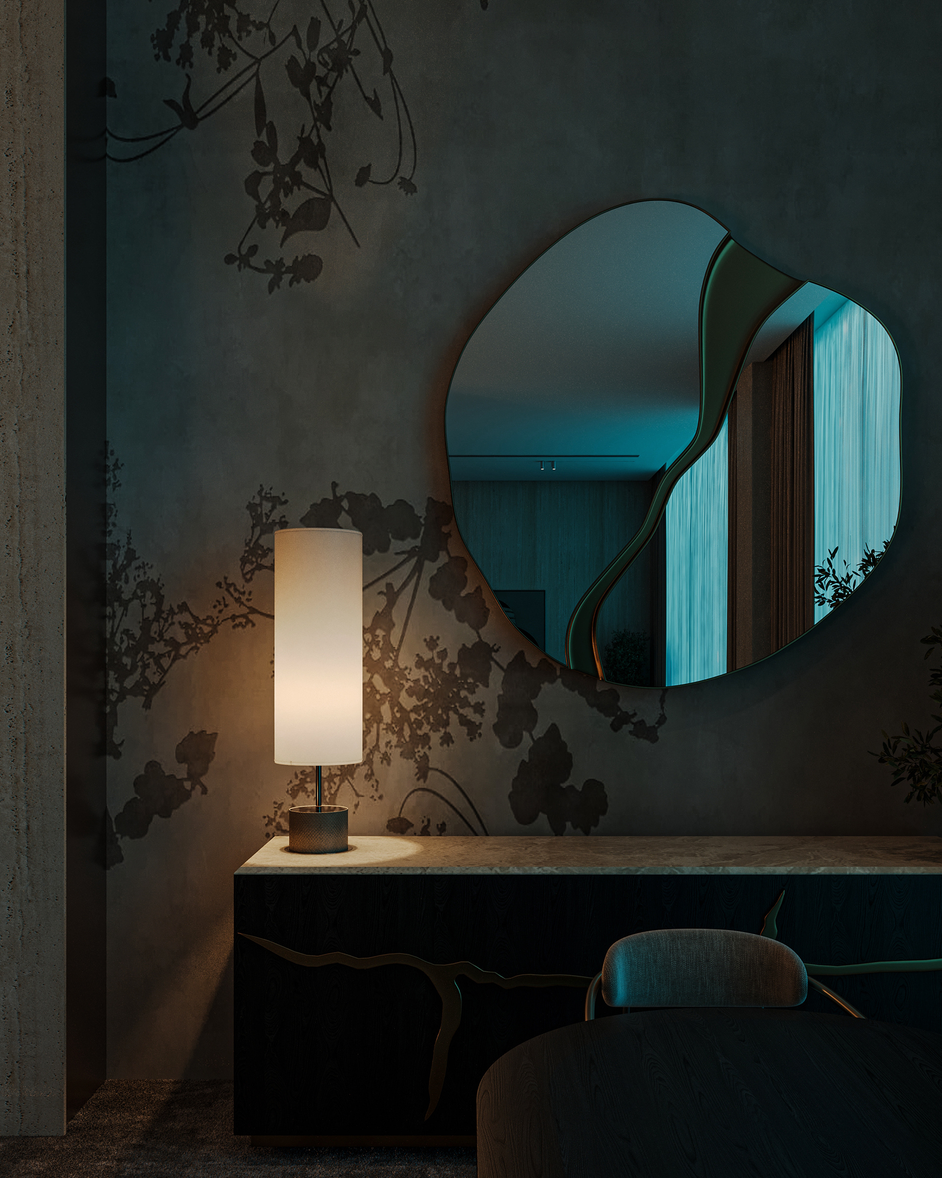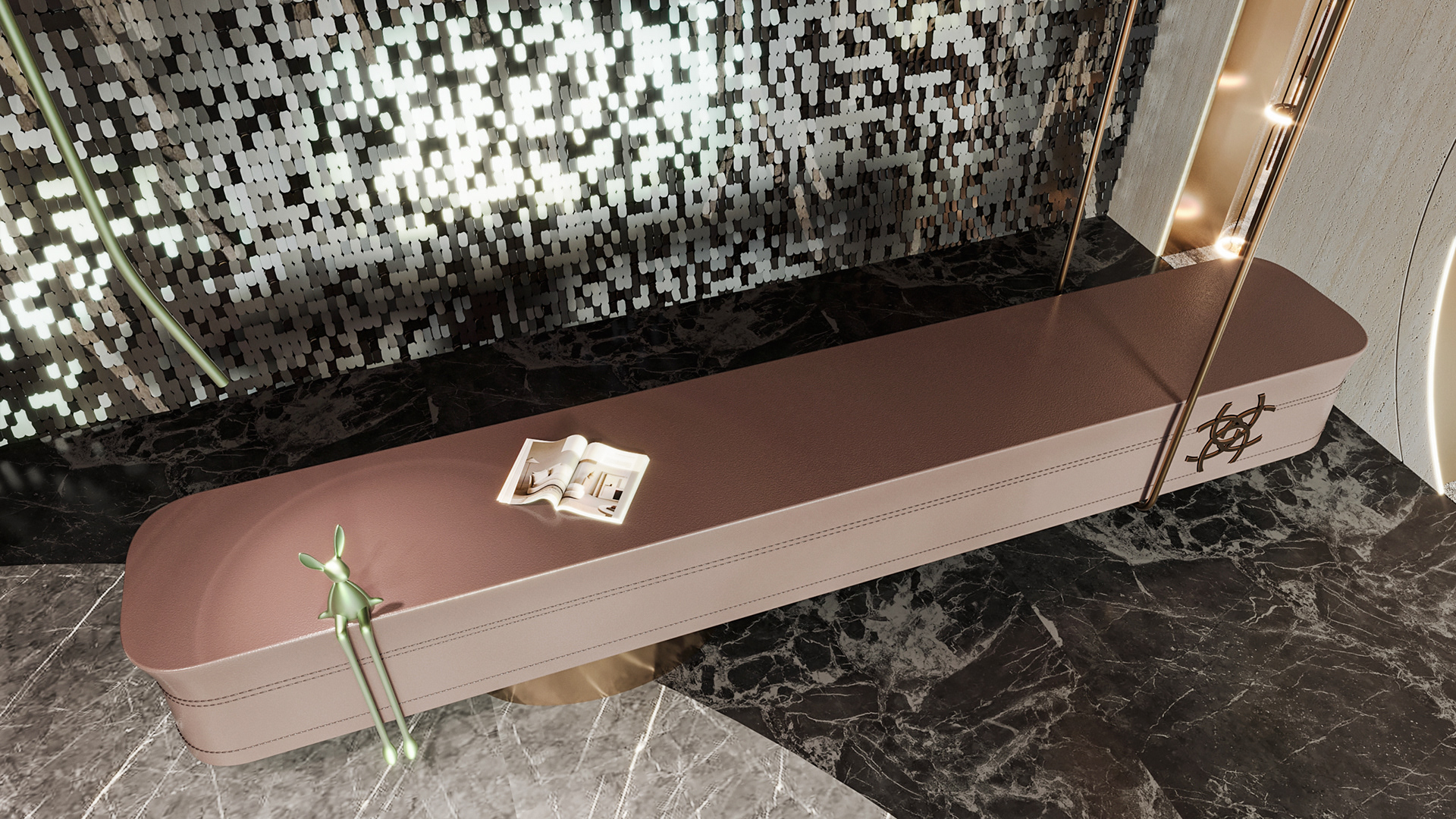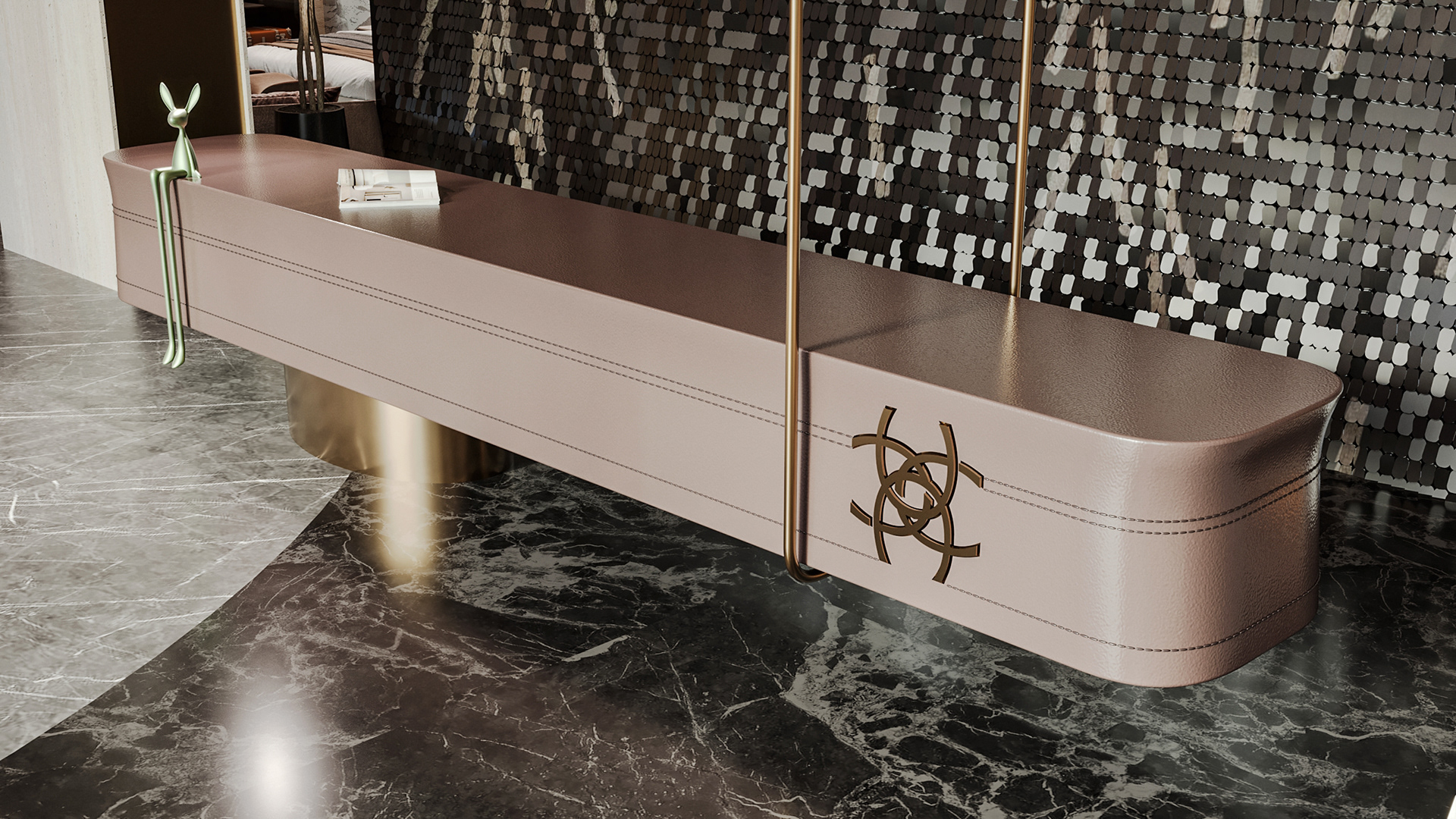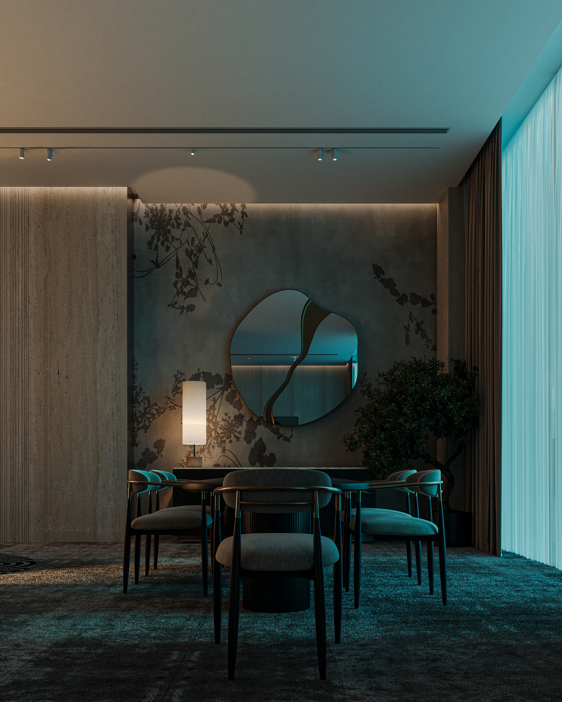 Carpiture furniture showroom (C.F.S), a furniture showroom located in Sheikh Zayed, Cairo, is designed to reflect the human journey through the universe, using the moon as its guiding concept. This theme is expressed through three key areas: the entrance, the staircase, and the chimney, each represented by a circular, moon-like form. The journey begins at the entrance, where luxurious circular columns and high-end materials create an immediate sense of elegance. As visitors move through the showroom, they ascend a striking red marble staircase, symbolizing progression and discovery. The final destination is the chimney area, where a bronze fireplace adds warmth and coziness, completing the experience. This design beautifully aligns with the brand’s vision of combining luxury with a narrative journey, making each step through the showroom a unique experience.
