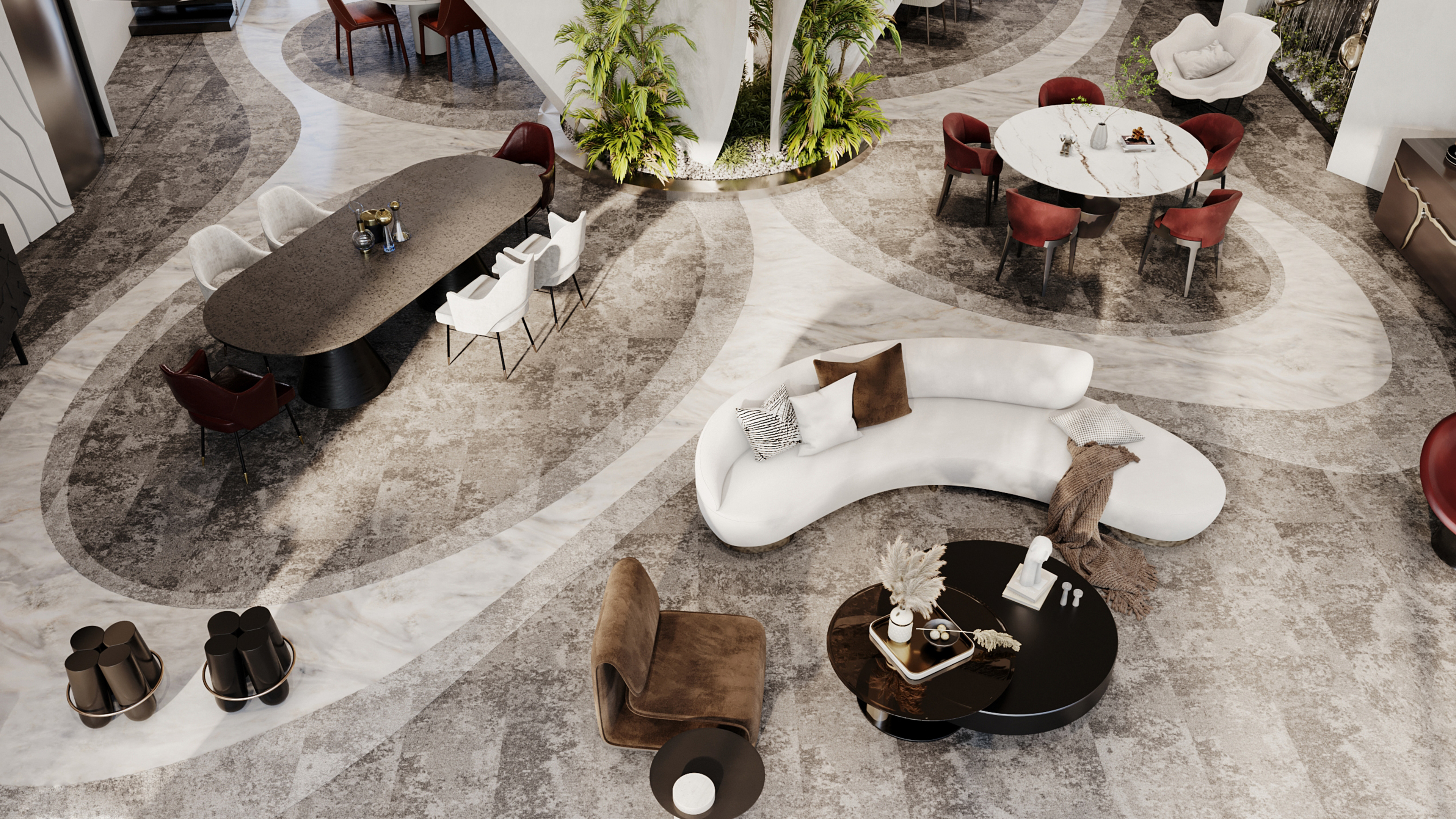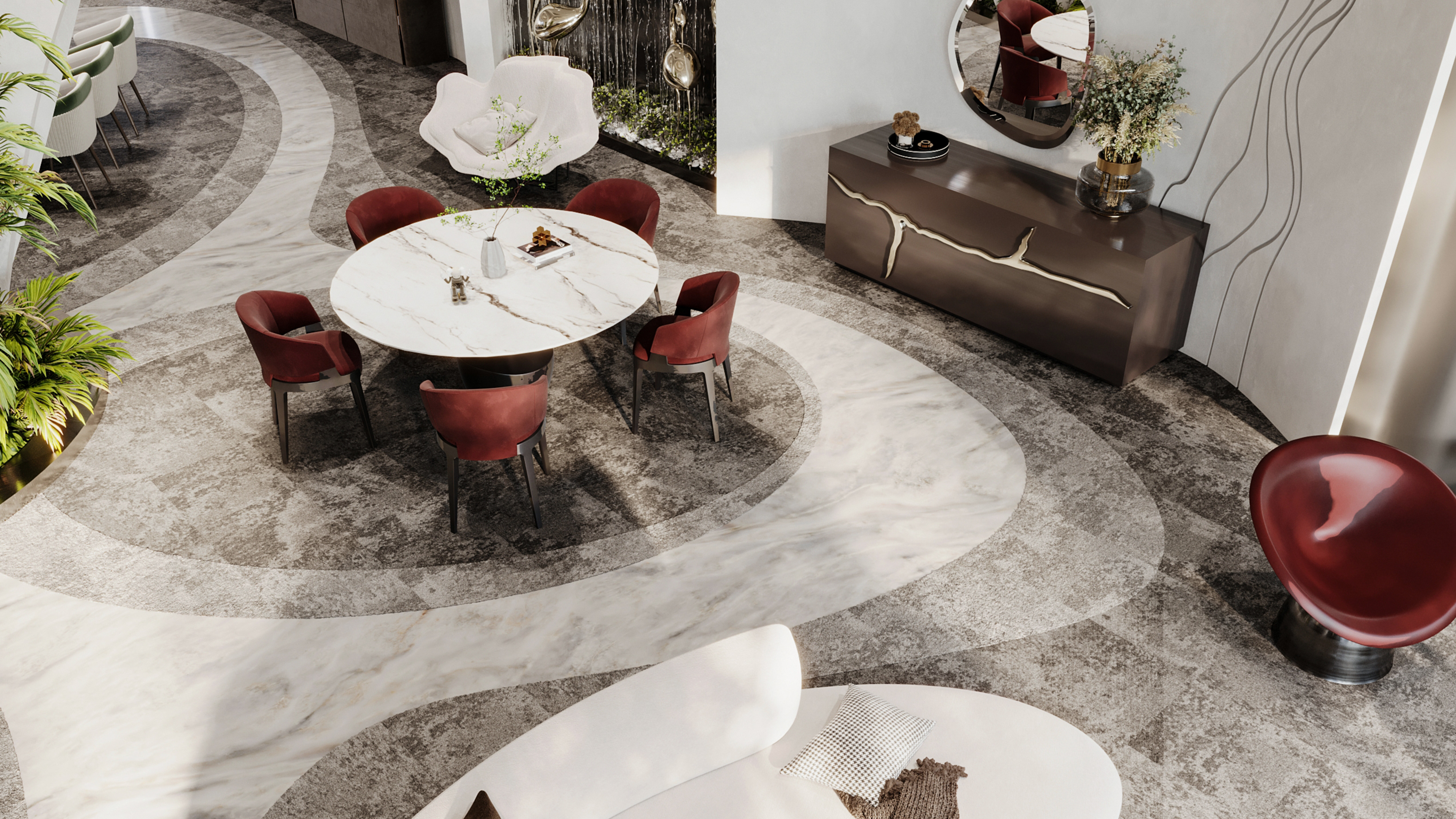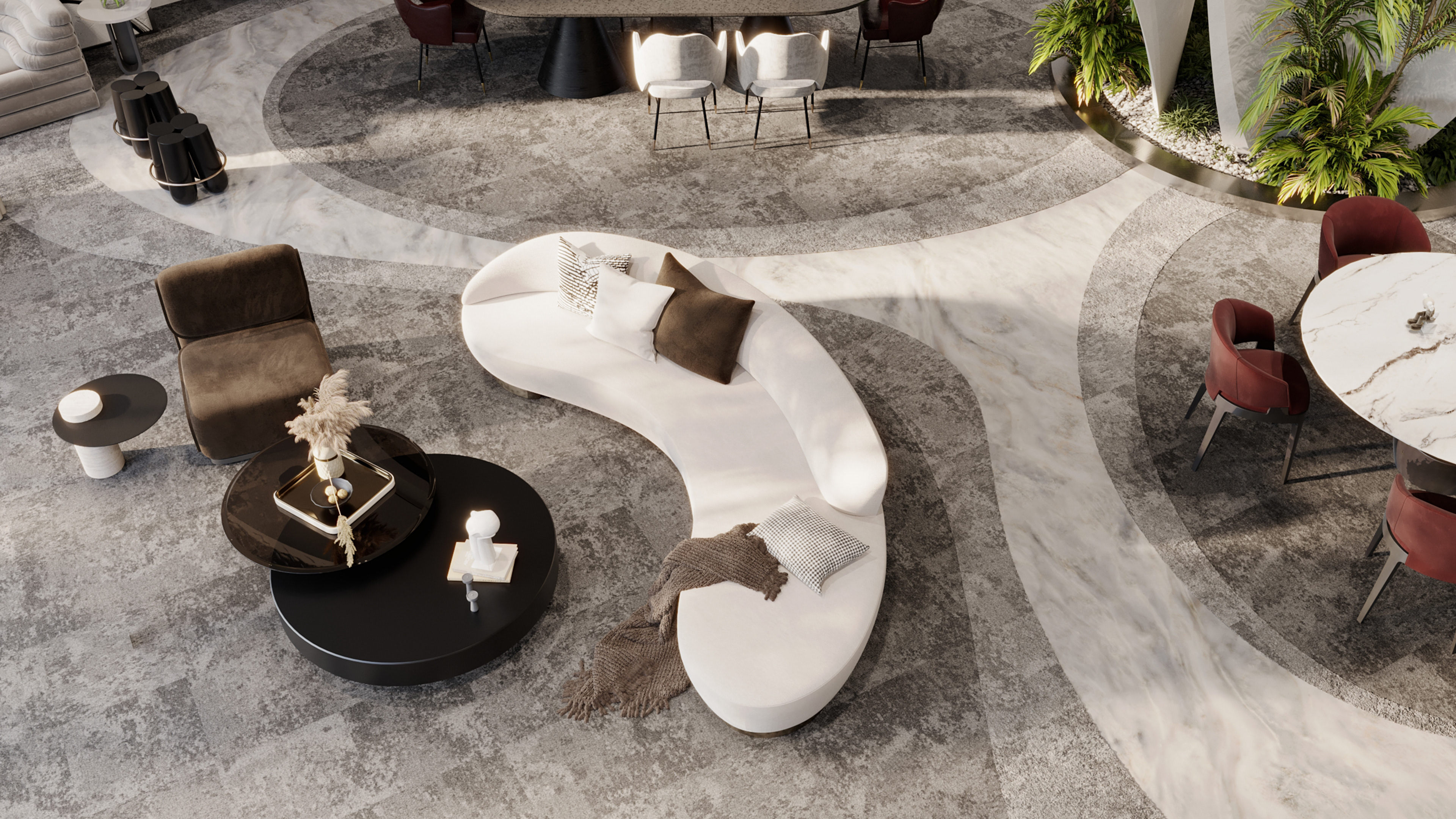 We approached the interior design with the intention to blend elements that represents the flow of water and its movement in a contemporary and elegant aesthetic to reflect the identity of Noah.