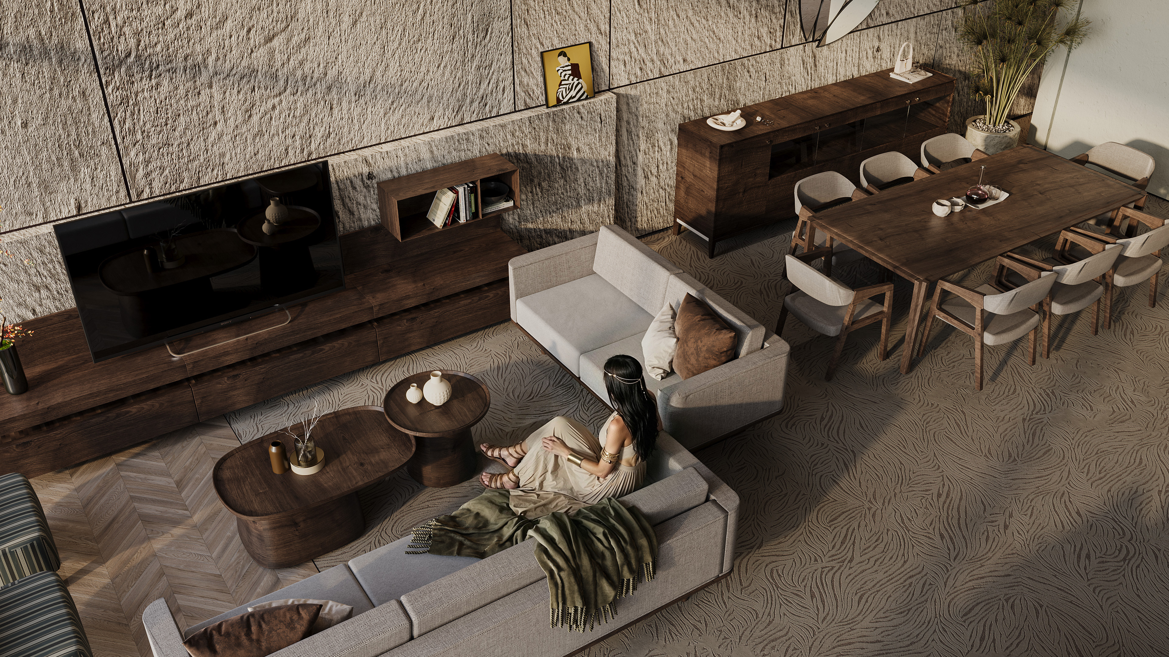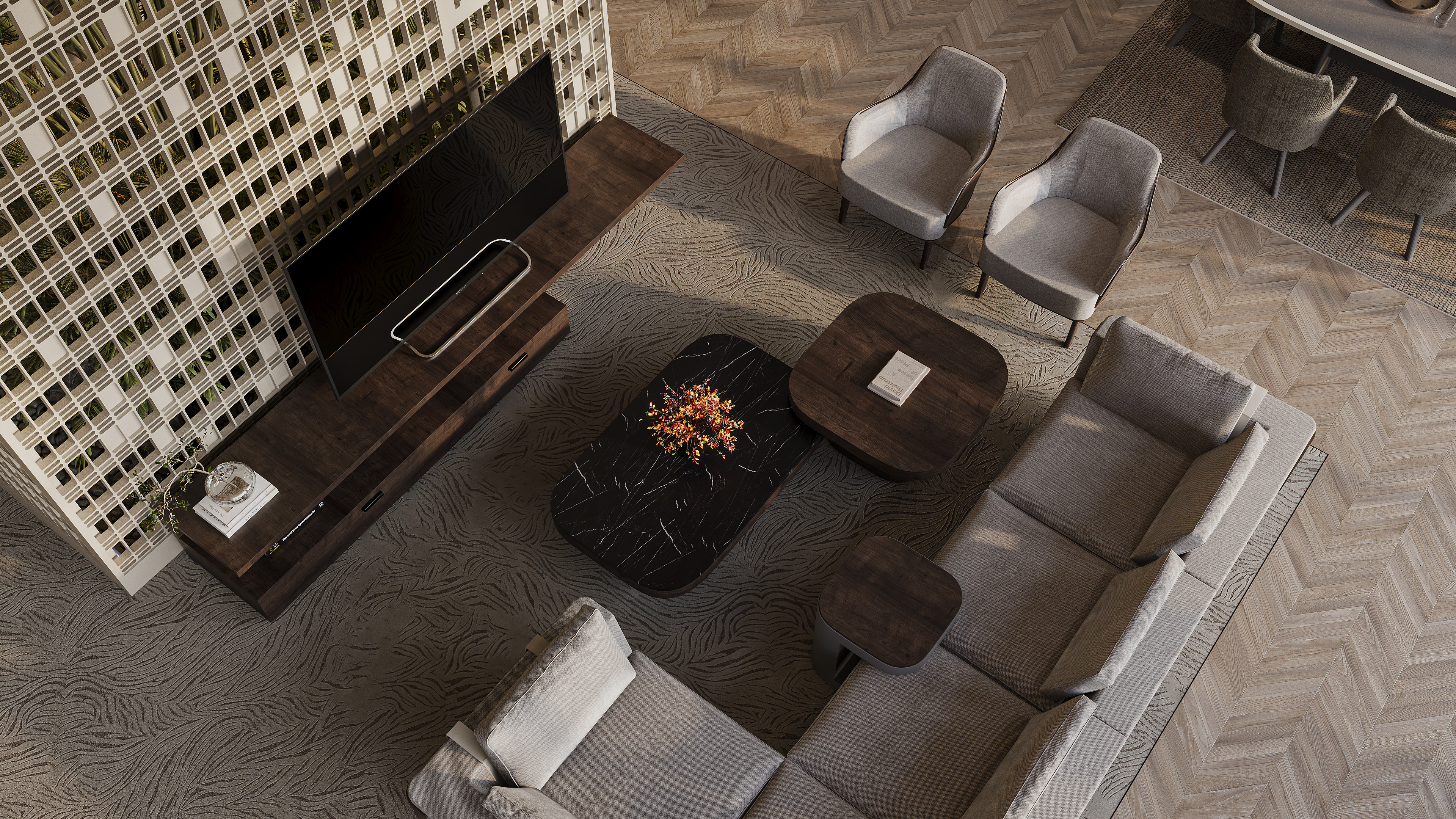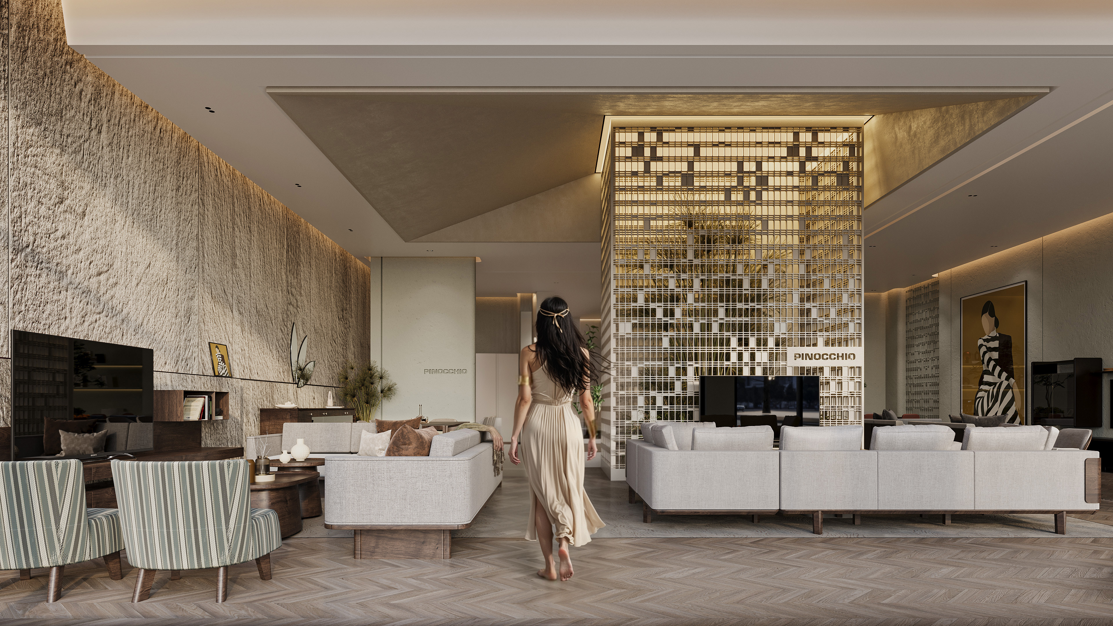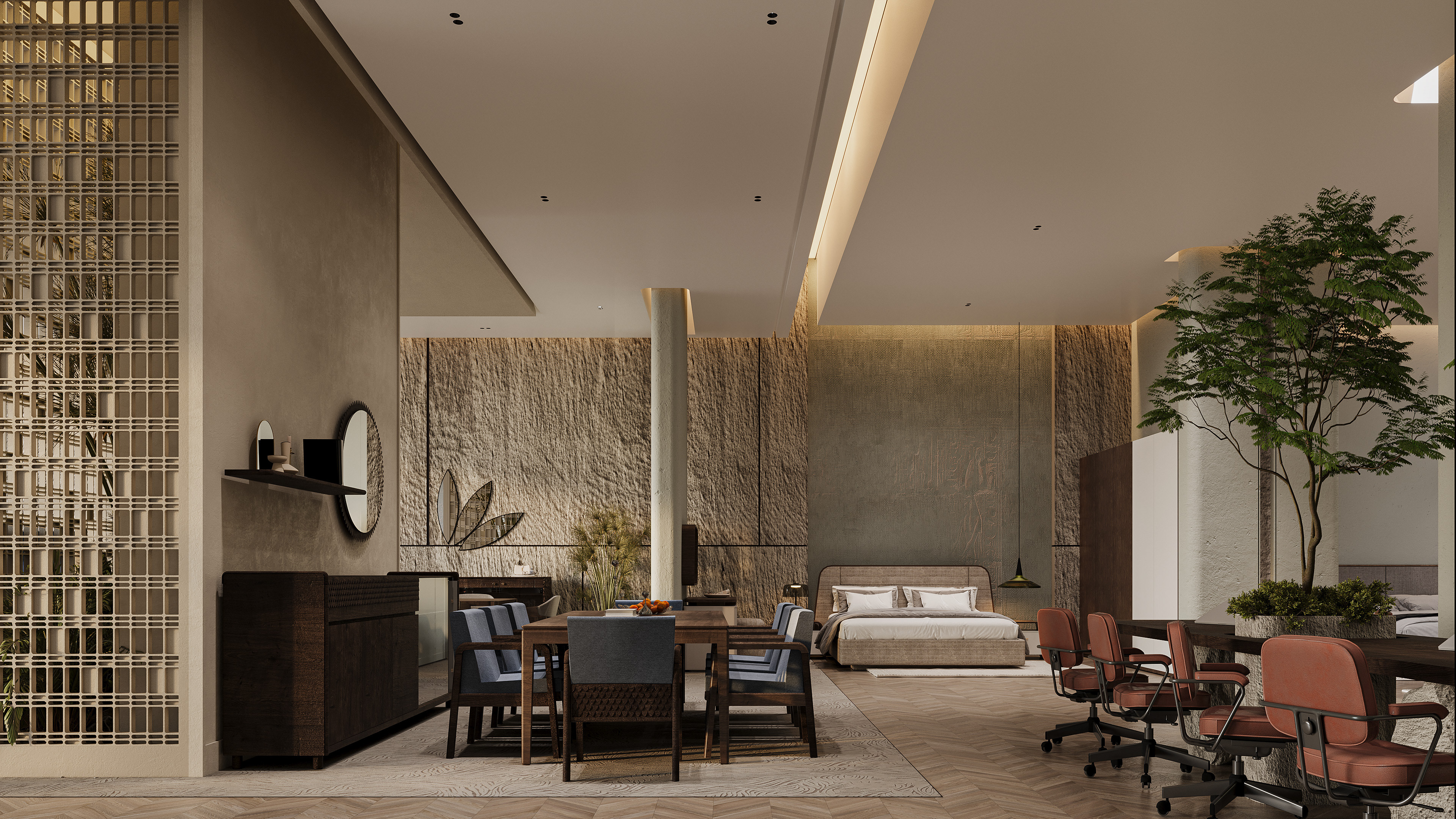 Warmth, balance, and subtle monumentality shape the overall experience.