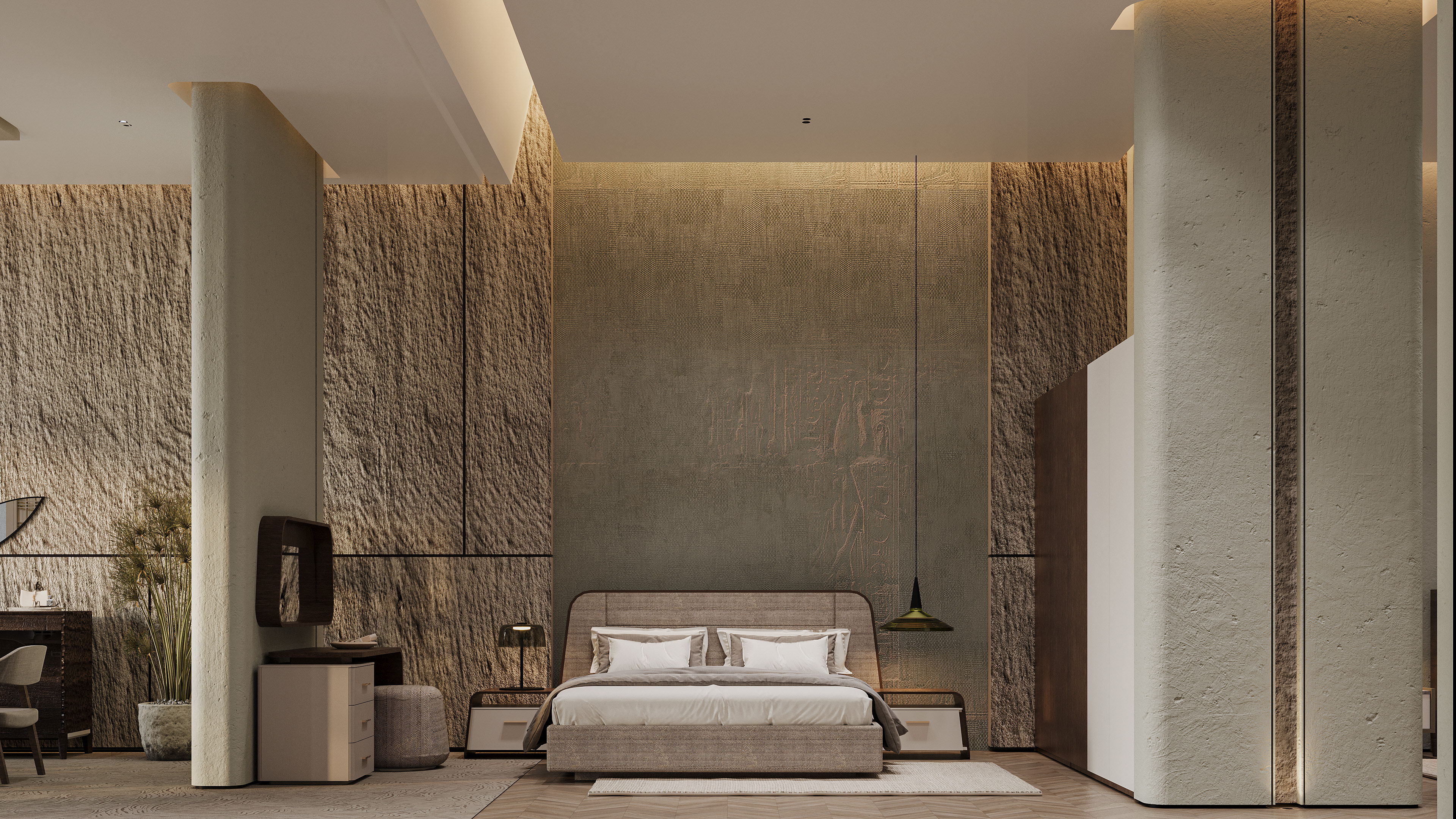 The design subtly echoes Egypt’s heritage while maintaining a sophisticated, contemporary feel.