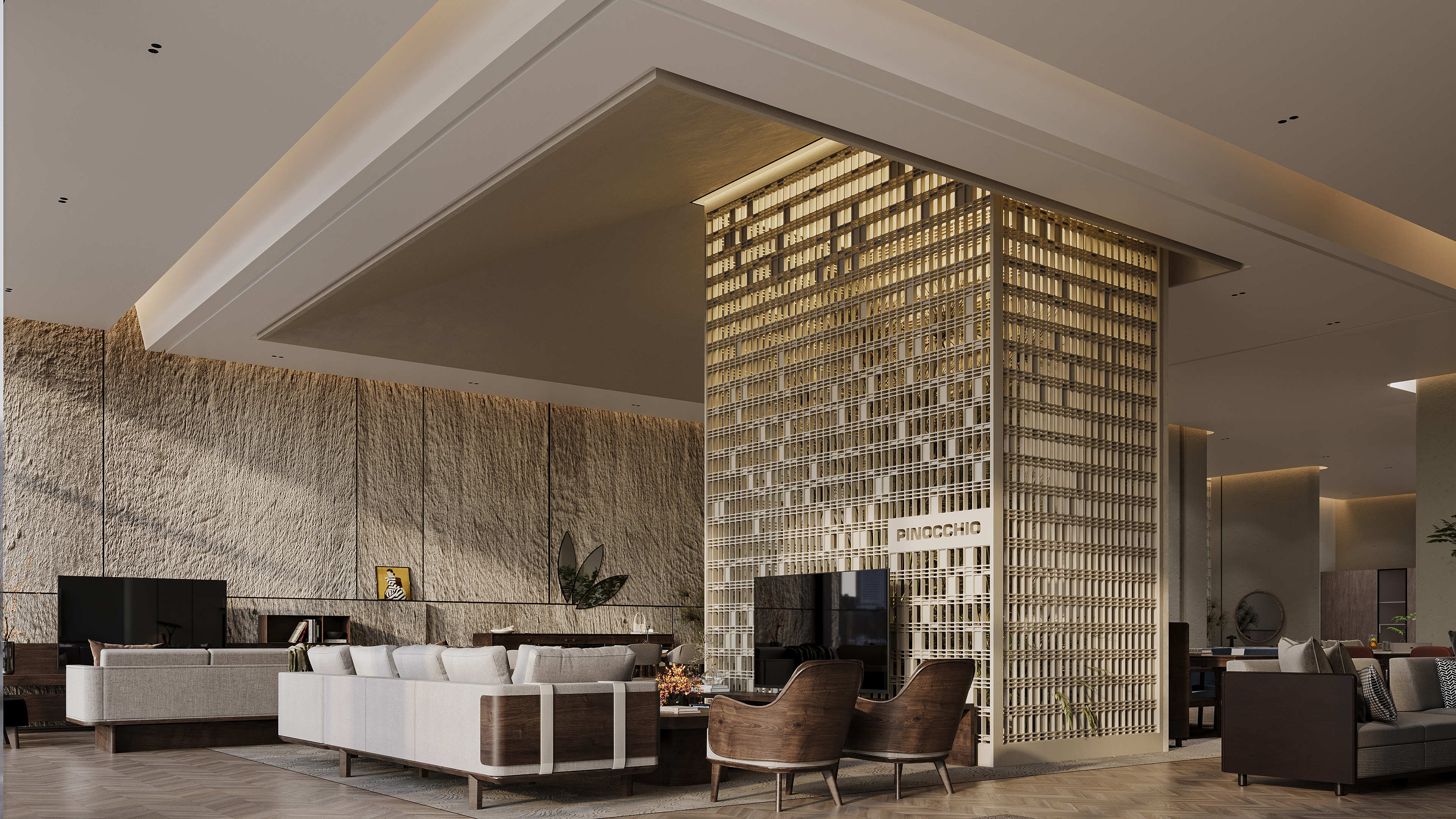 The showroom feels serene yet powerful, blending comfort with a sense of heritage.