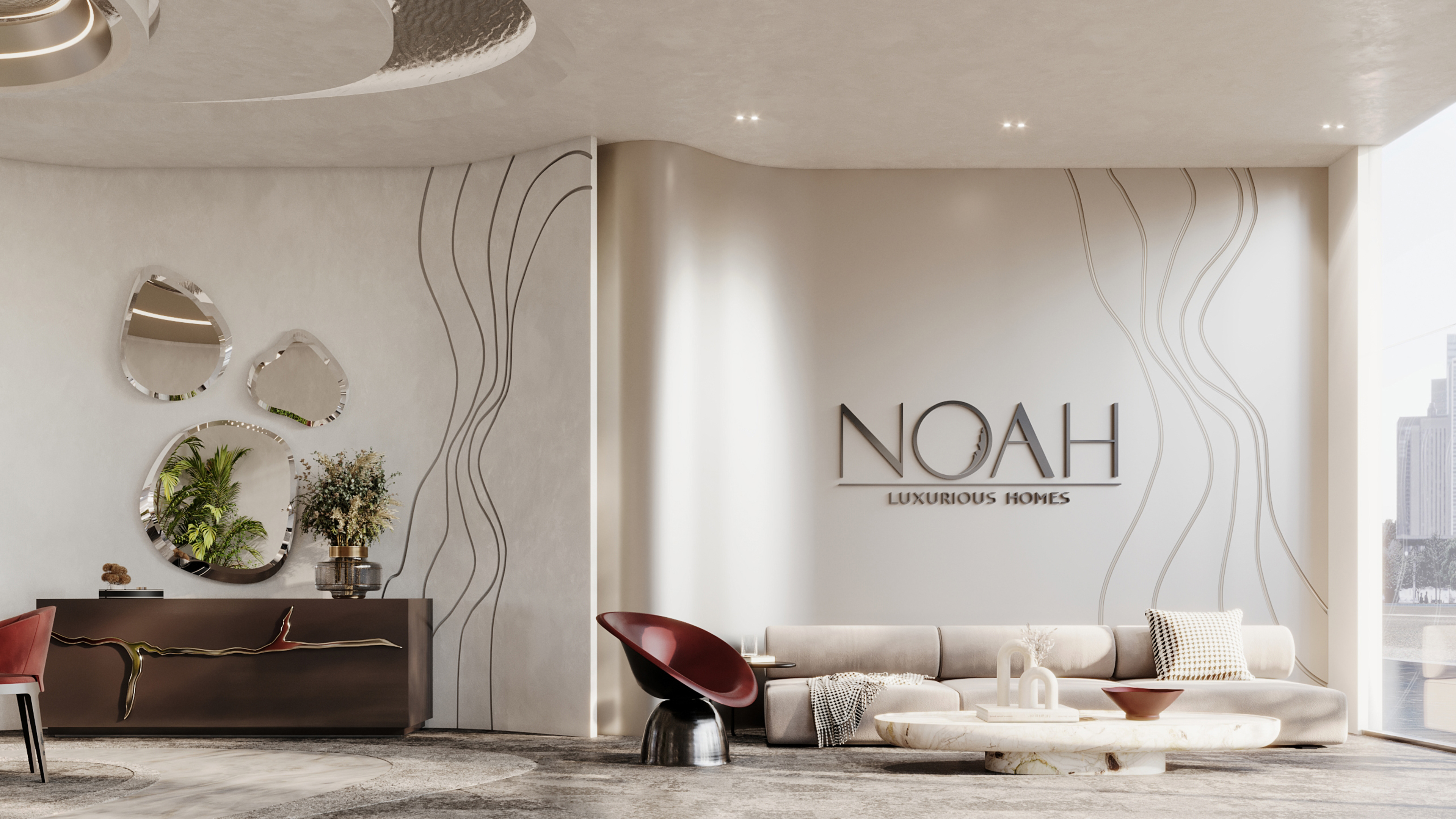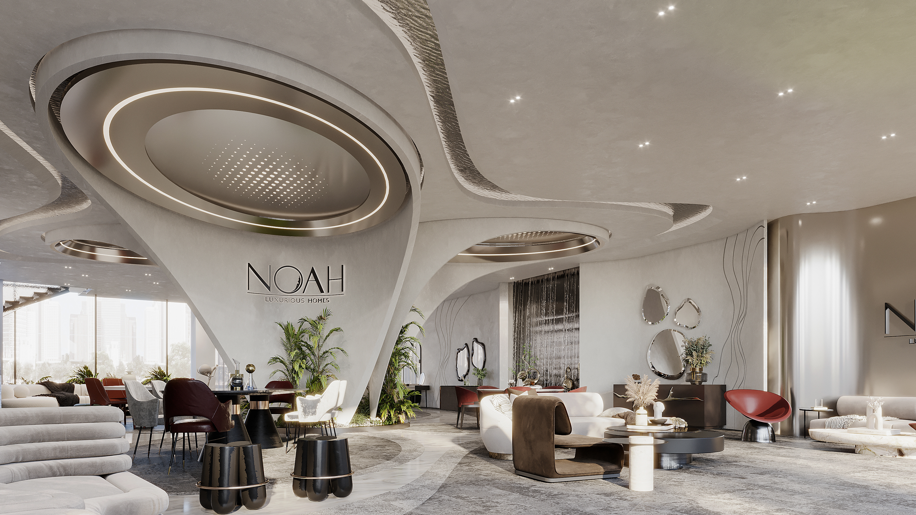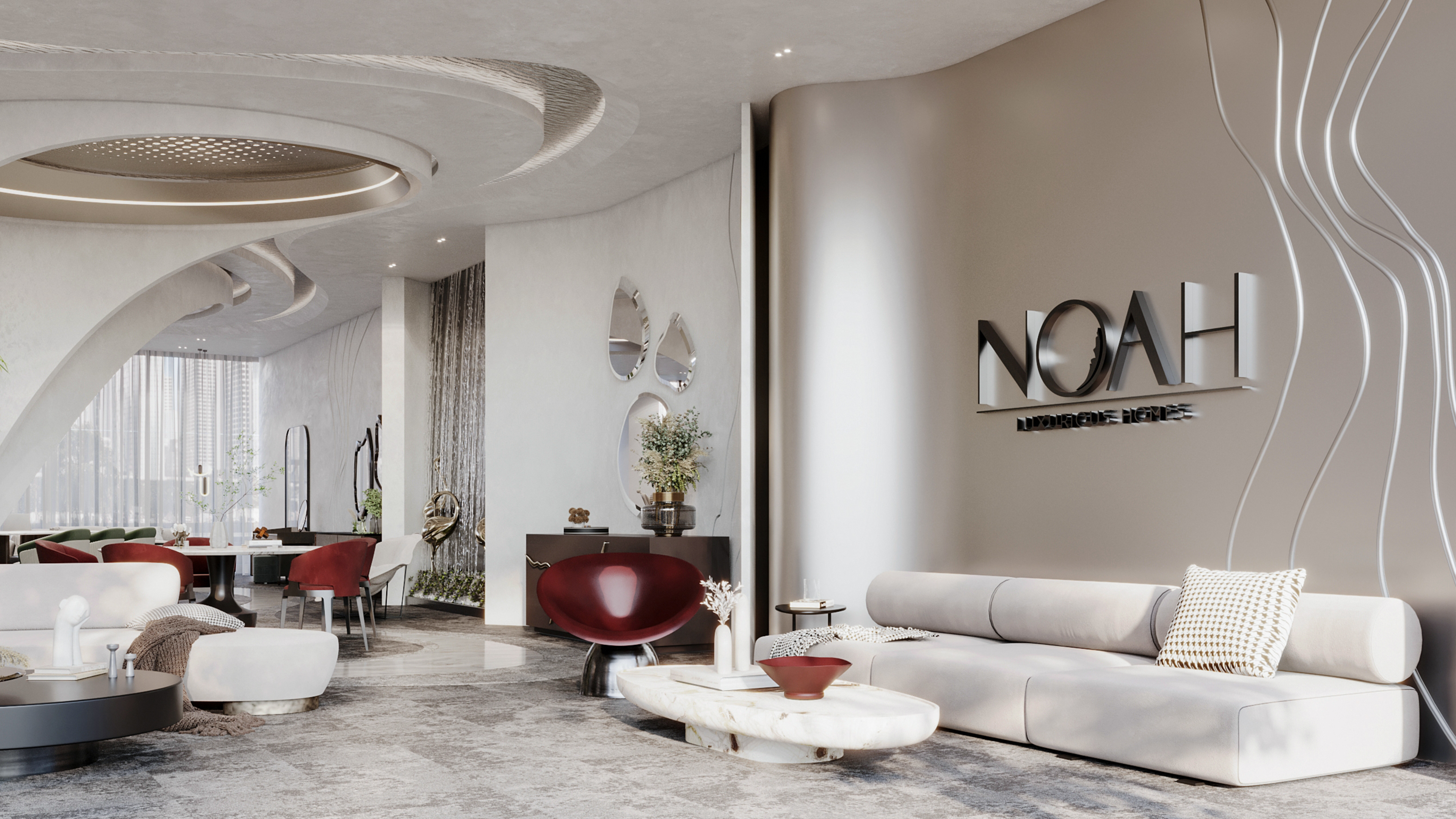 We approached the interior design with the intention to blend elements that represents the flow of water and its movement in a contemporary and elegant aesthetic to reflect the identity of Noah.