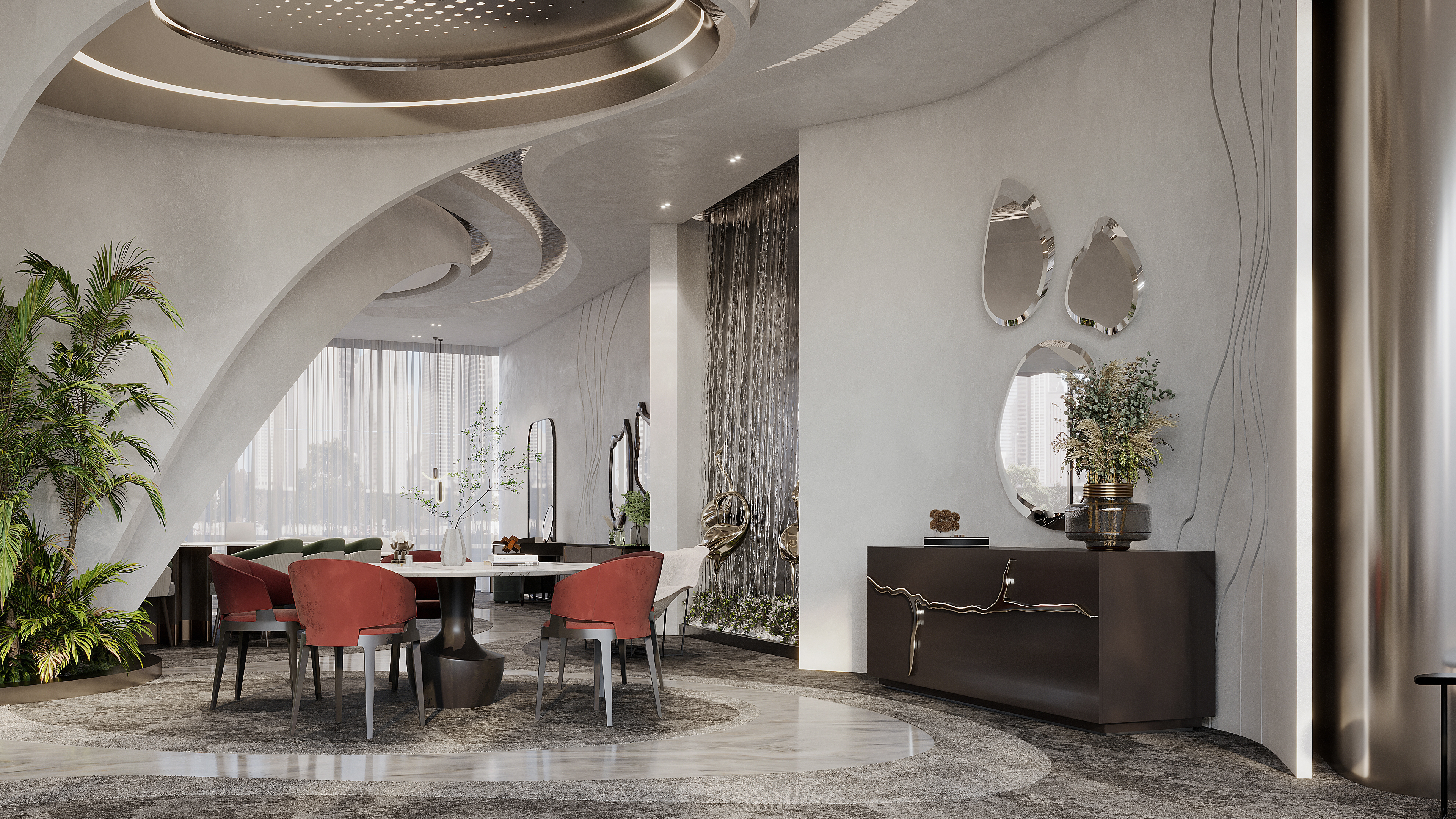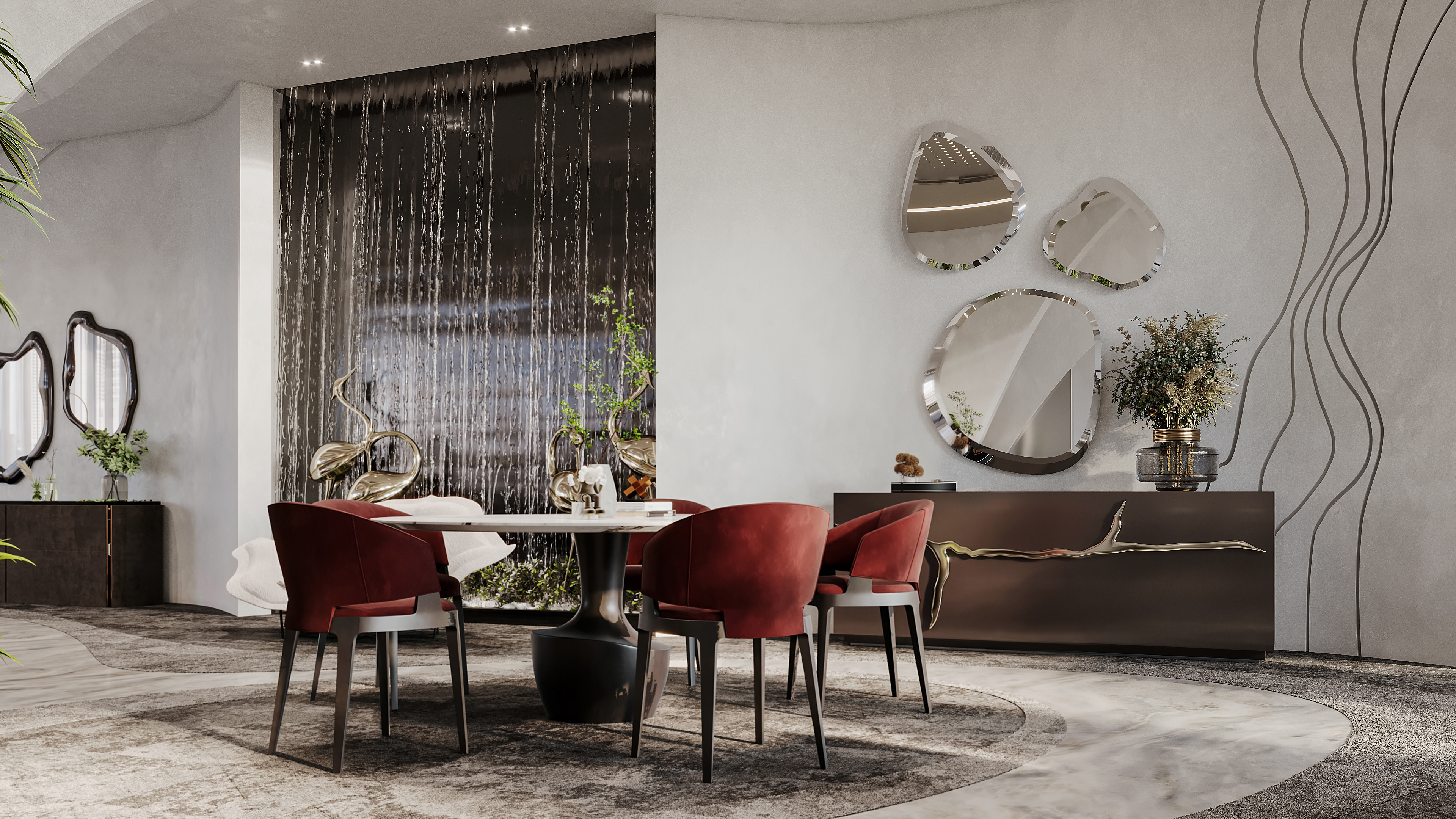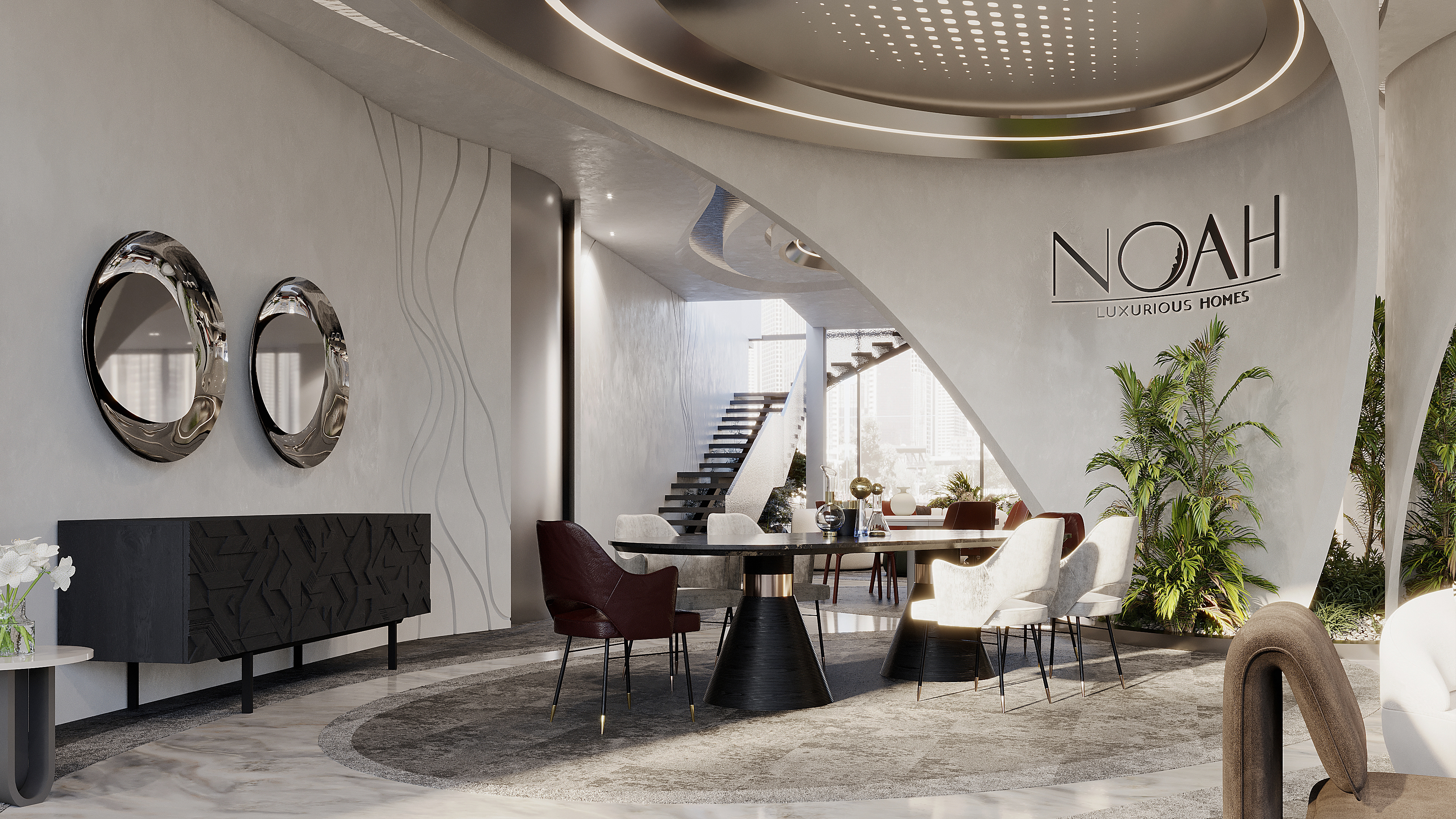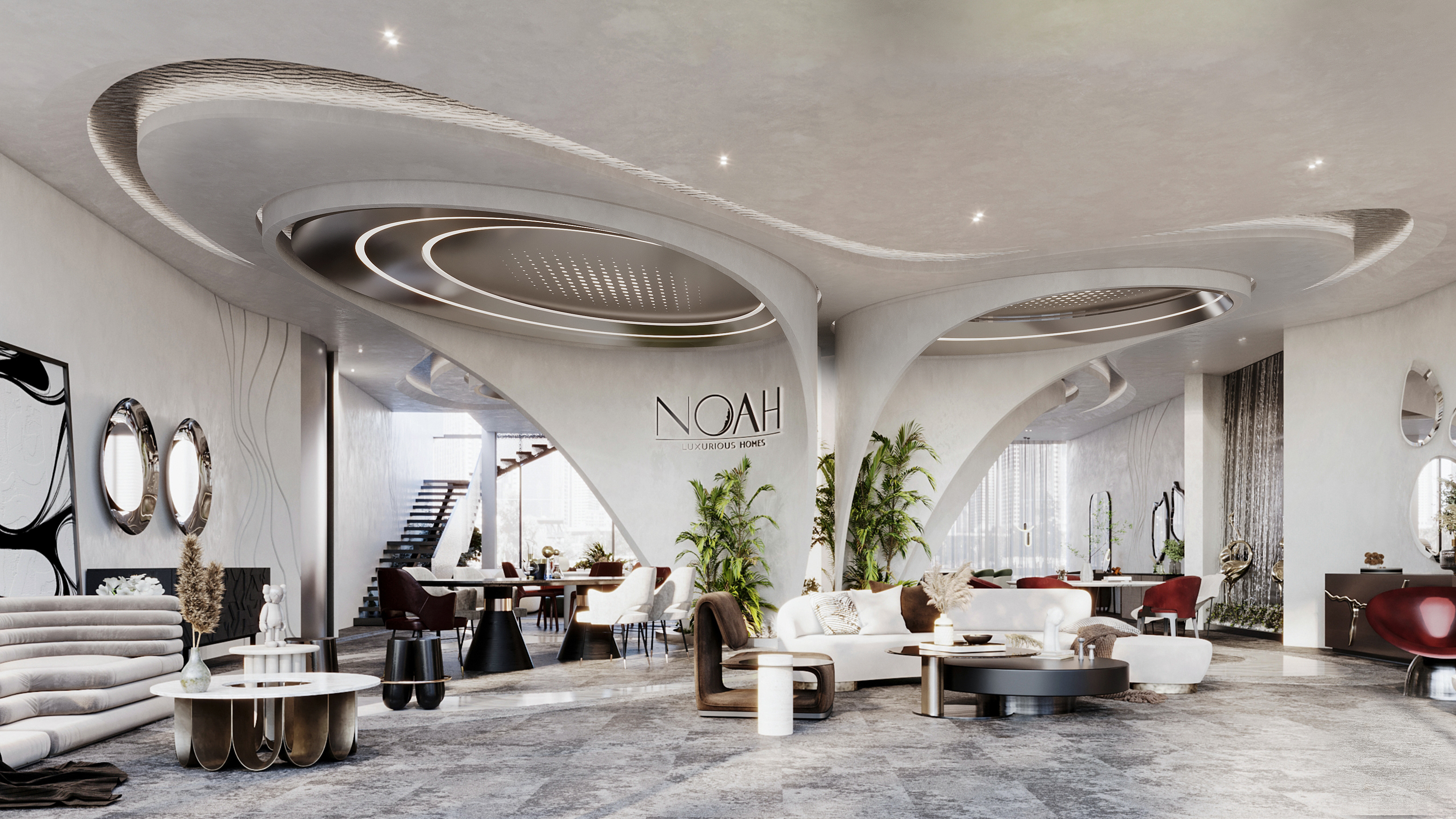 We approached the interior design with the intention to blend elements that represents the flow of water and its movement in a contemporary and elegant aesthetic to reflect the identity of Noah.
