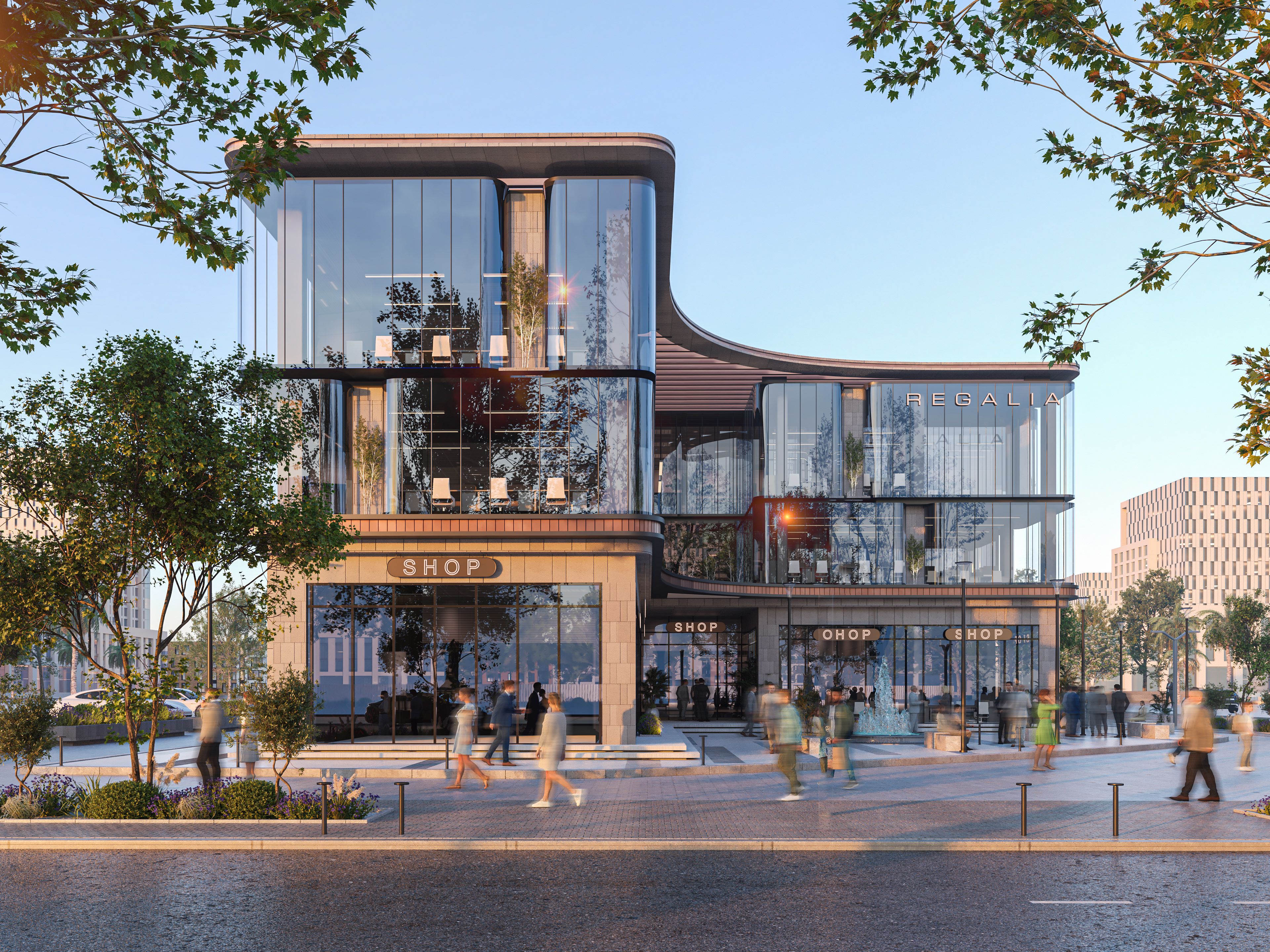 REGALIA represents a contemporary commercial mall designed to serve as a vibrant urban hub. It combines retail, leisure, and social interaction in a visually striking architectural form. The mall’s design emphasizes openness, transparency, and fluidity, making it a landmark destination in its urban context.