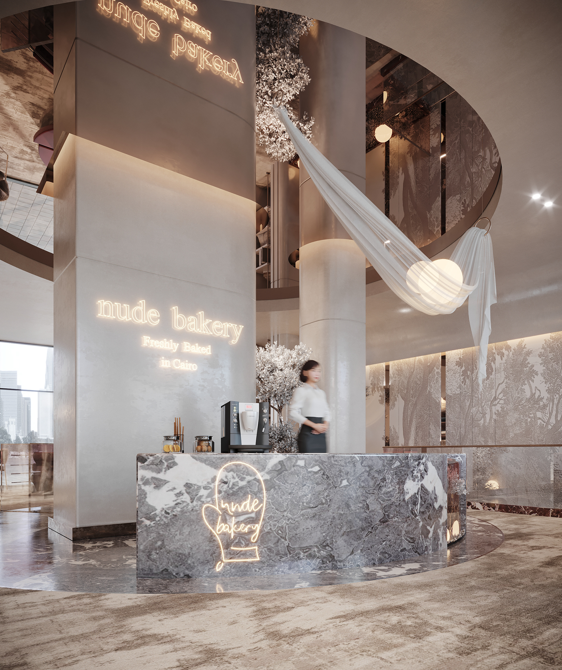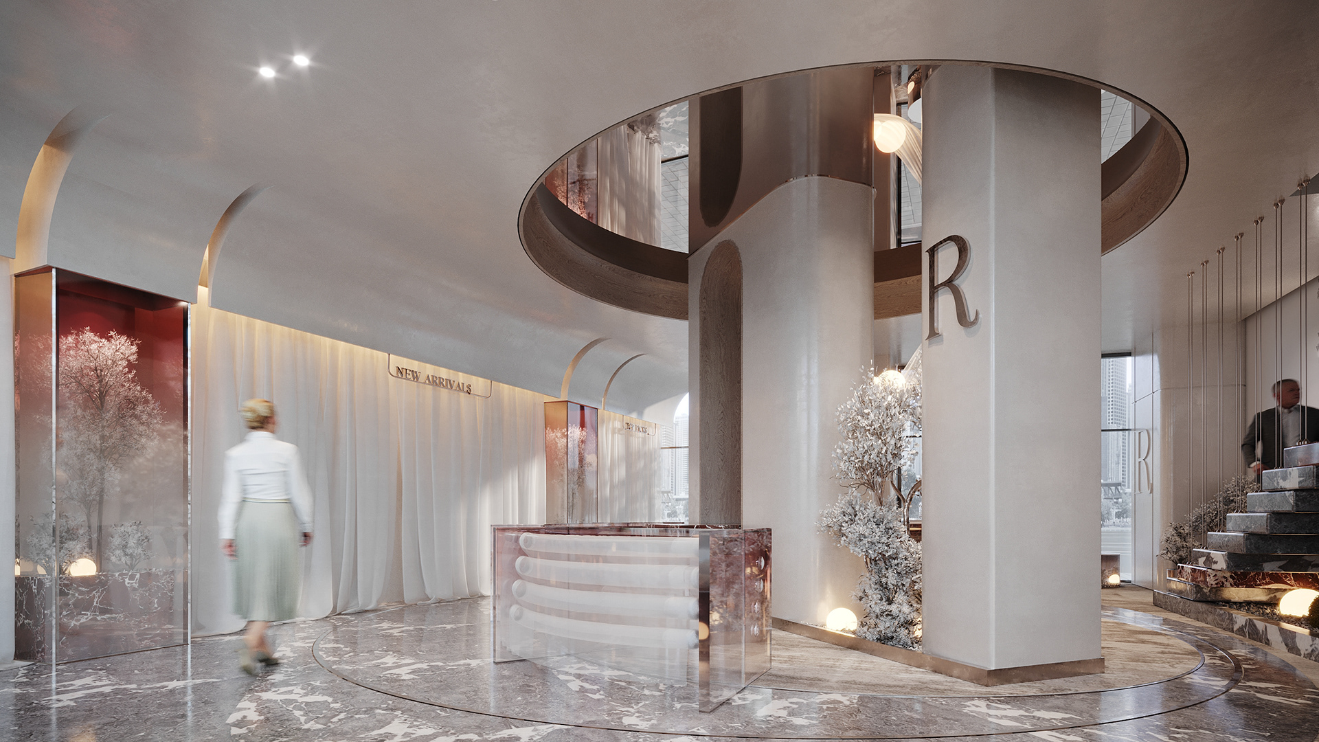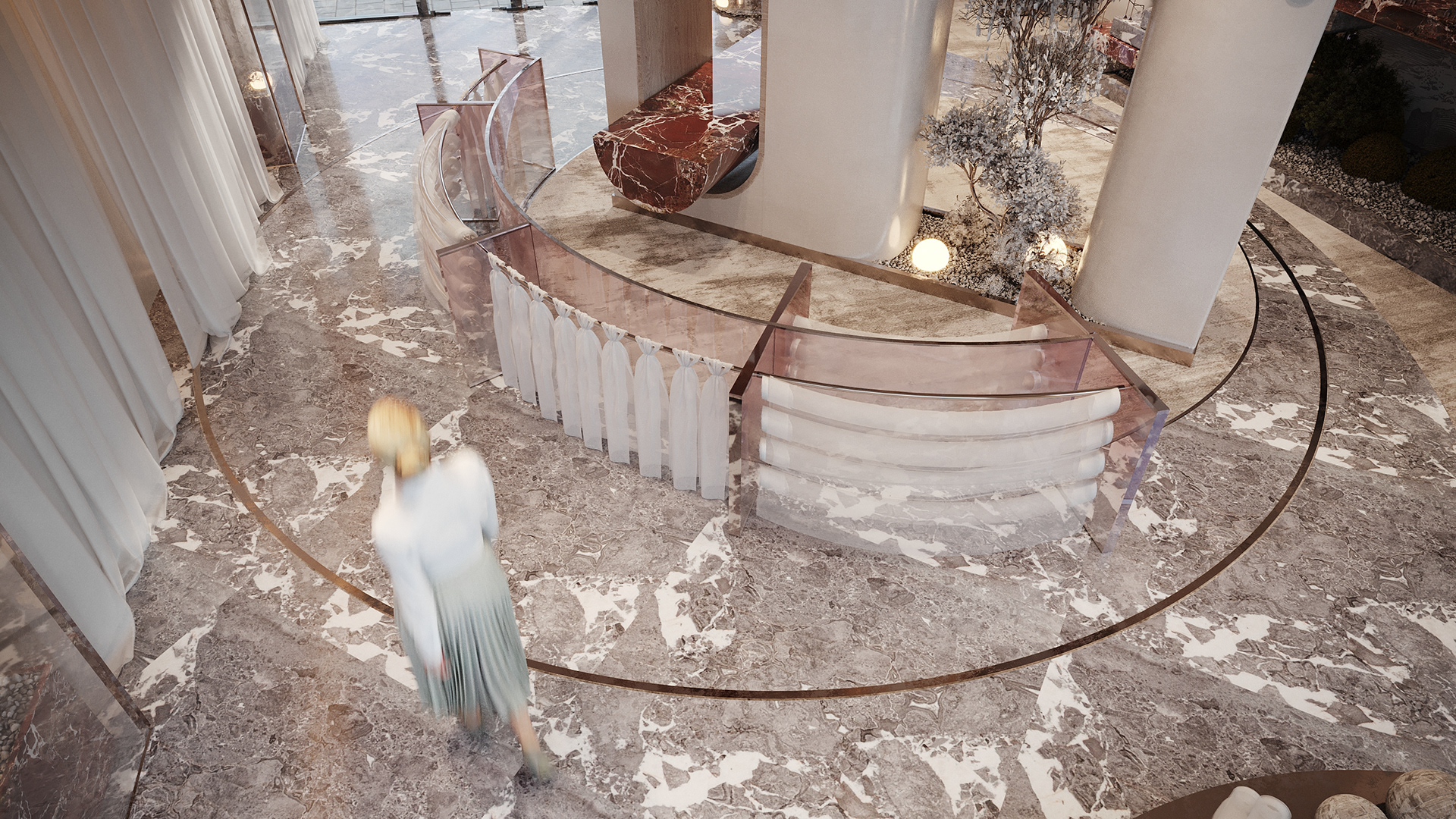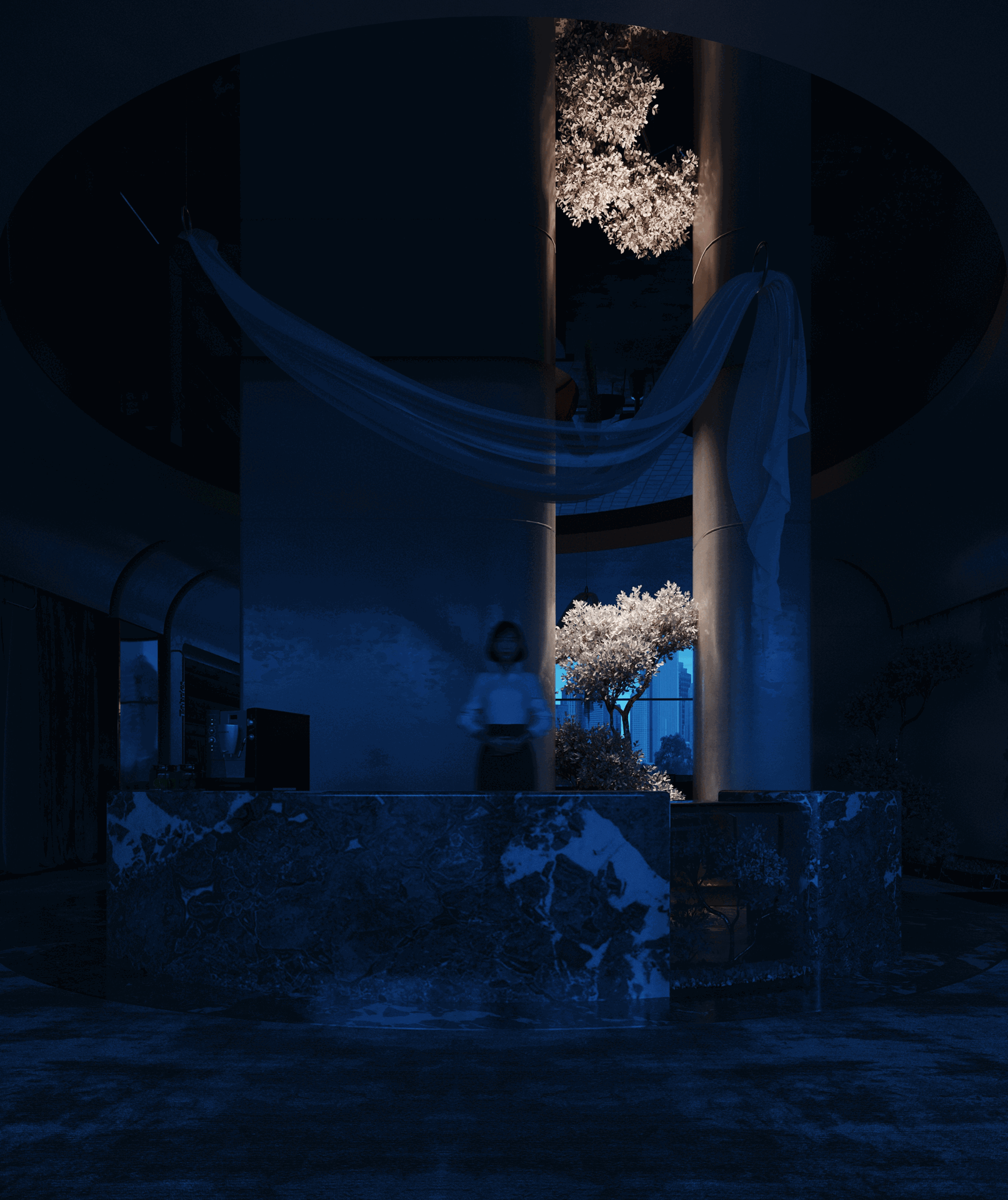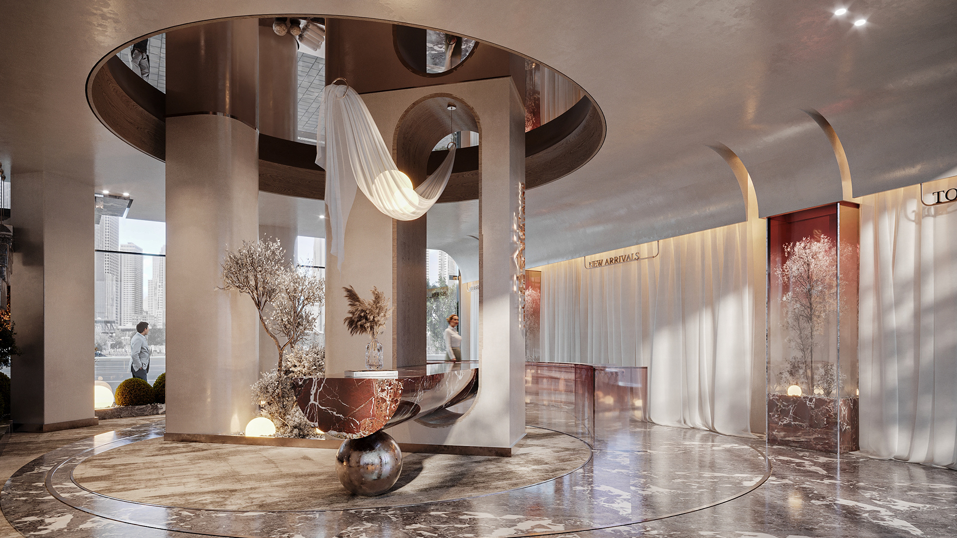 This design concept aims to elevate the display of fabrics and curtains while providing a flexible, visually appealing environment for customers to explore and imagine possibilities for their own spaces.
