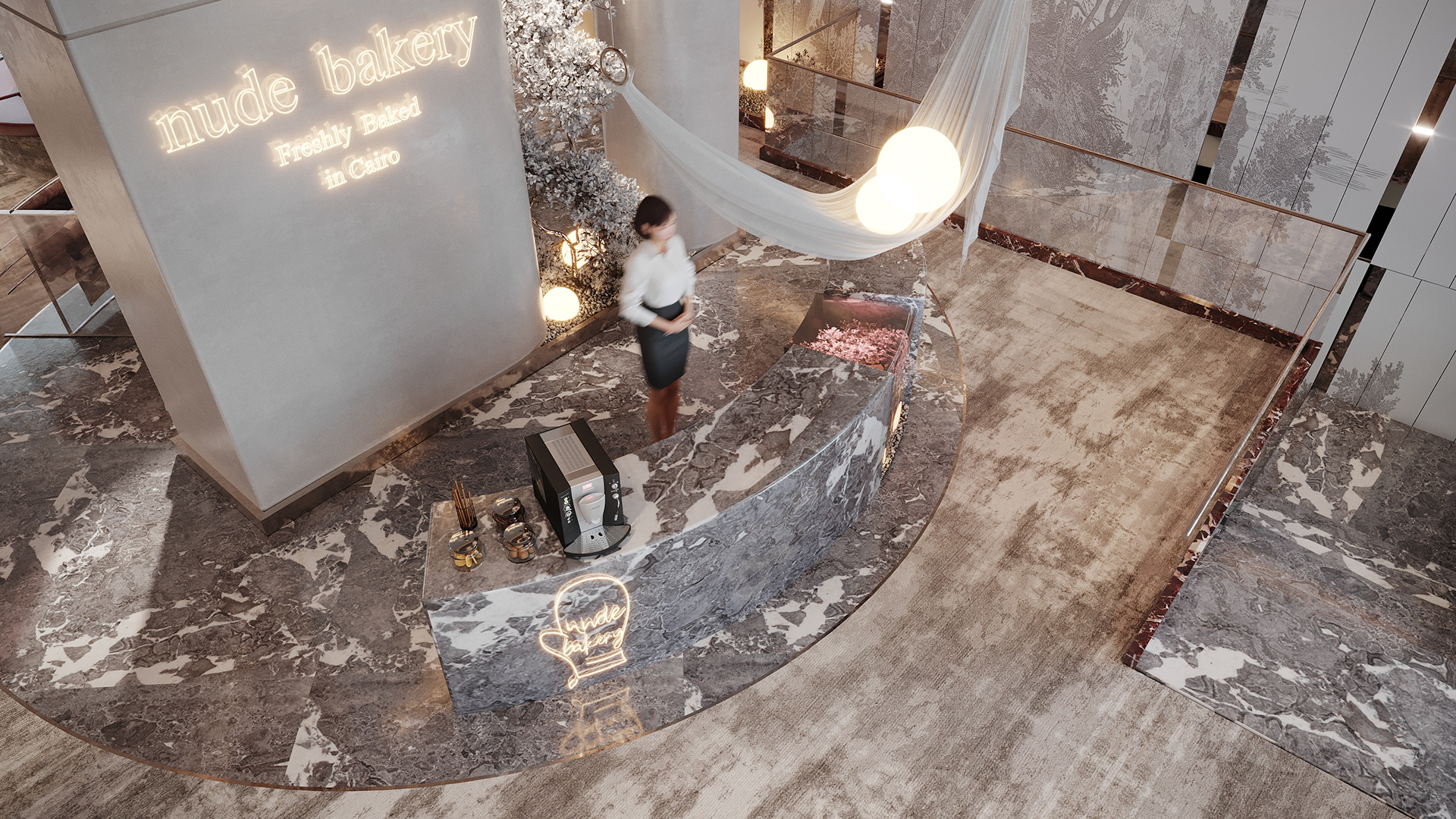 Our fabric showroom integrates a coffee corner, blending sensory experiences.it creates a cohesive space where customers explore textiles while enjoying coffee, enhancing engagement and showcasing lifestyle integration.