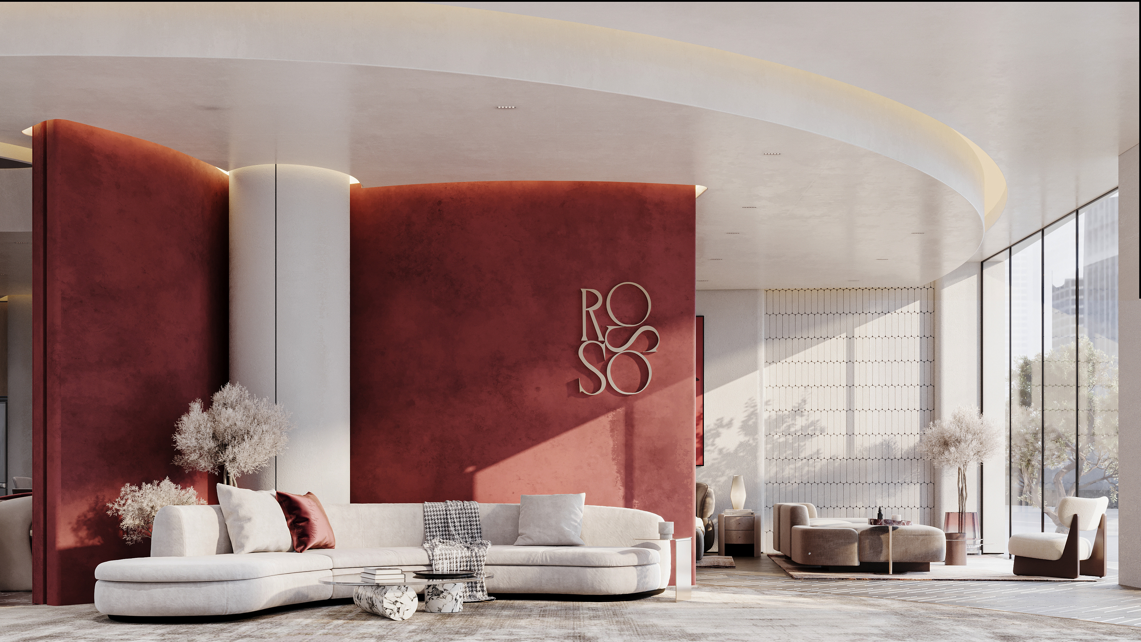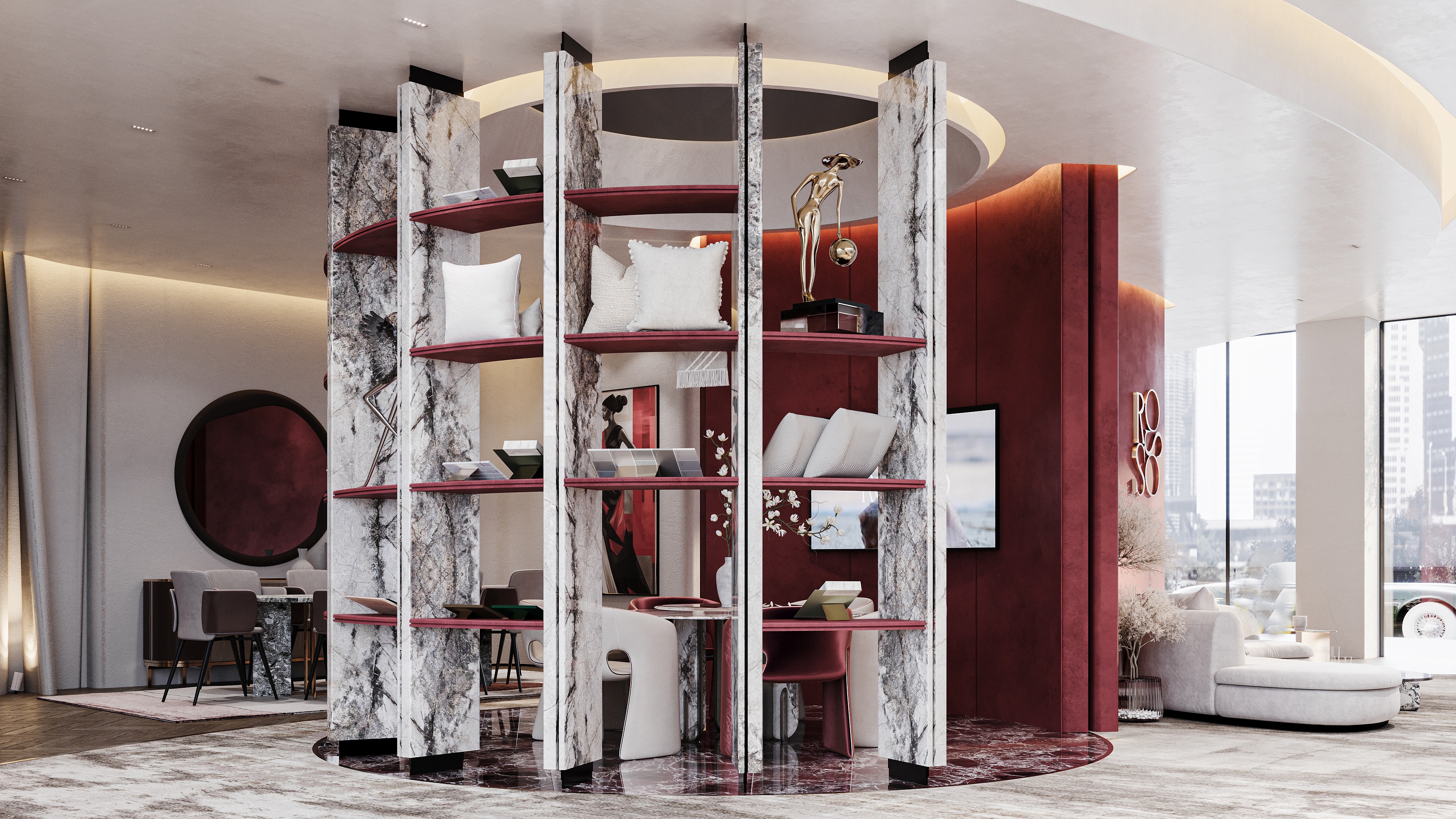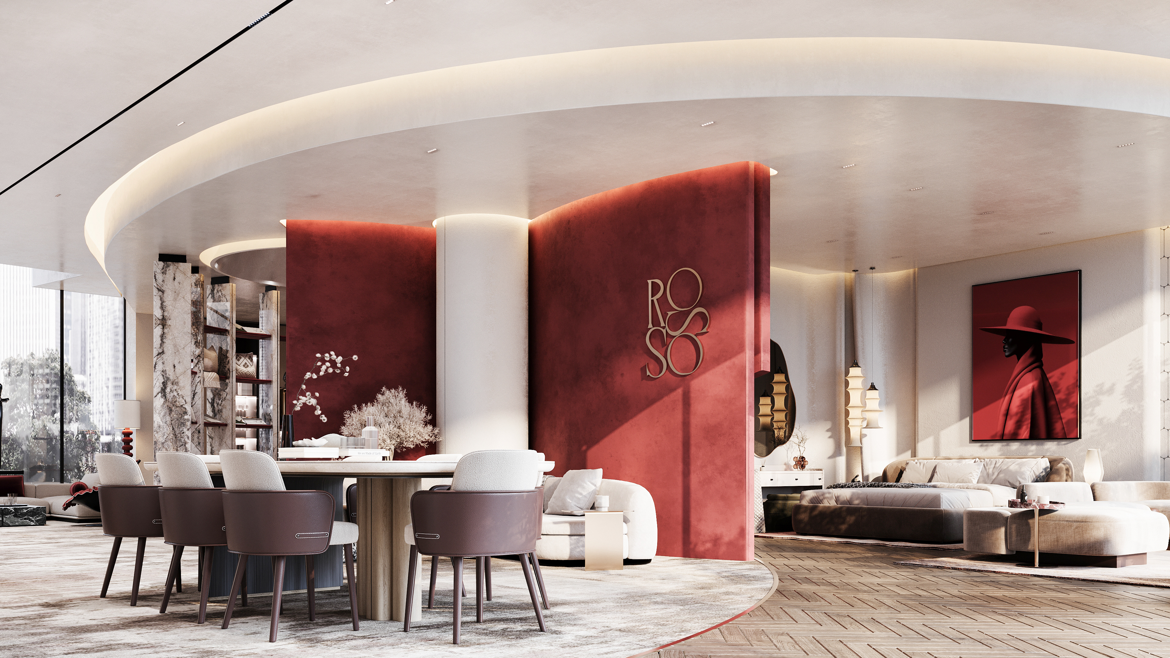 "Designing Rosso was like dressing a woman in a red gown — bold, elegant, and unforgettable. Every curve, texture, and accent in the showroom mirrors the confidence and effect of red: a color that speaks without words. The space flows with the grace of high fashion, where luxury isn't just an aesthetic, but a feeling that lingers."