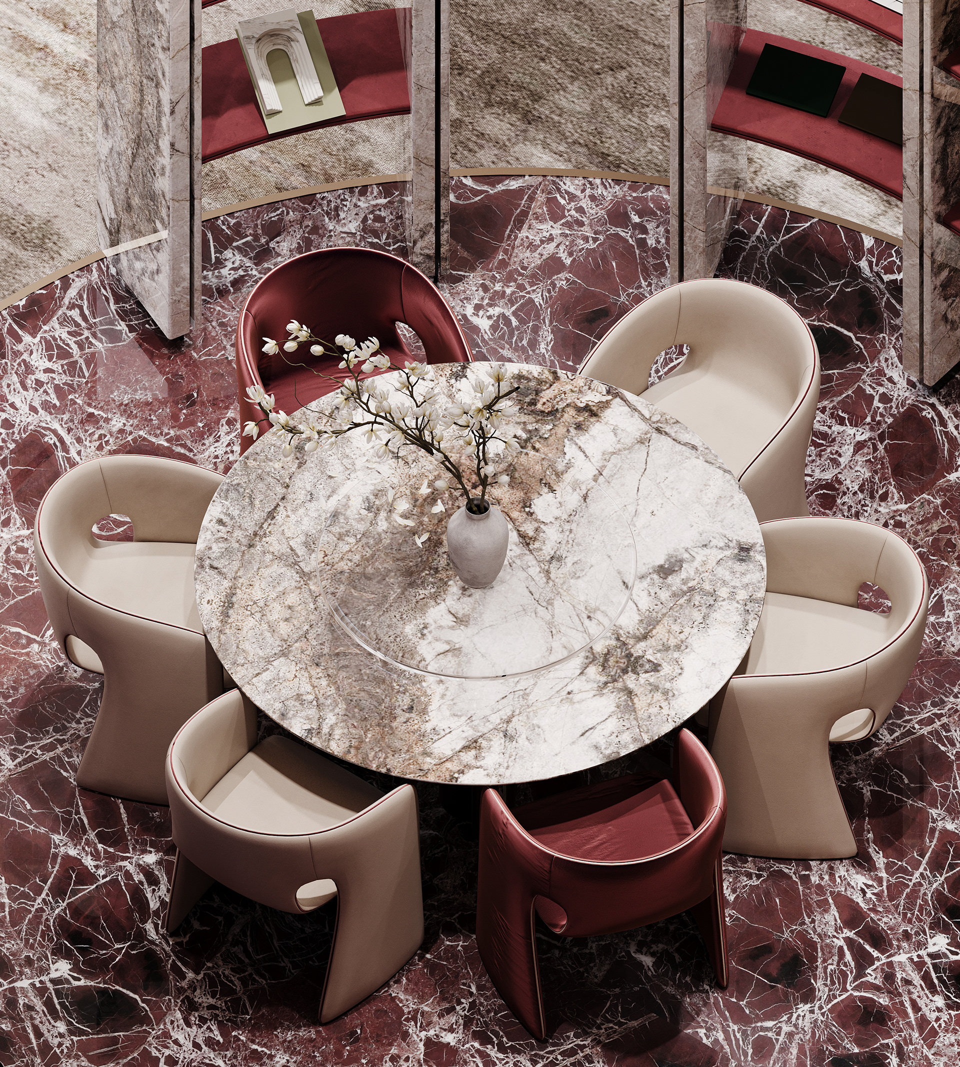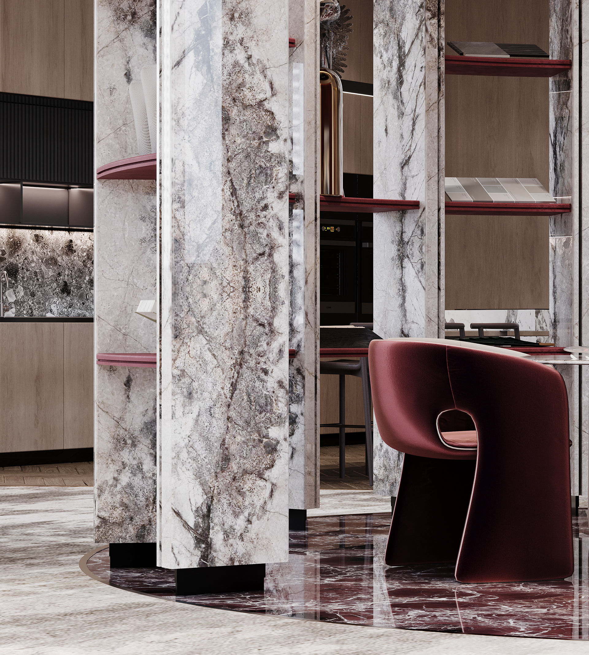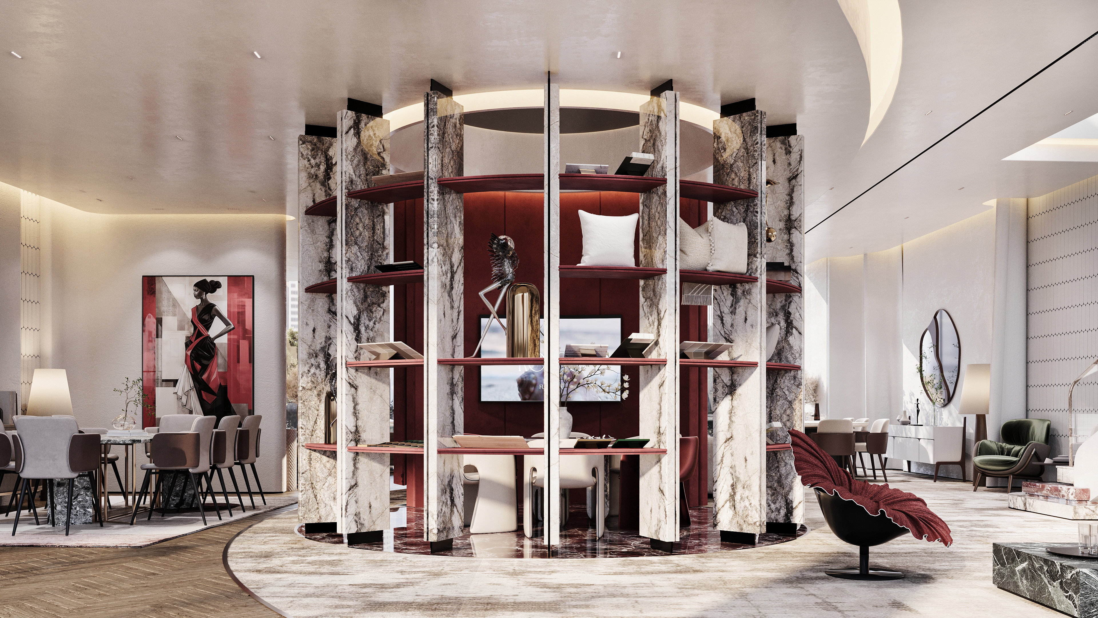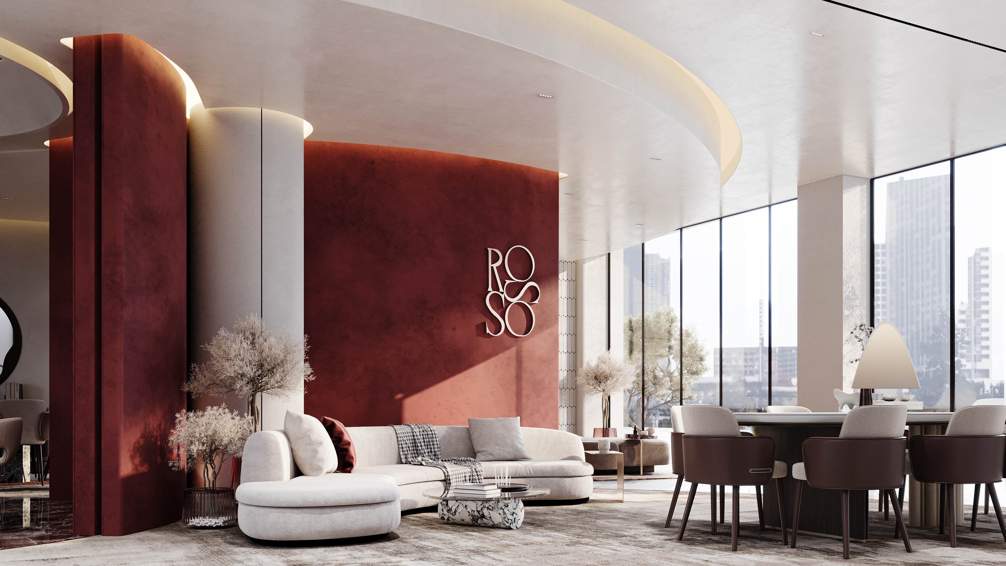 "Designing Rosso was like dressing a woman in a red gown — bold, elegant, and unforgettable. Every curve, texture, and accent in the showroom mirrors the confidence and effect of red: a color that speaks without words. The space flows with the grace of high fashion, where luxury isn't just an aesthetic, but a feeling that lingers."