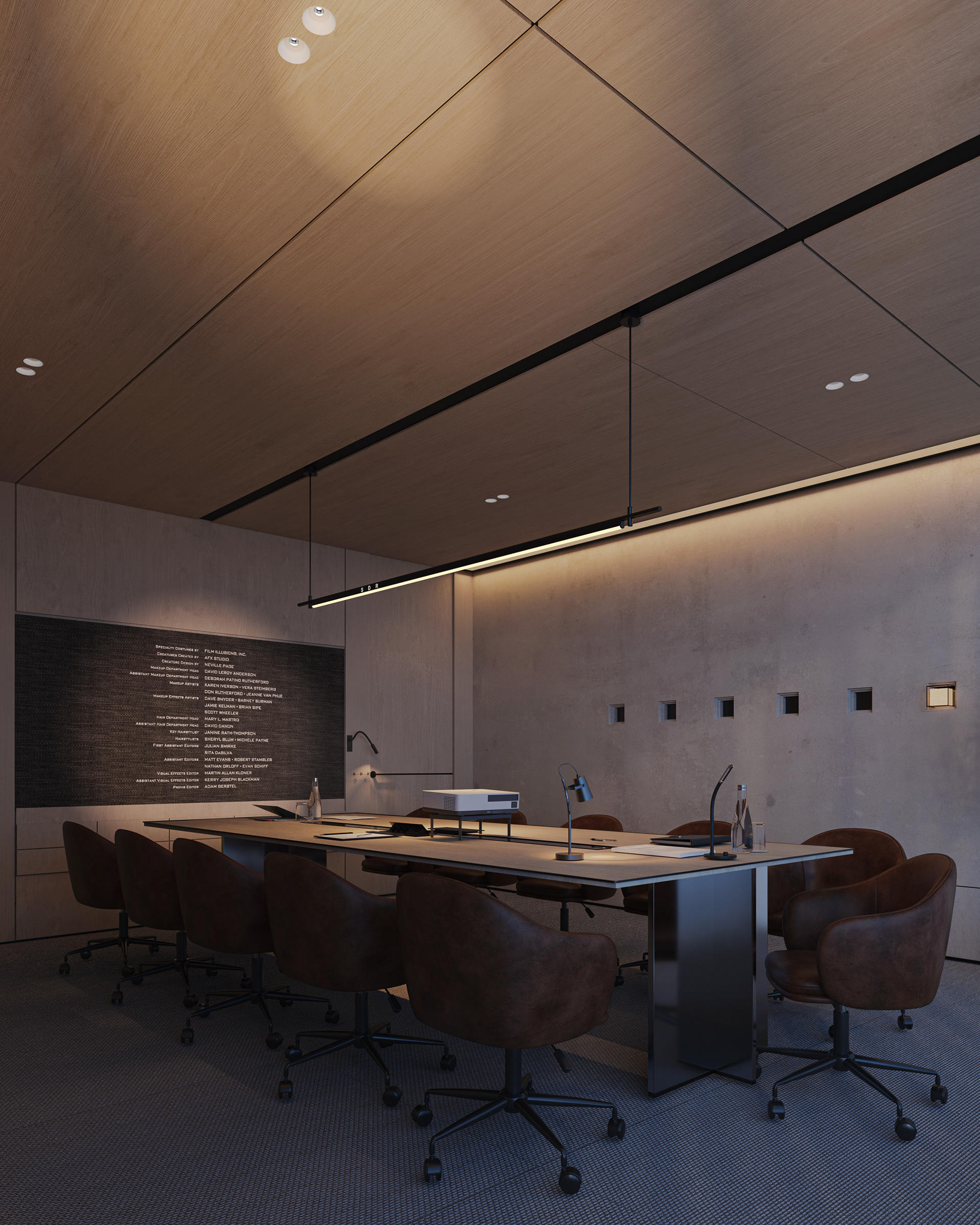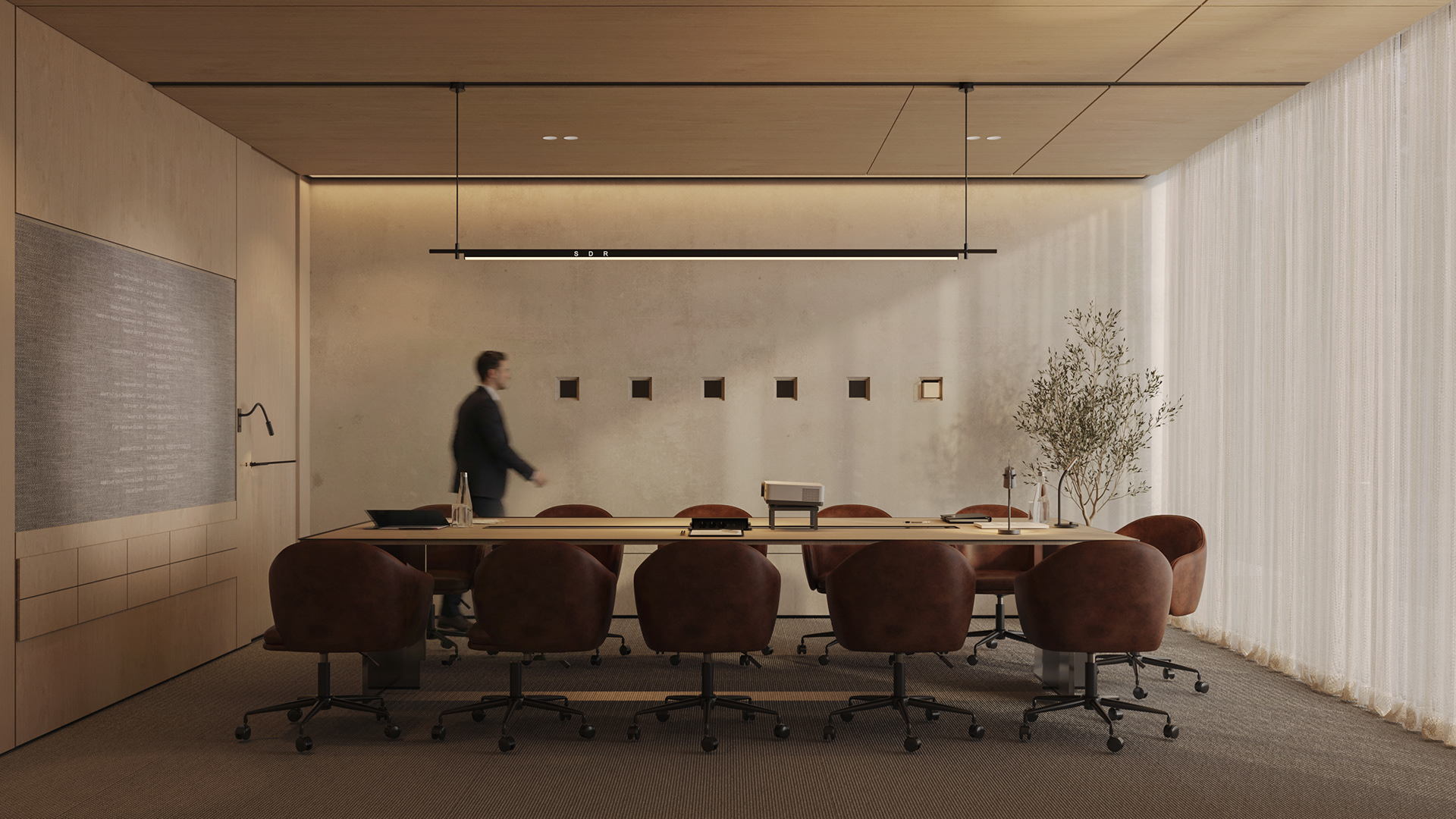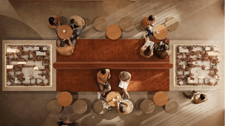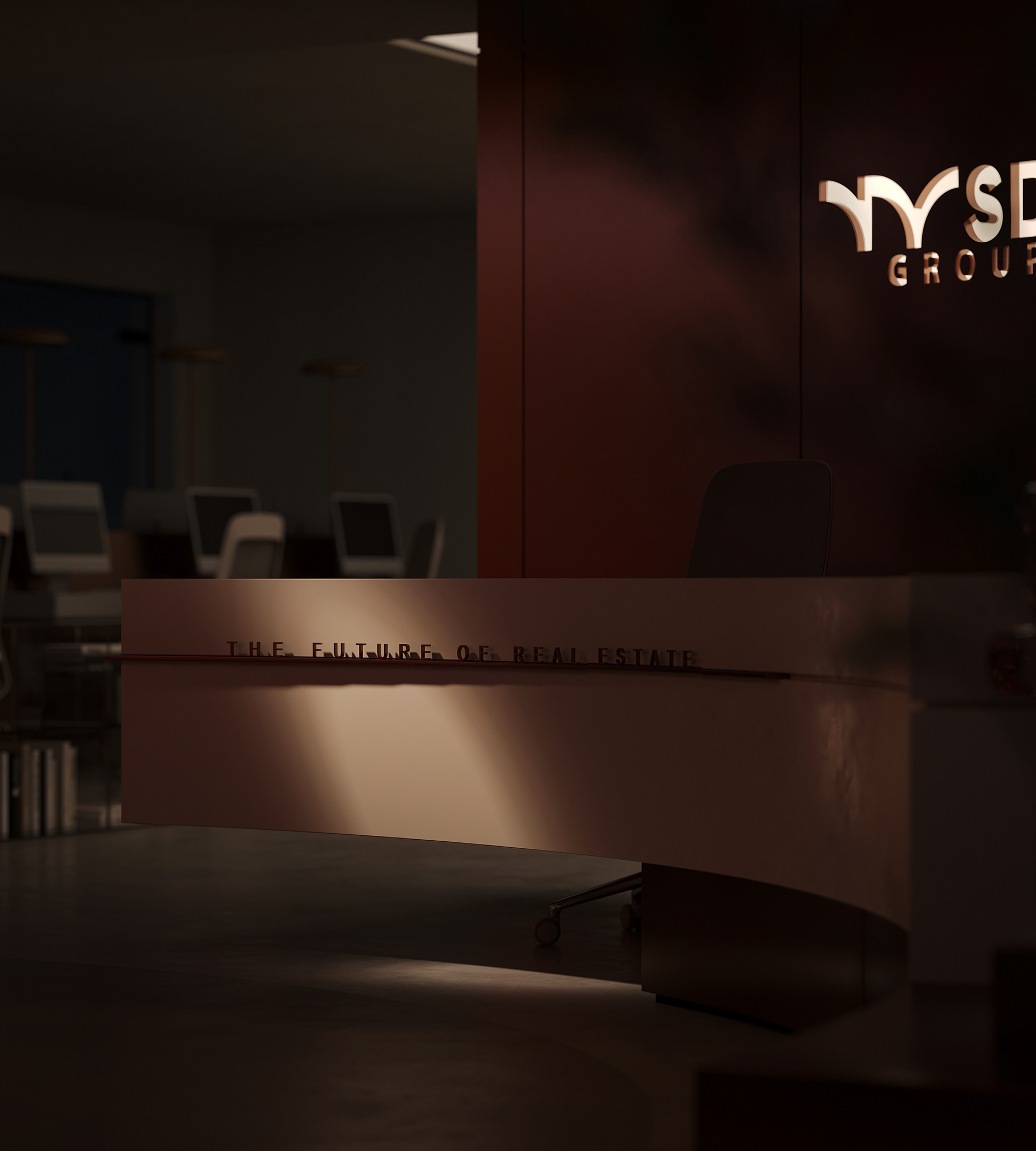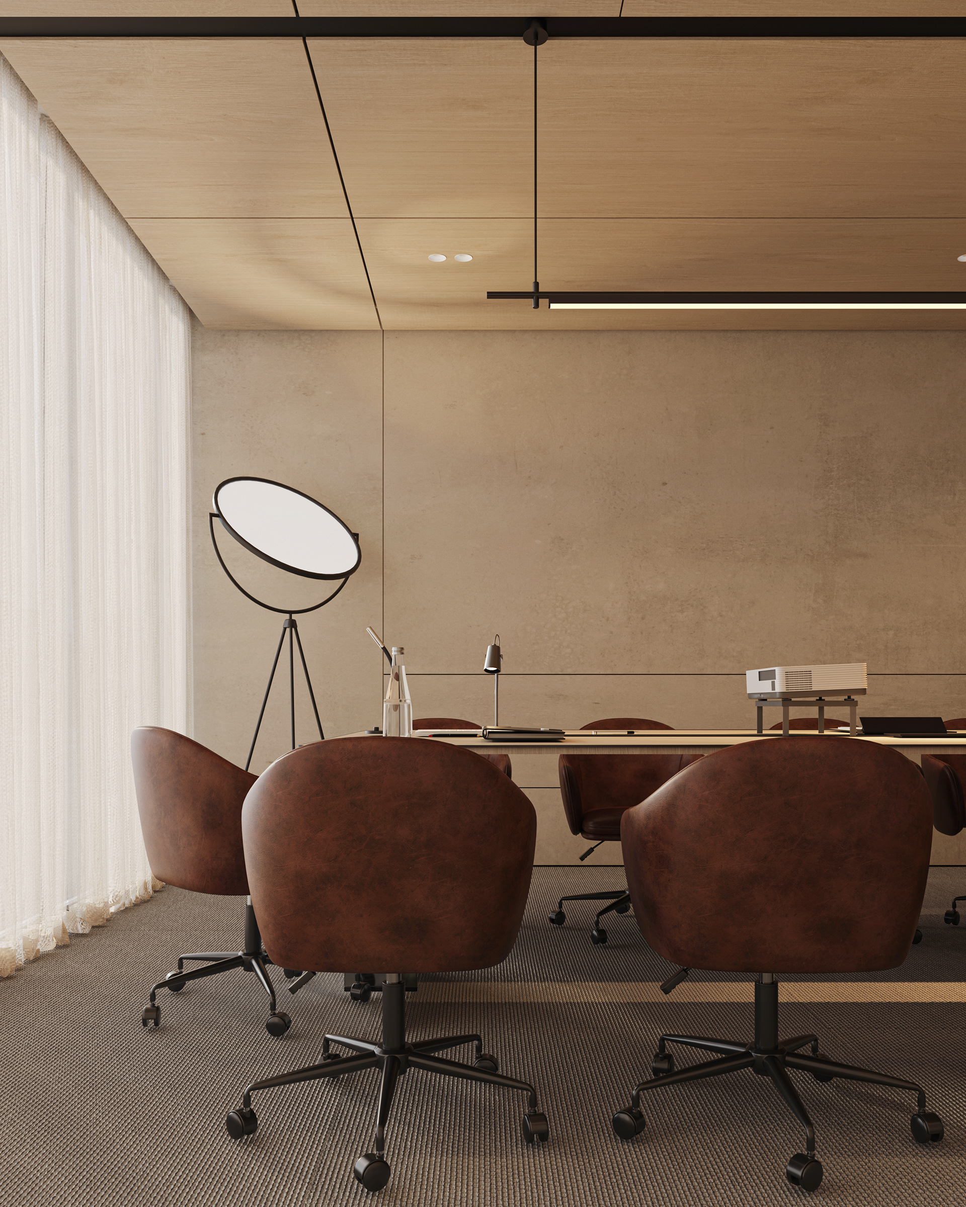 The workstations are defined by a simple yet confident design language, drawing on the same materials and elements introduced in the reception area to maintain visual continuity throughout the space. Integrated lighting is built directly into the workstations, providing focused illumination while keeping the ceiling clean, seamless, and free of visual clutter. This approach reinforces a sense of order and calm, allowing the architecture and furnishings to speak with quiet strength.