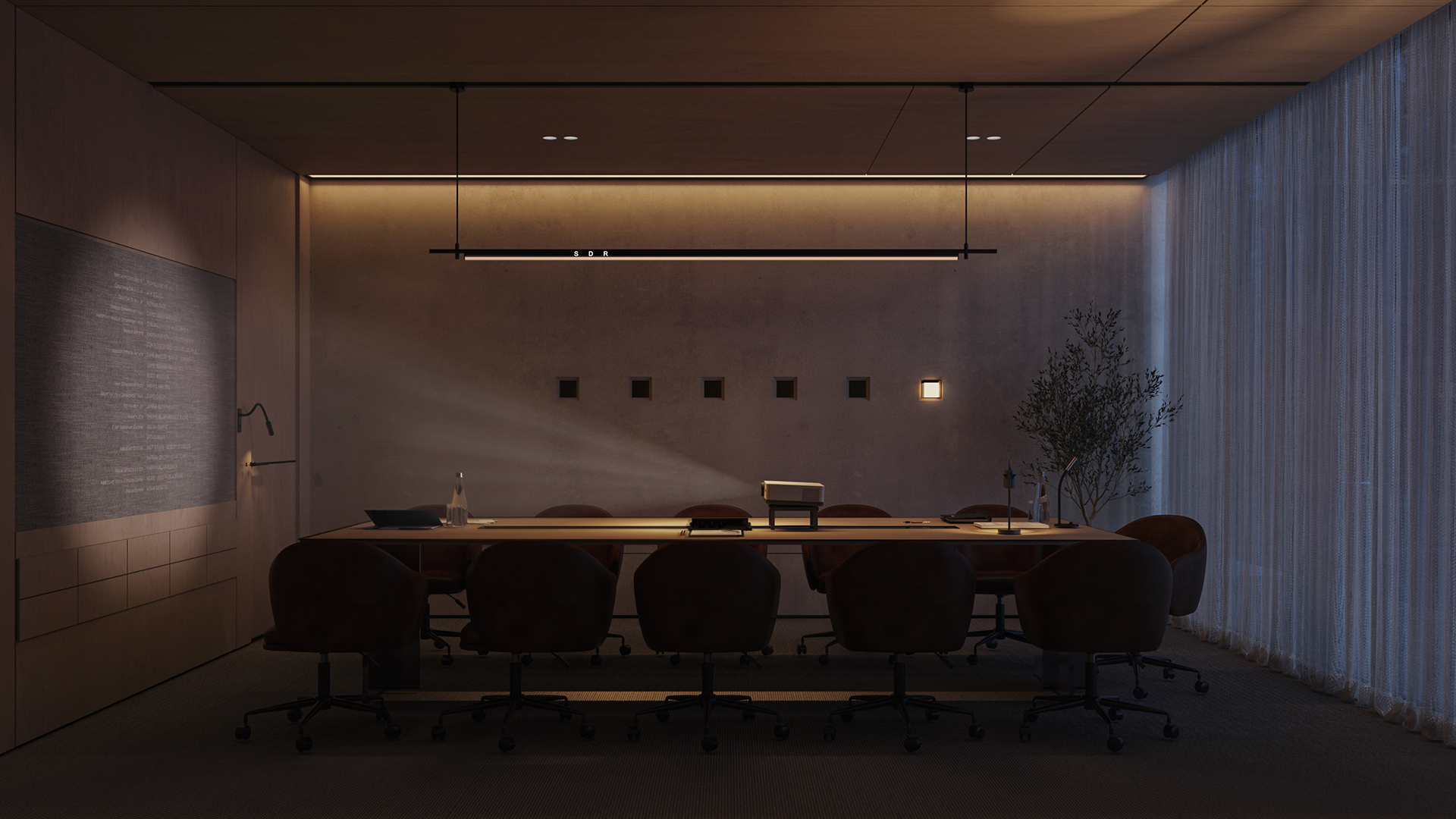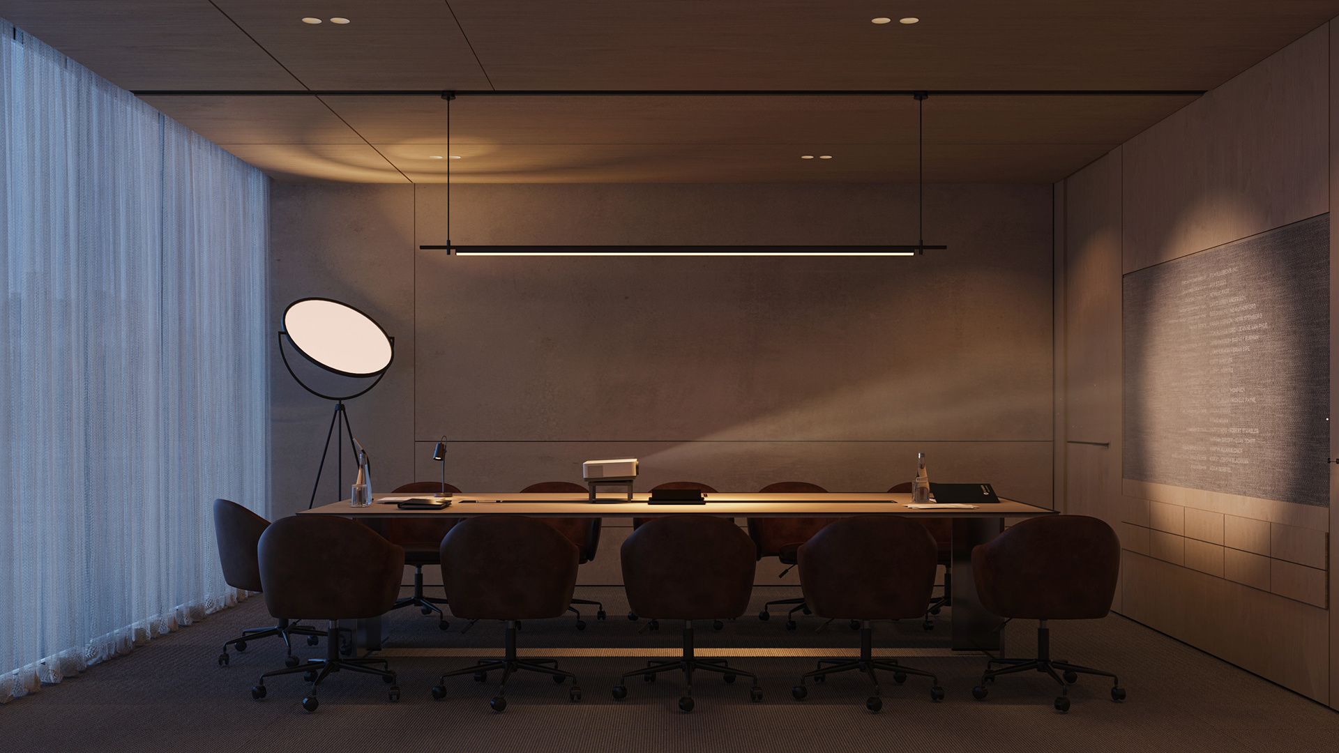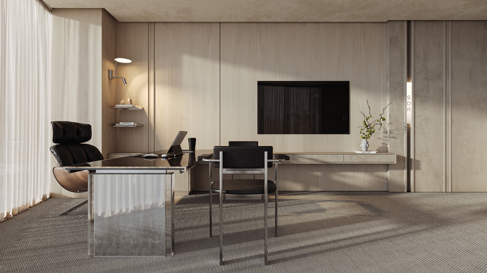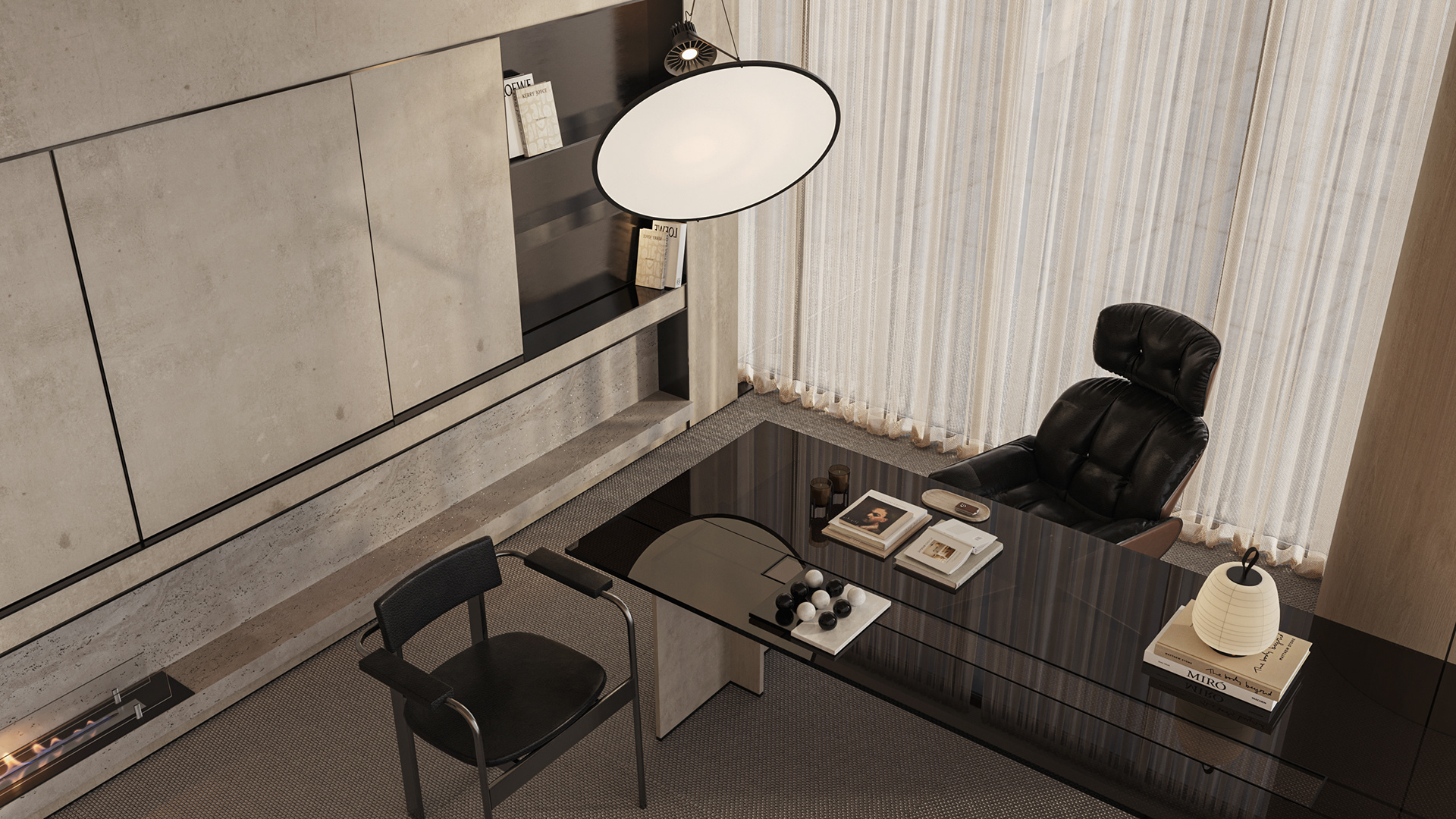 The workstations are defined by a simple yet confident design language, drawing on the same materials and elements introduced in the reception area to maintain visual continuity throughout the space. Integrated lighting is built directly into the workstations, providing focused illumination while keeping the ceiling clean, seamless, and free of visual clutter. This approach reinforces a sense of order and calm, allowing the architecture and furnishings to speak with quiet strength.