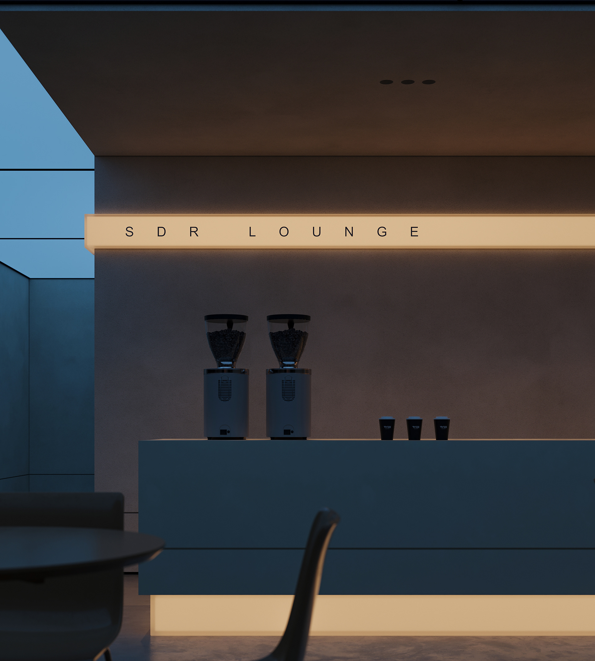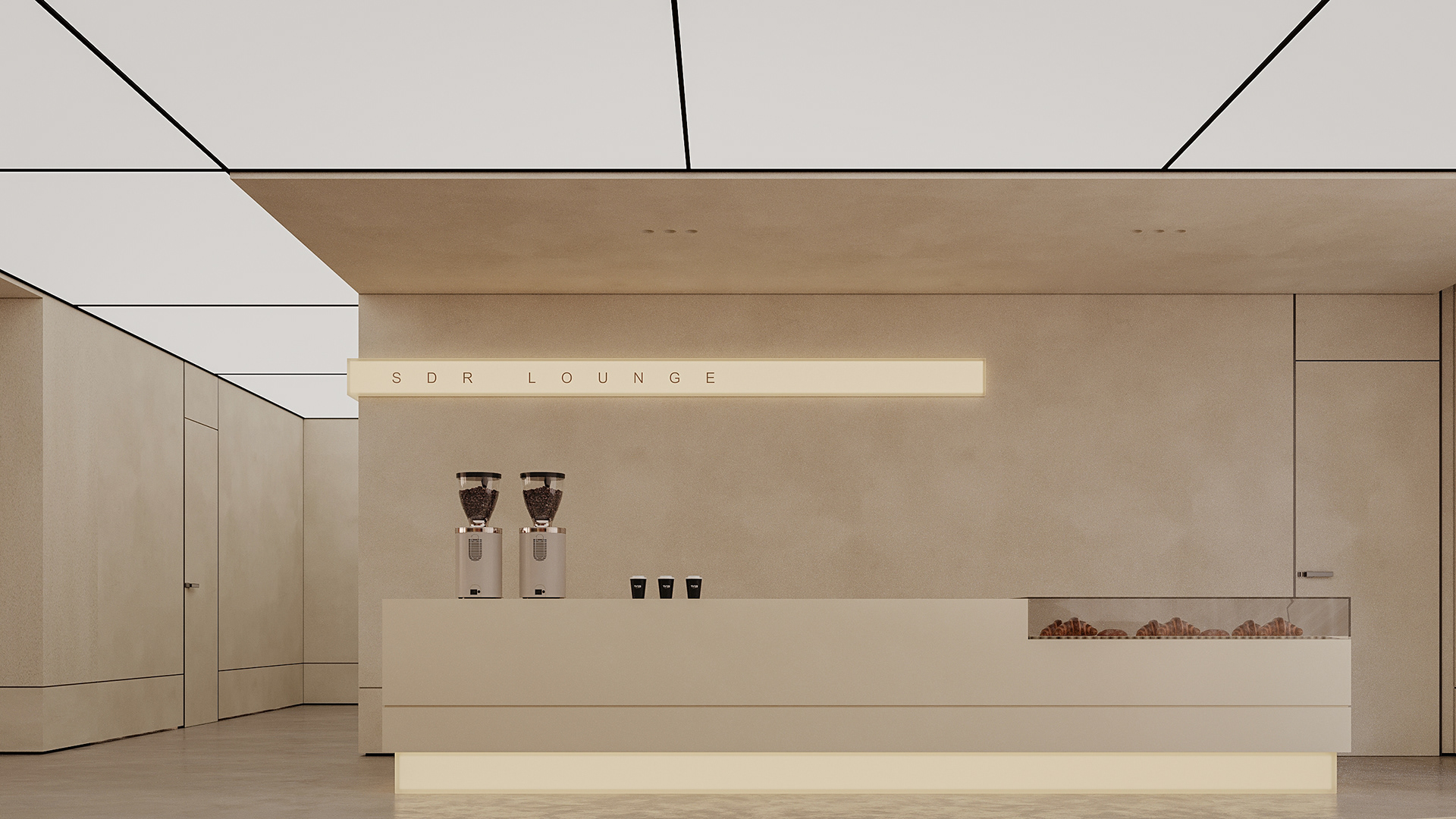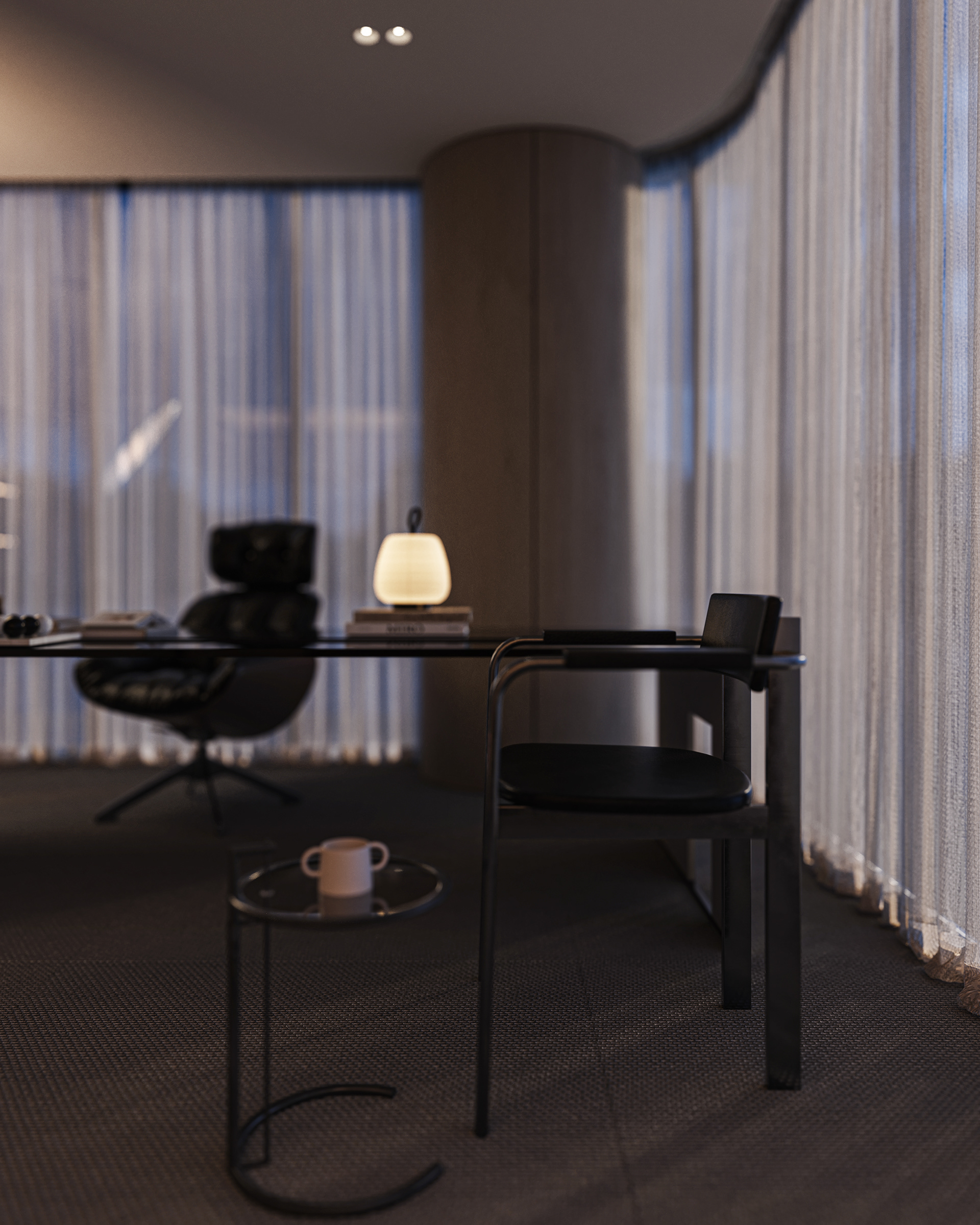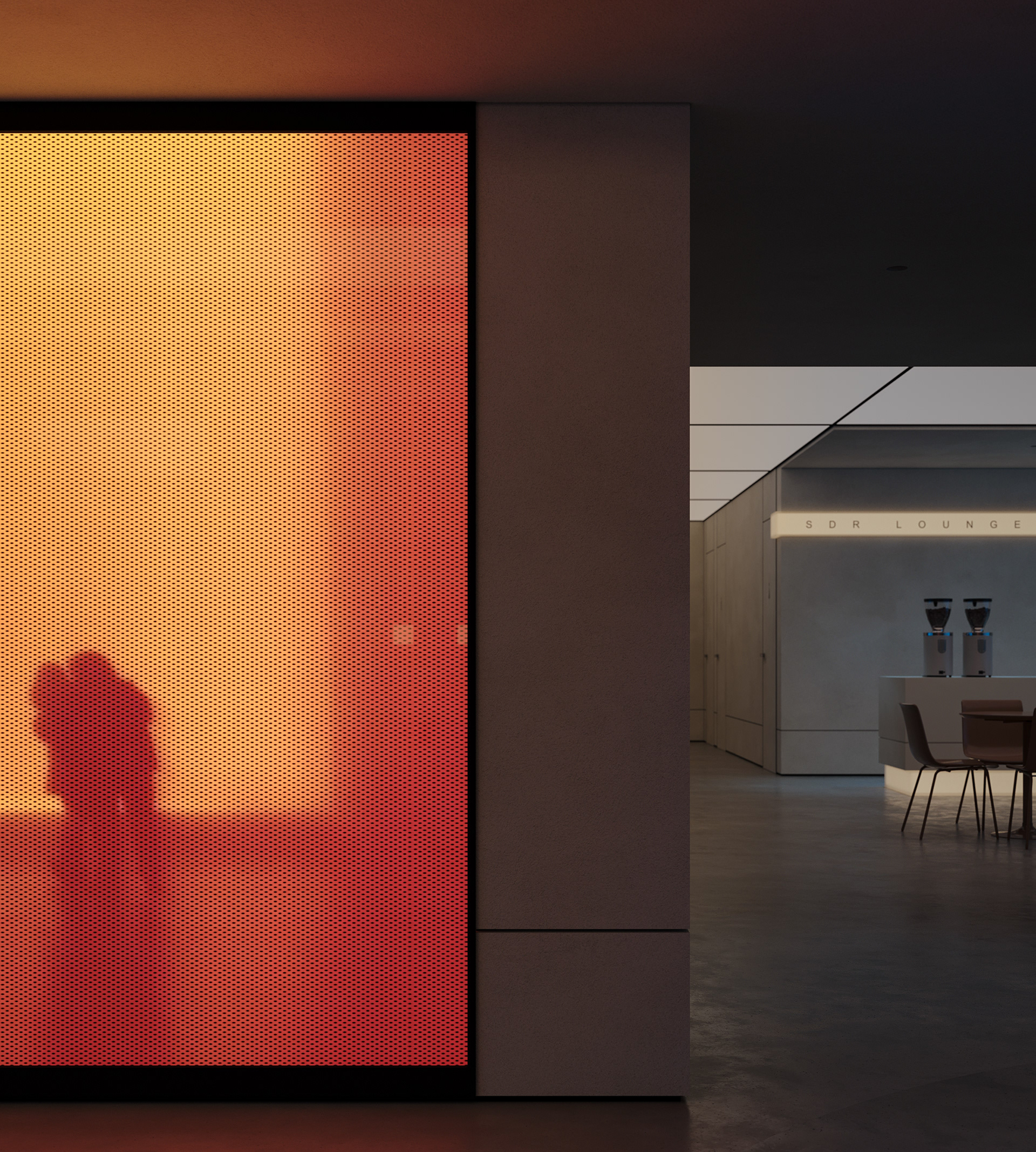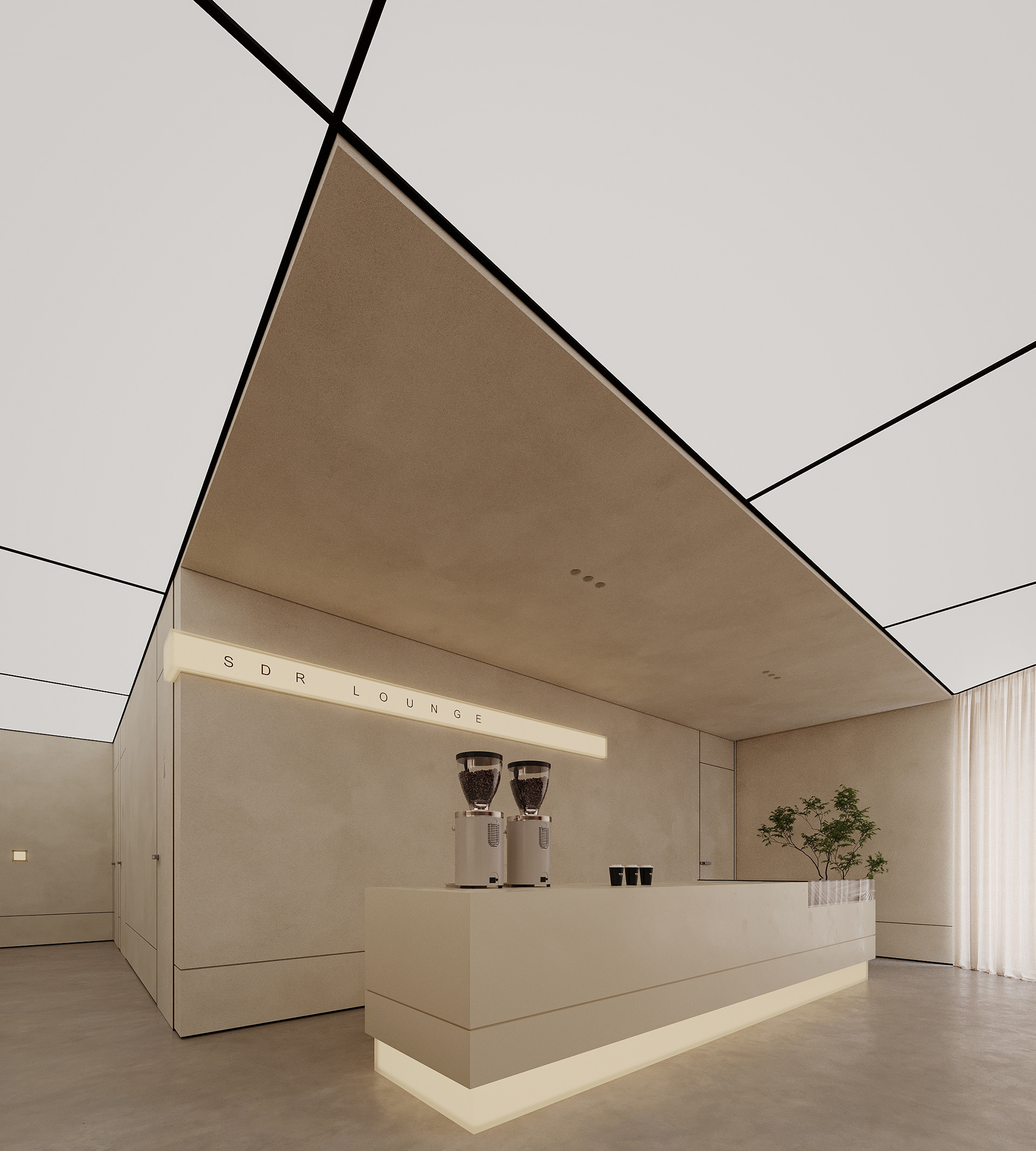 The break area remains visually connected to the workspace and reception while establishing its own distinct atmosphere. By reinterpreting the material palette, soft lighting, and refined detailing introduced at the reception, the space maintains design continuity while expressing a more relaxed and intimate mood.
