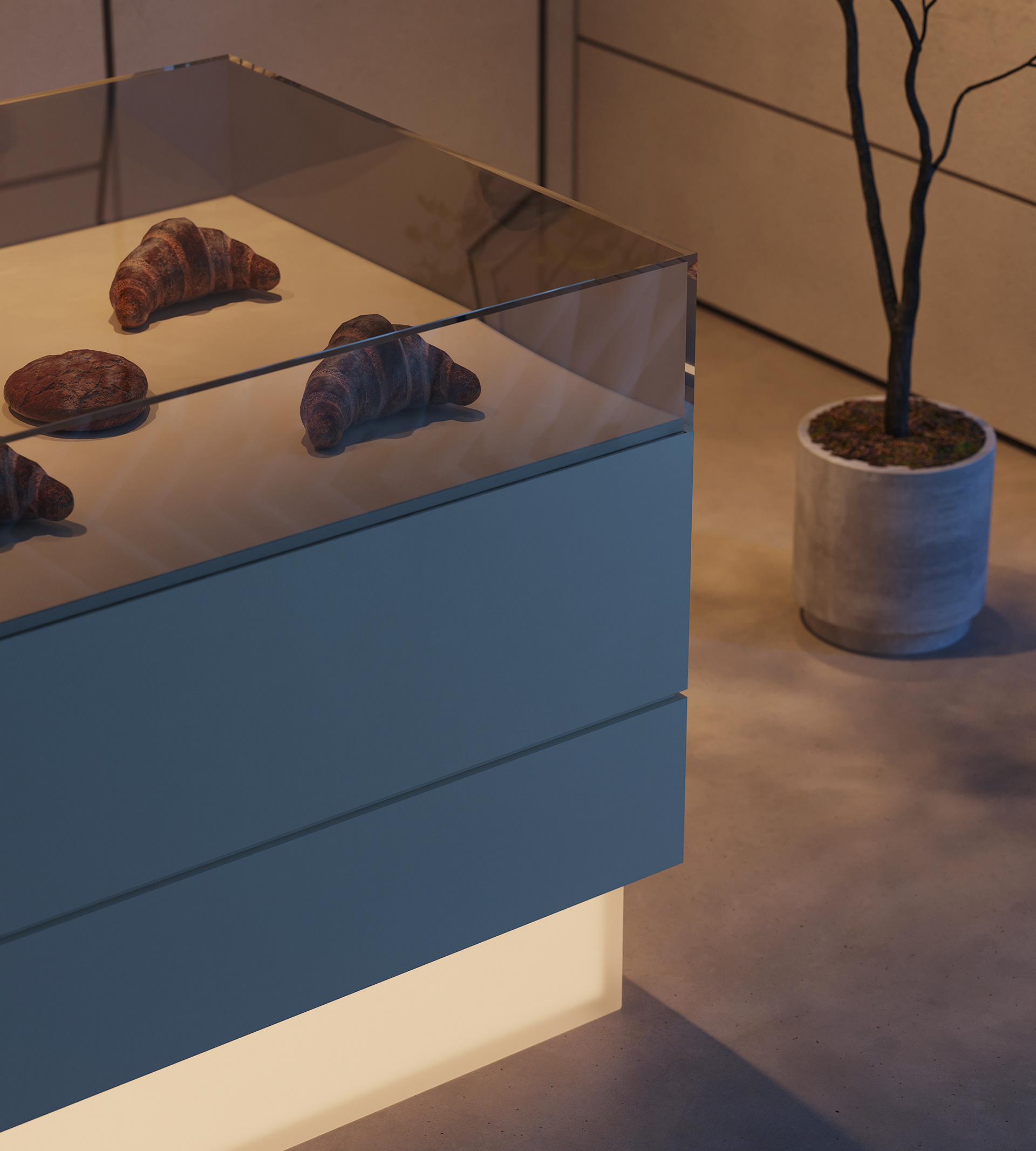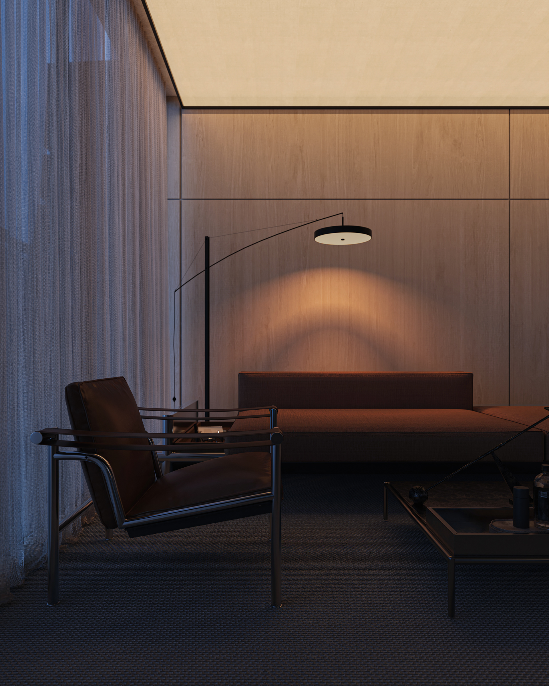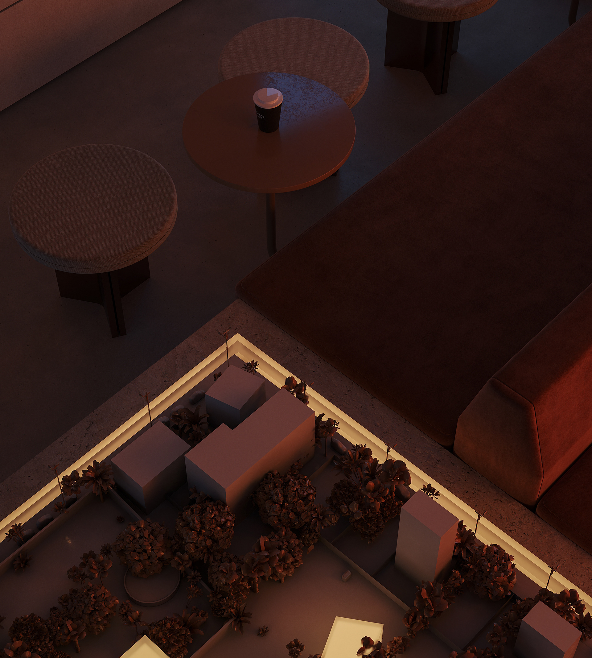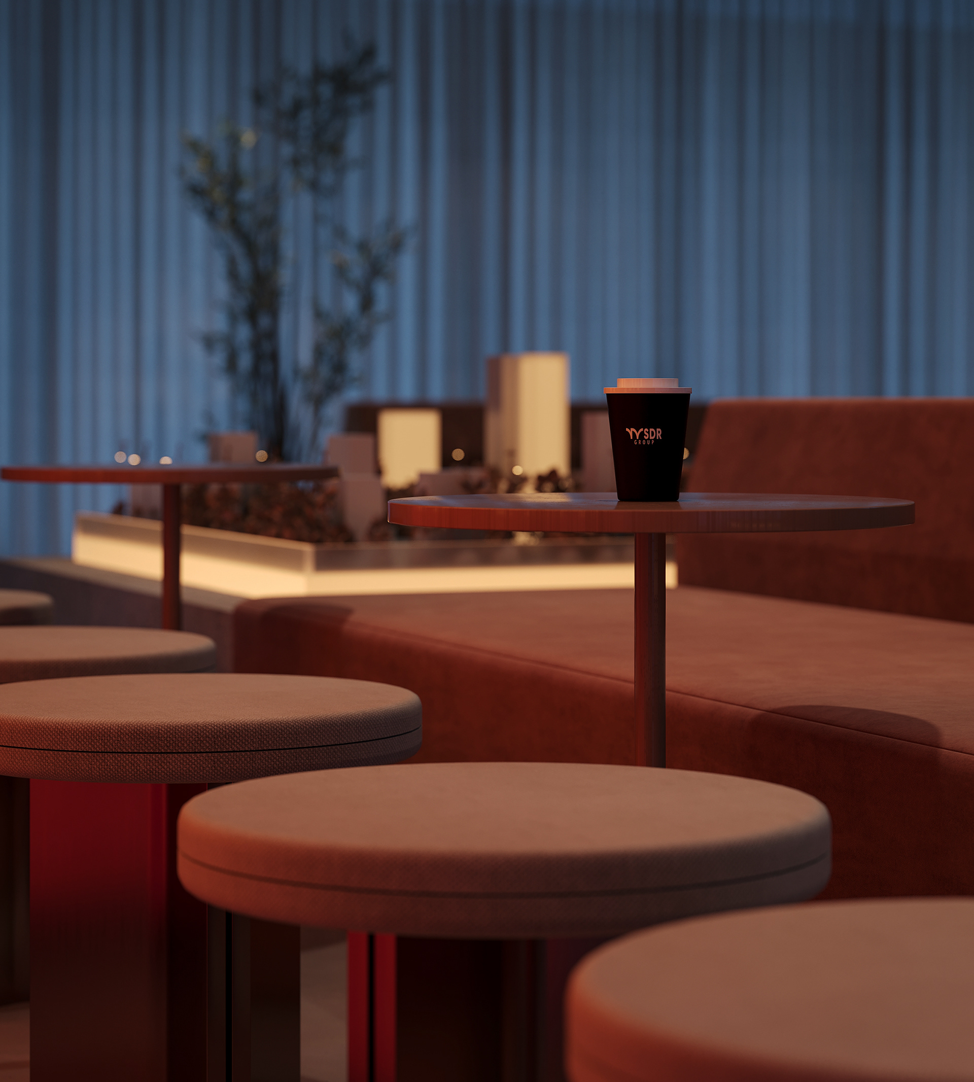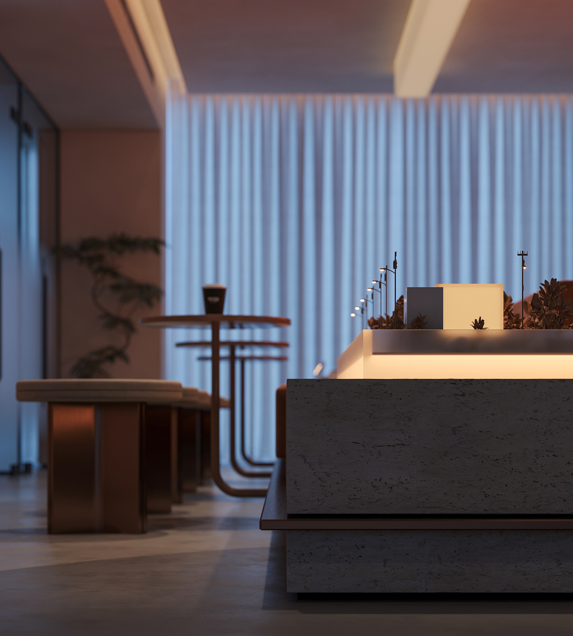 The break area remains visually connected to the workspace and reception while establishing its own distinct atmosphere. By reinterpreting the material palette, soft lighting, and refined detailing introduced at the reception, the space maintains design continuity while expressing a more relaxed and intimate mood.