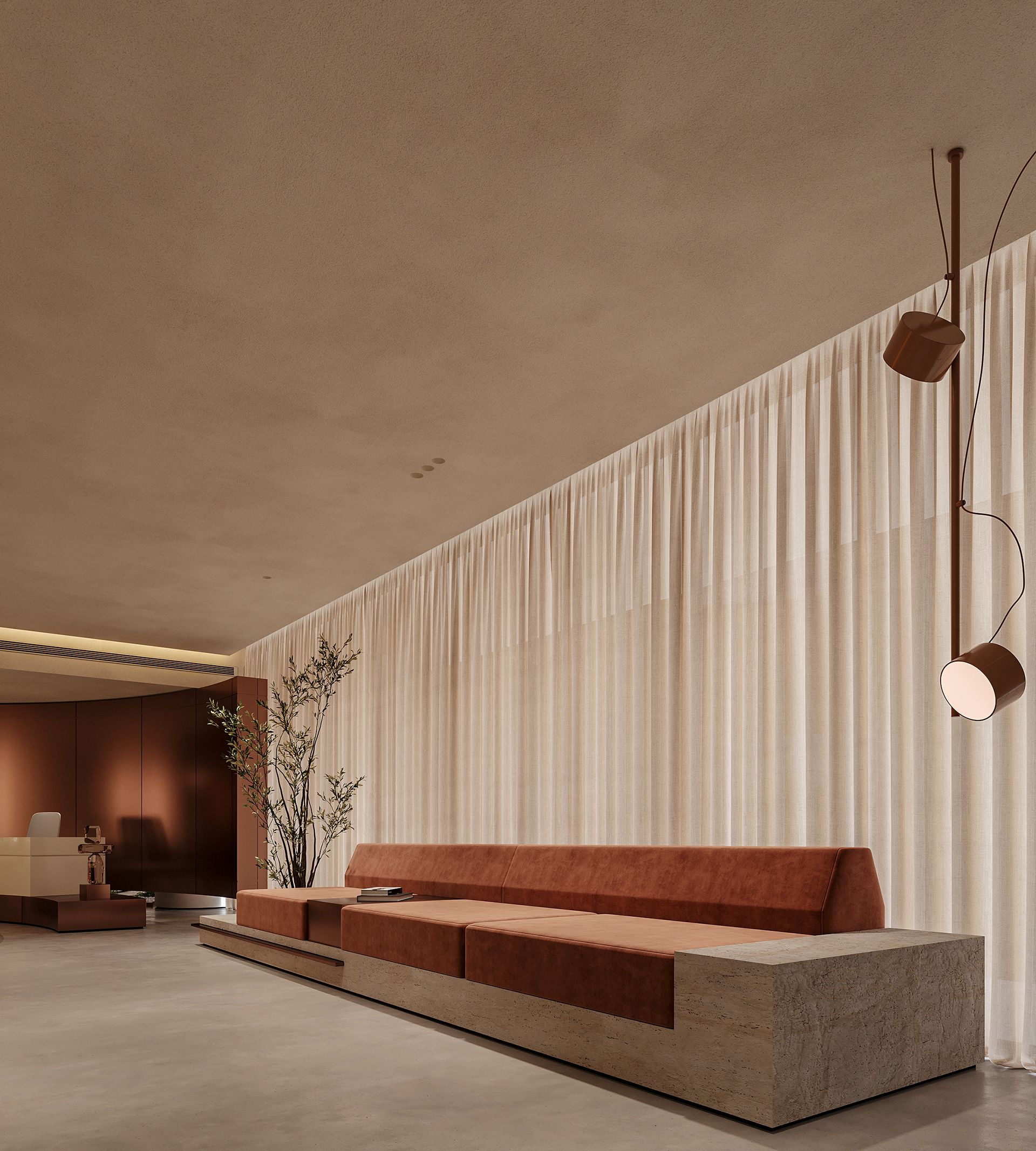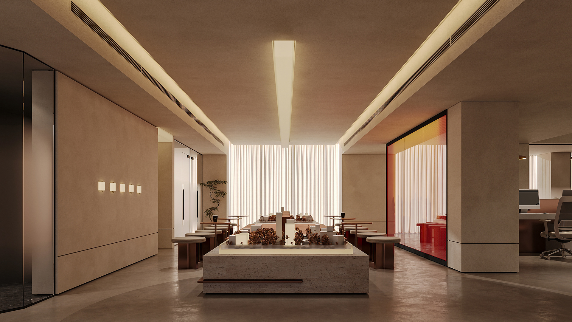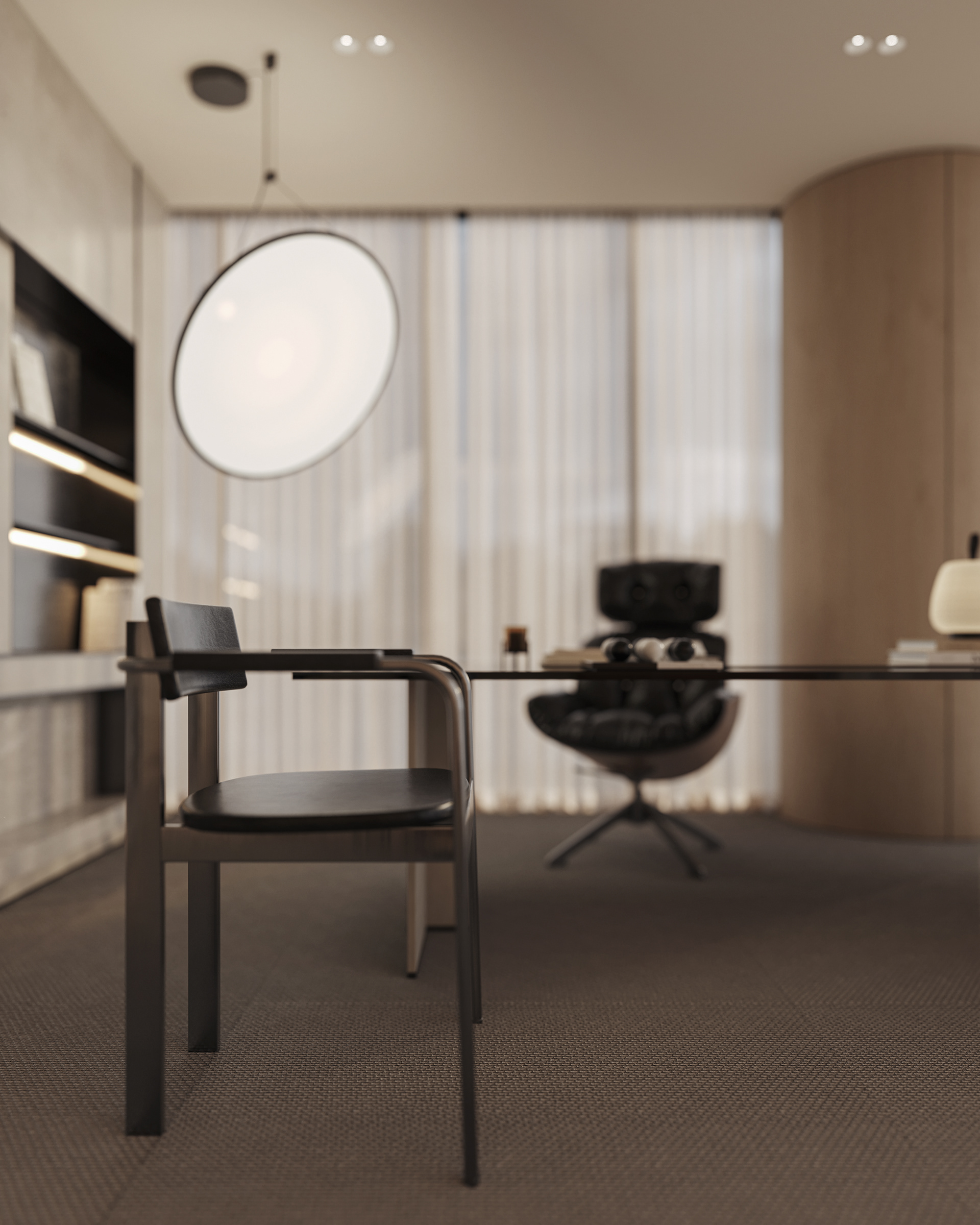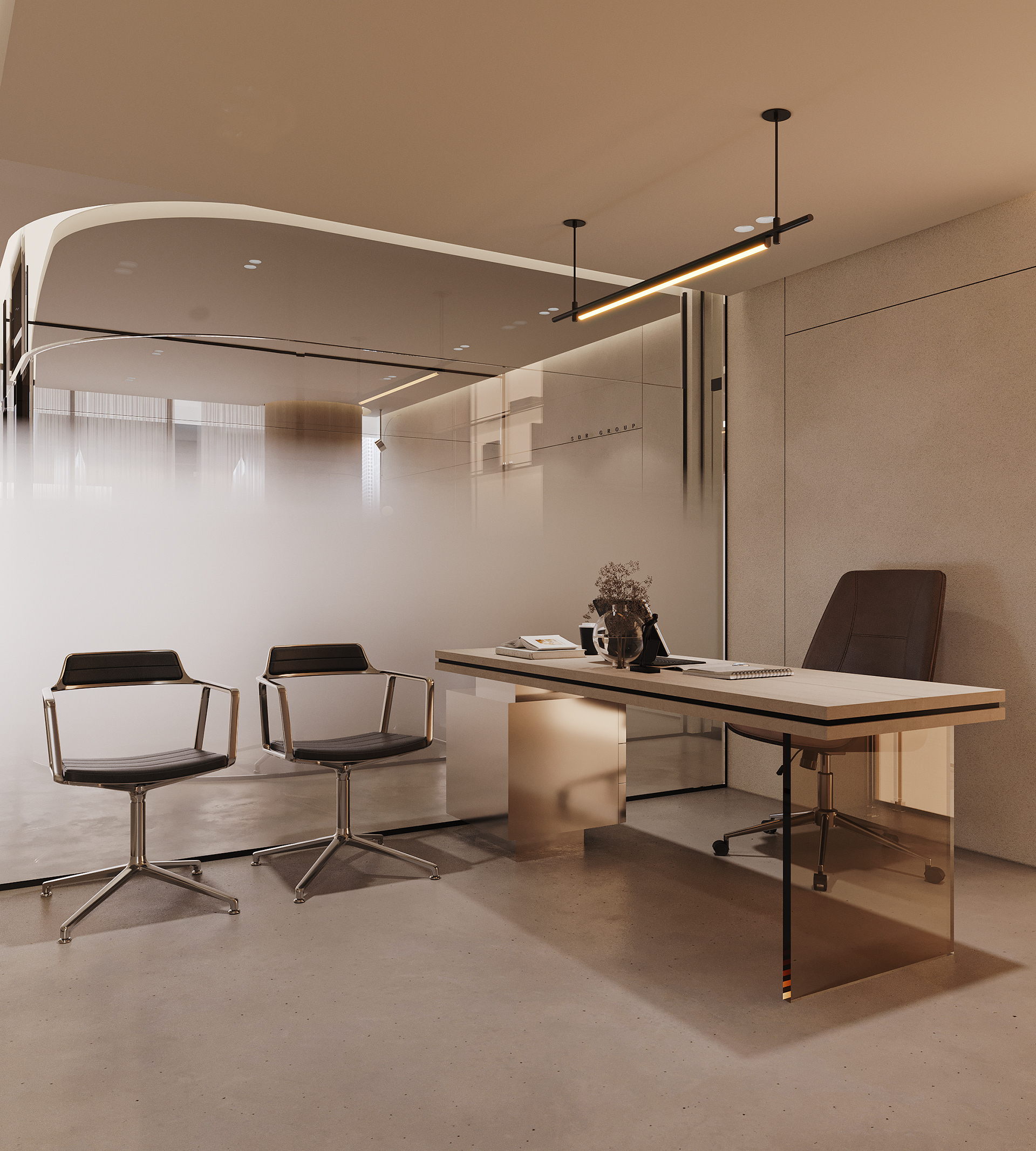 The aim was to create an open, seamless environment where the office feels connected as one cohesive space, without losing the individuality of each area. The layout is organized around a central reception and client lounge, acting as the heart of the office and naturally guiding movement throughout the space.
