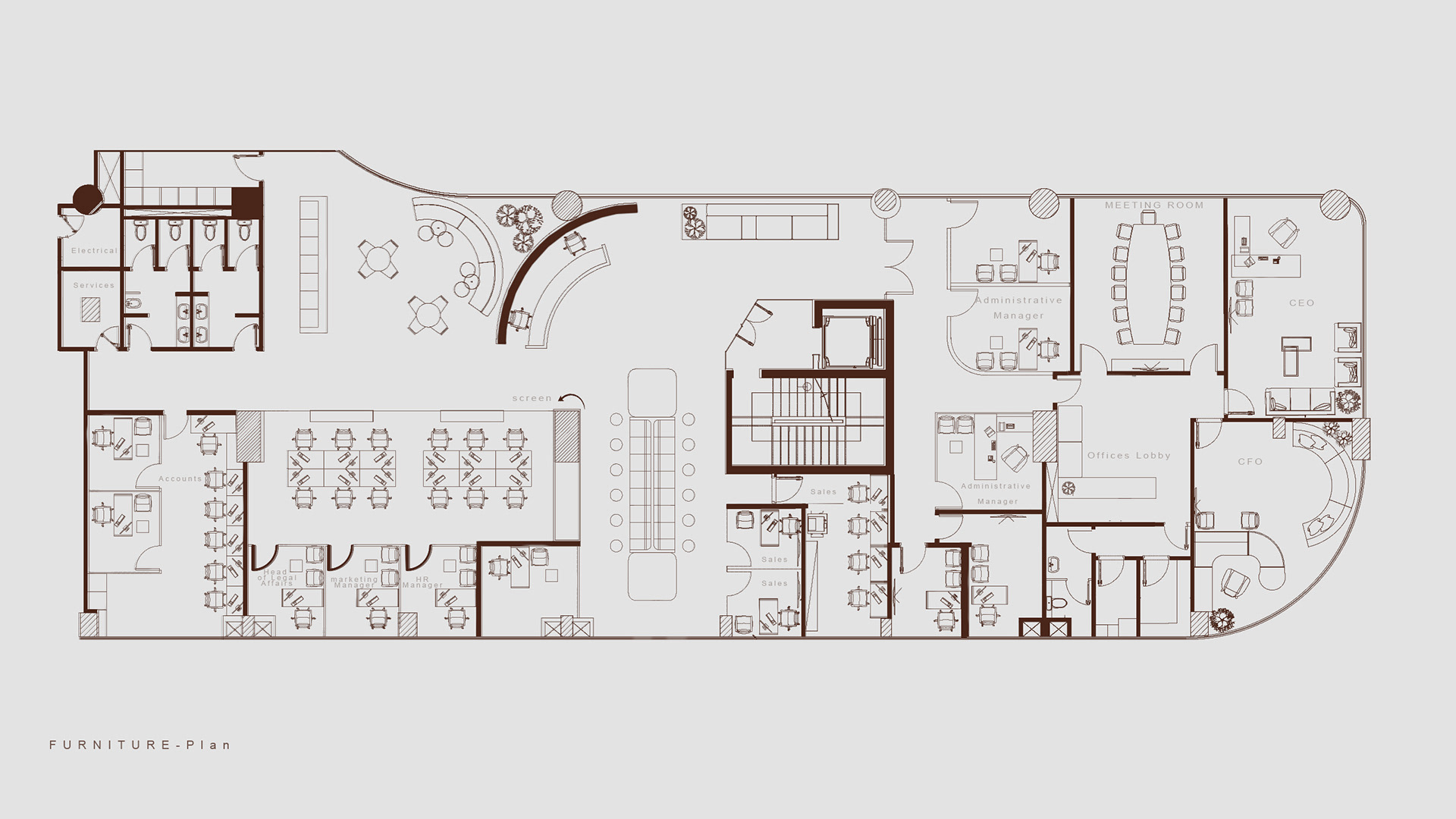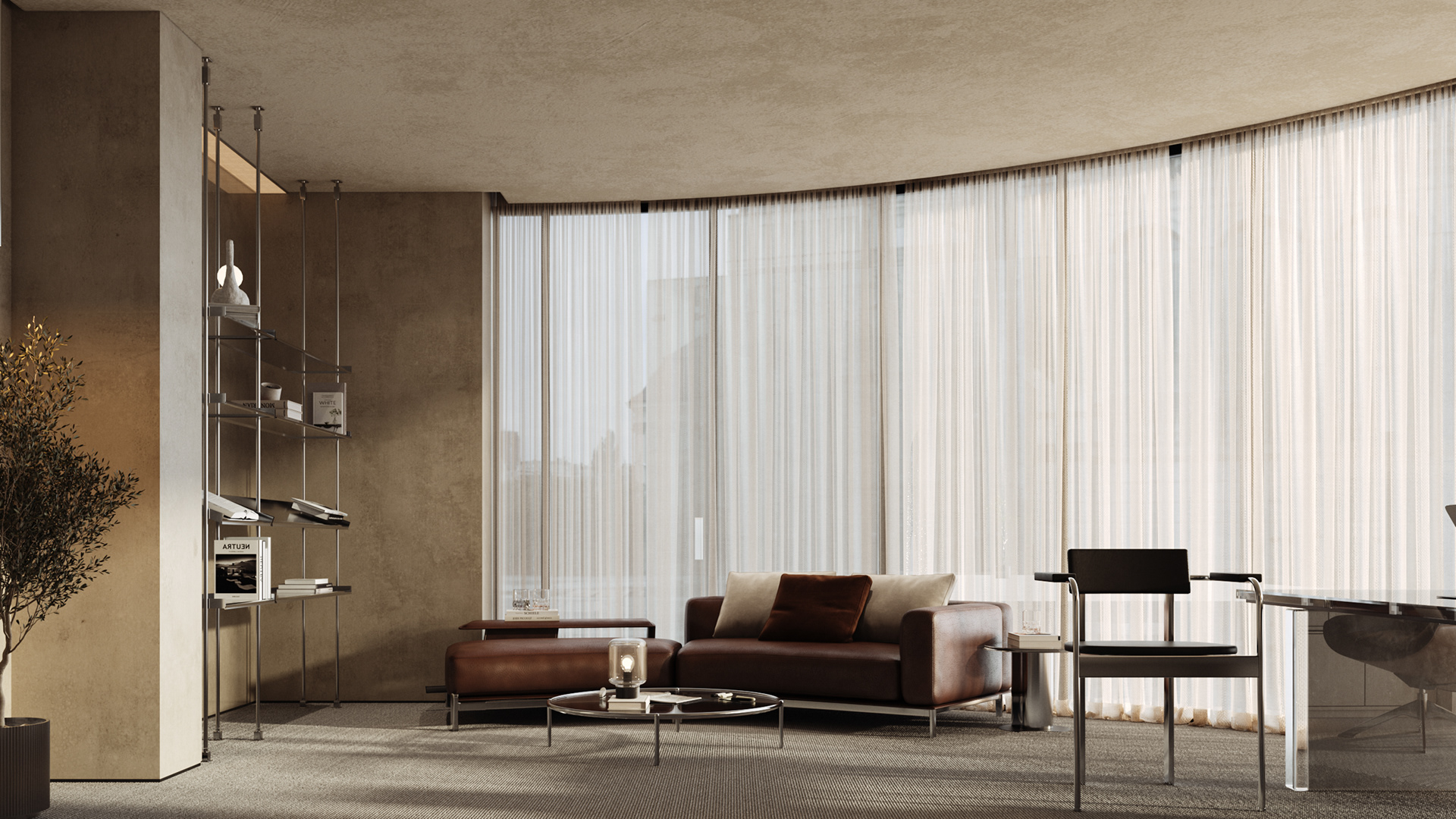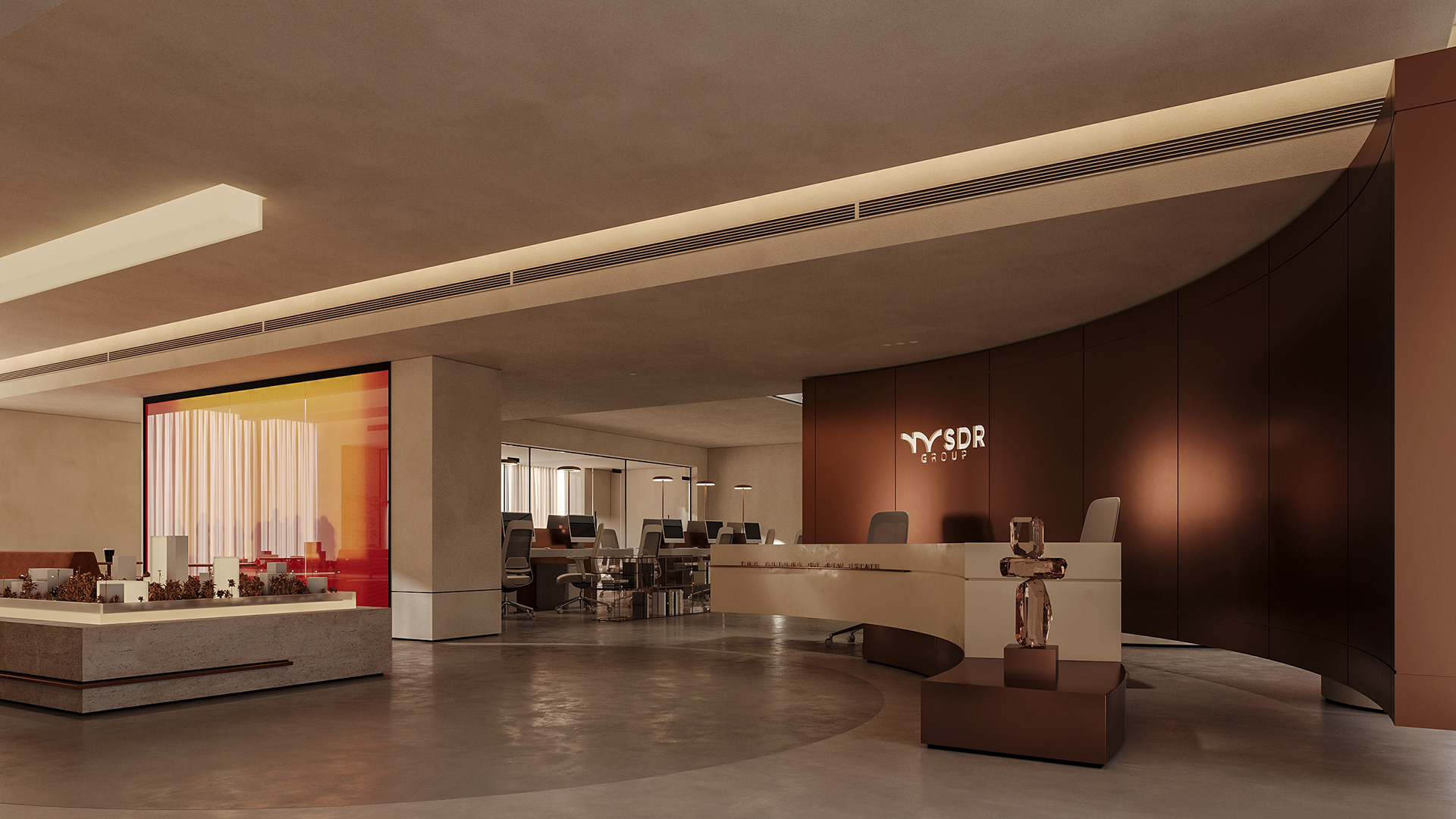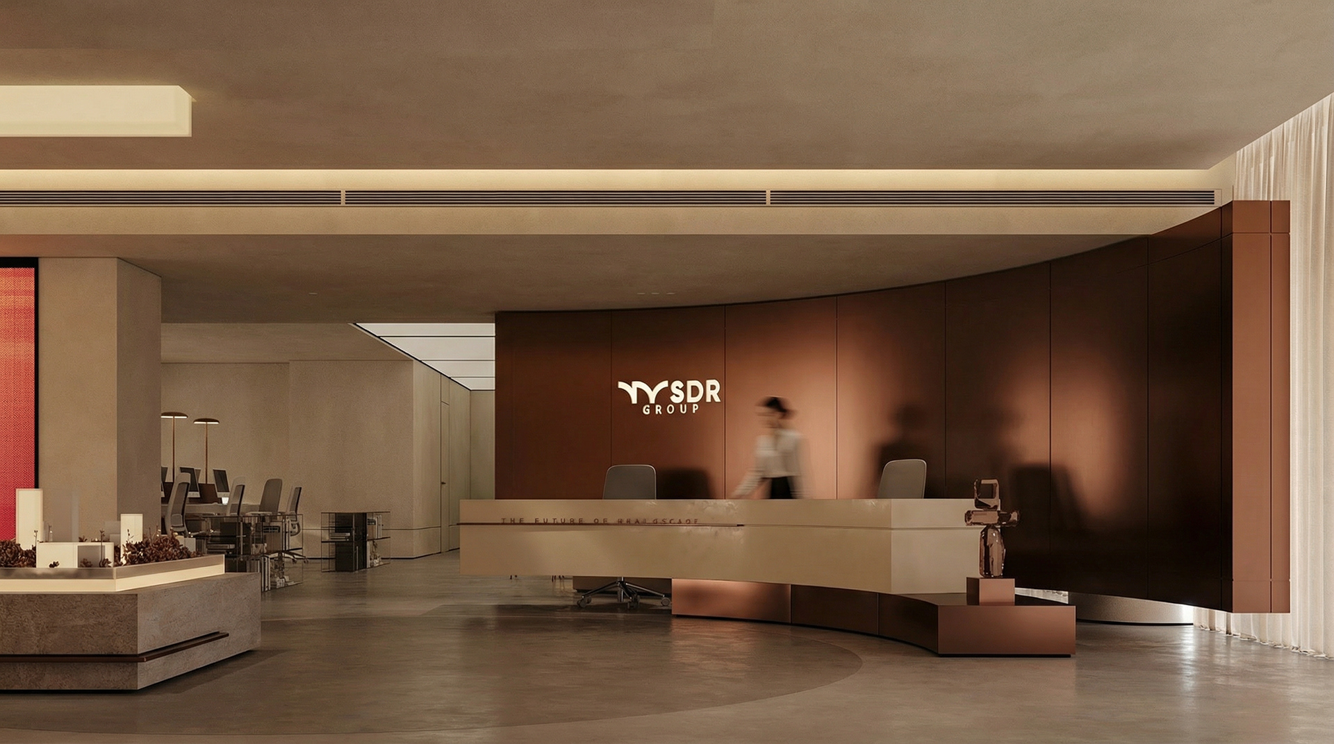 The aim was to create an open, seamless environment where the office feels connected as one cohesive space, without losing the individuality of each area. The layout is organized around a central reception and client lounge, acting as the heart of the office and naturally guiding movement throughout the space.