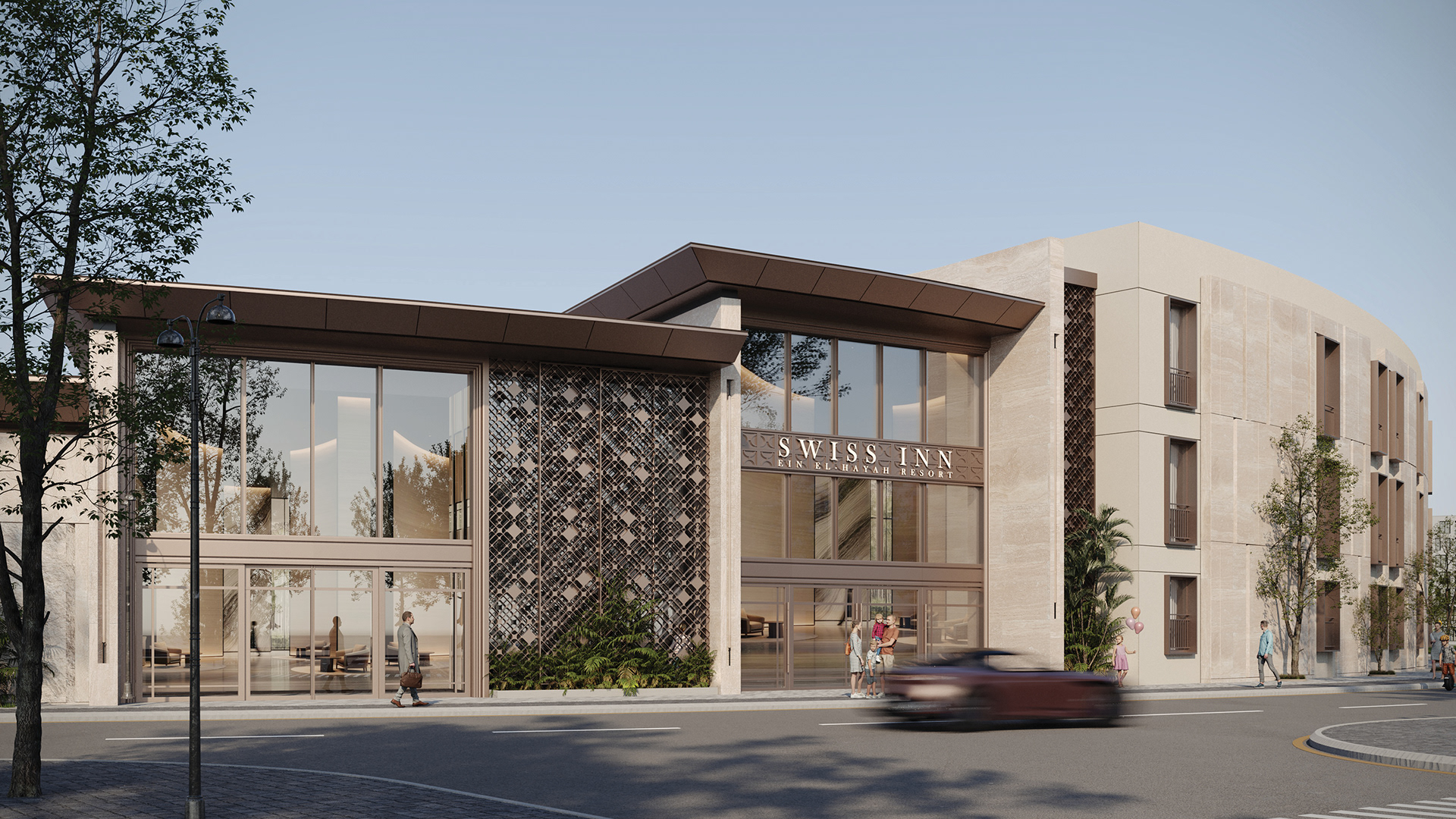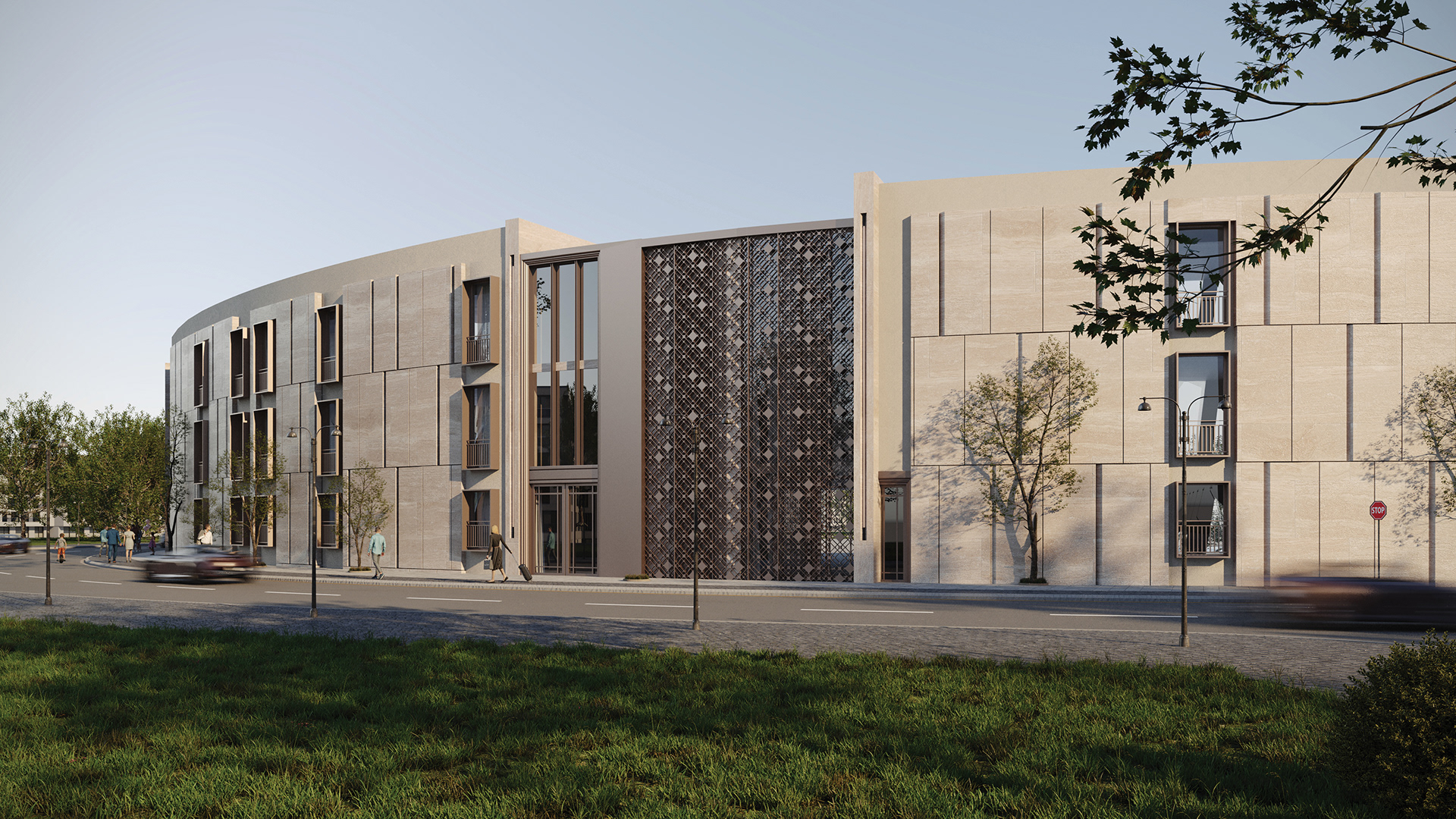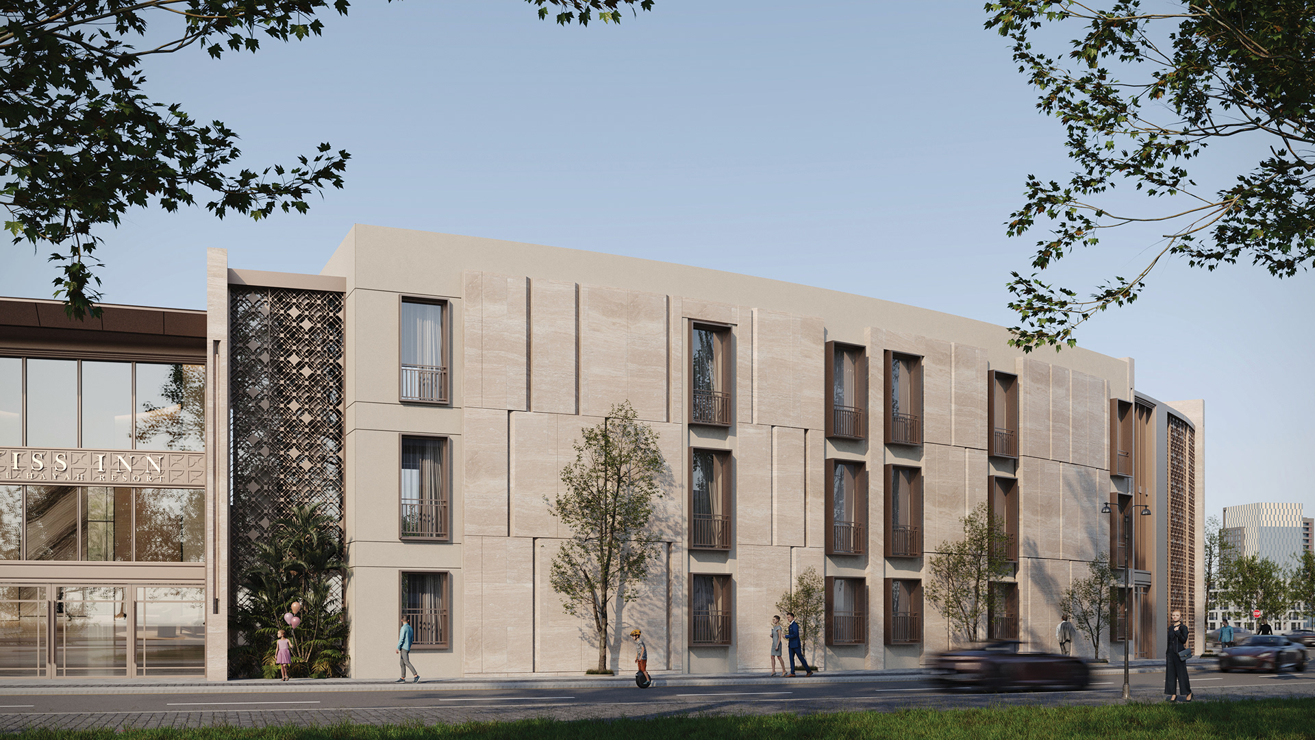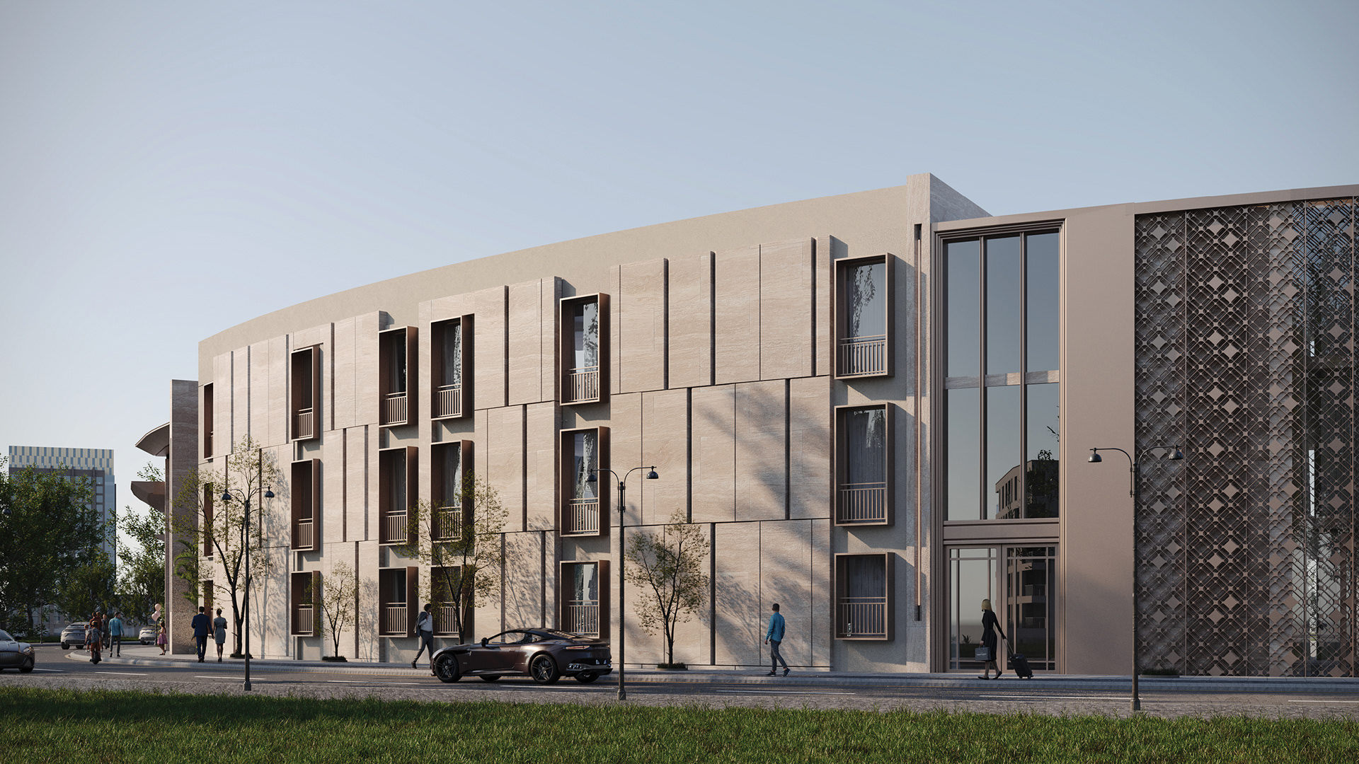 The design concept focuses on achieving a balanced integration between contemporary architecture and local identity. The building mass and façade composition are inspired by the surrounding context, using natural materials and earthy tones to create a calm and welcoming architectural expression.