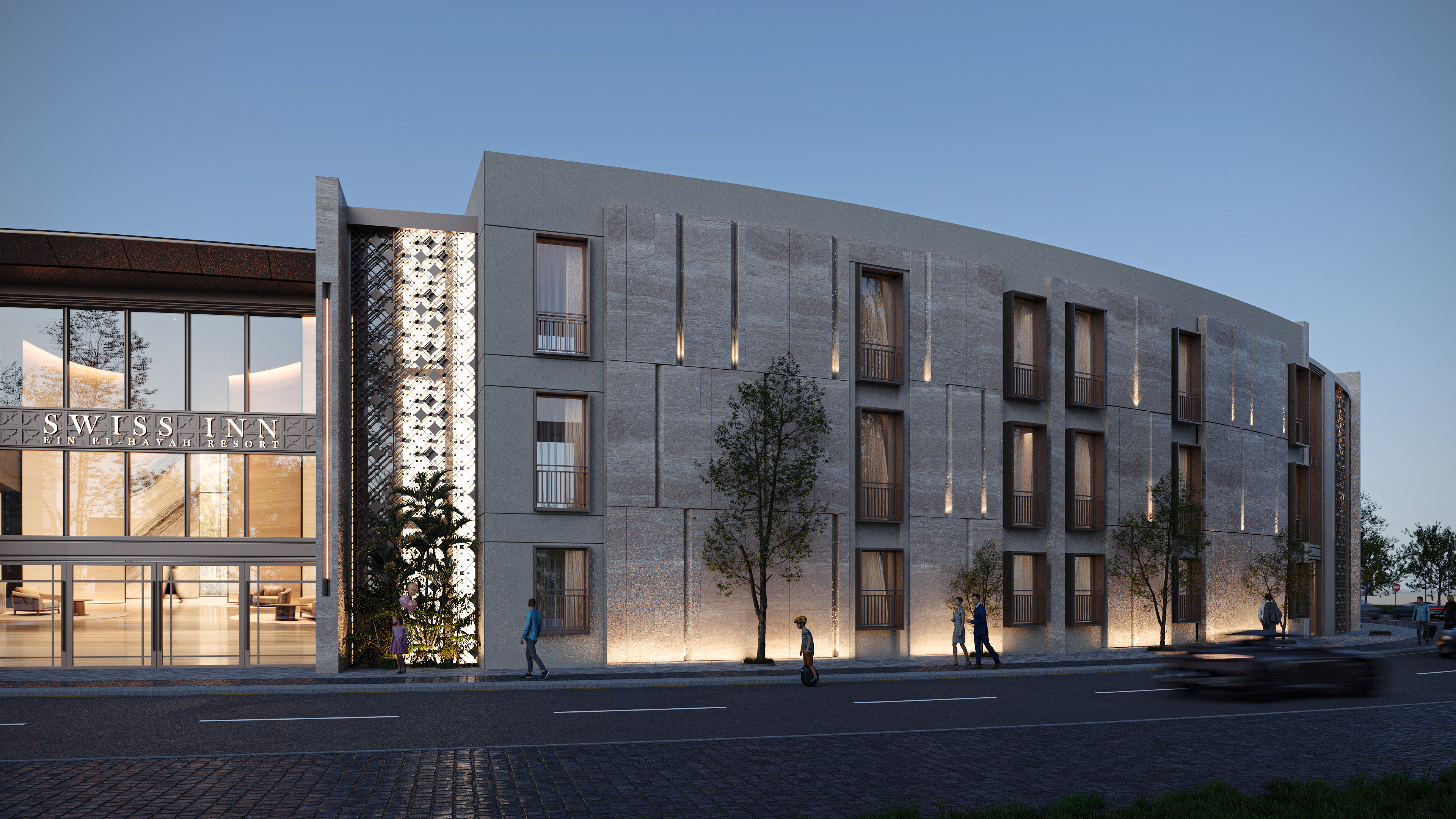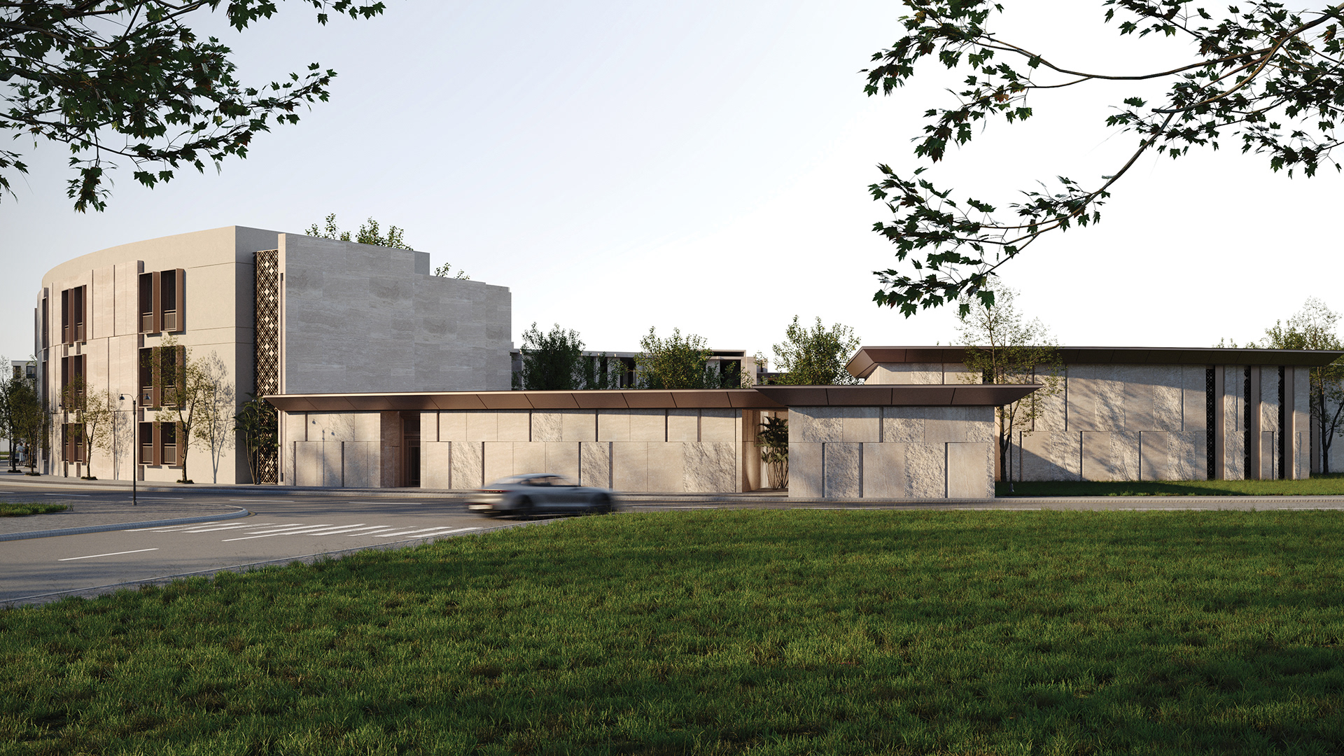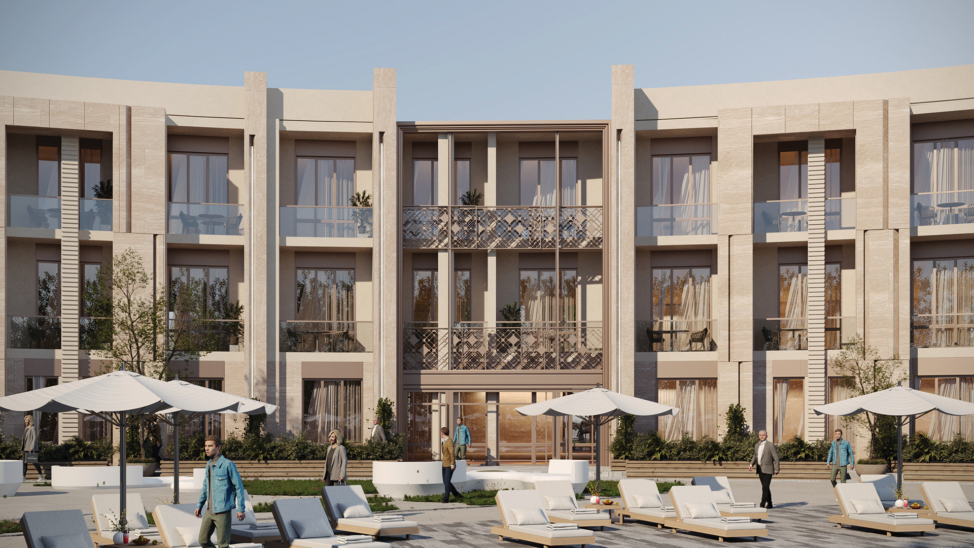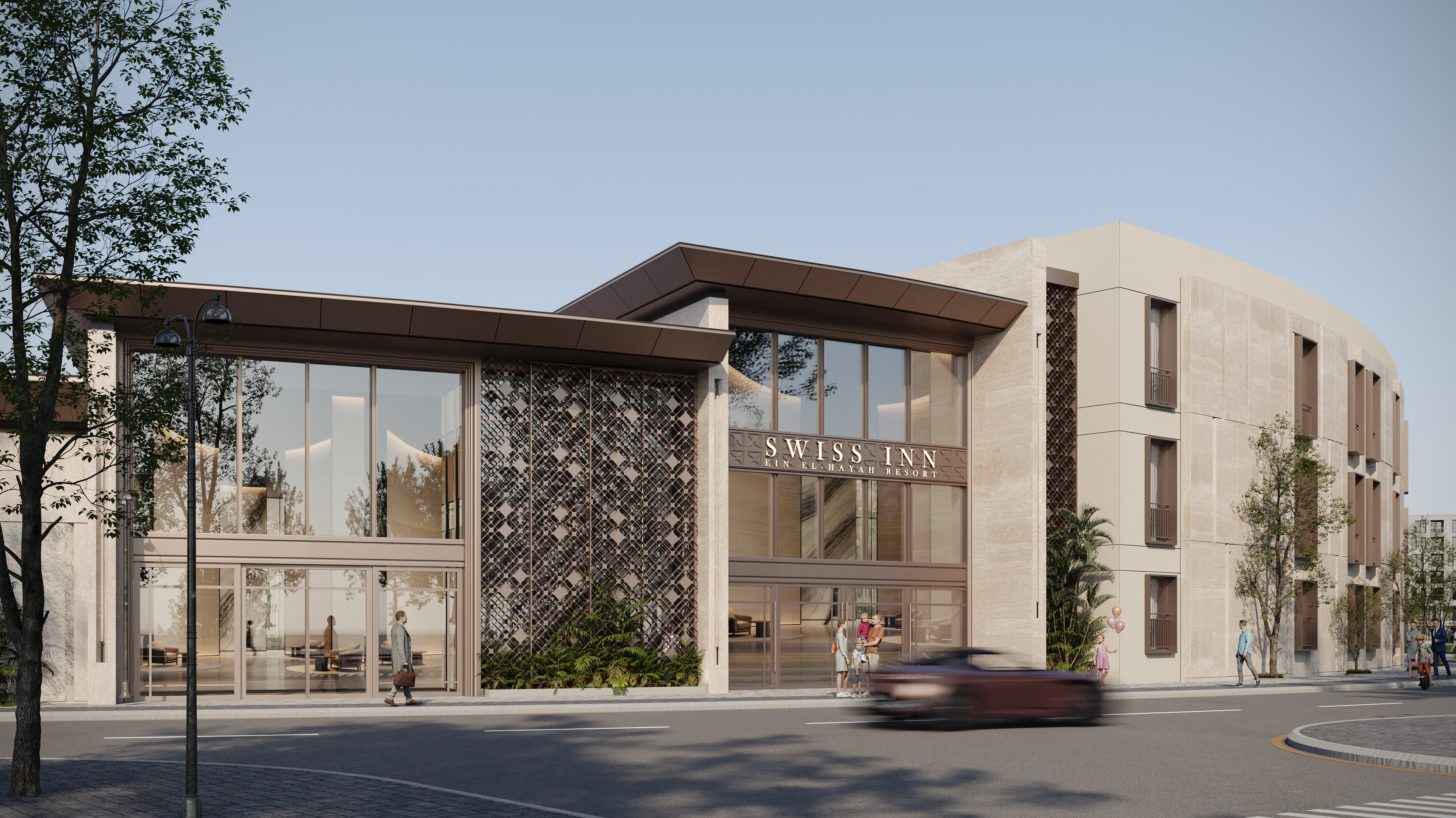 The design concept focuses on achieving a balanced integration between contemporary architecture and local identity. The building mass and façade composition are inspired by the surrounding context, using natural materials and earthy tones to create a calm and welcoming architectural expression.