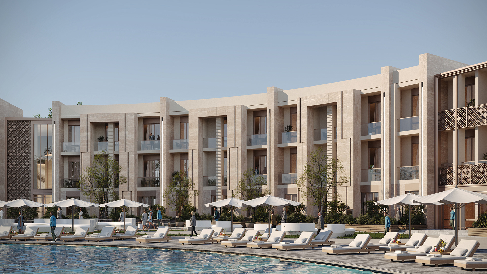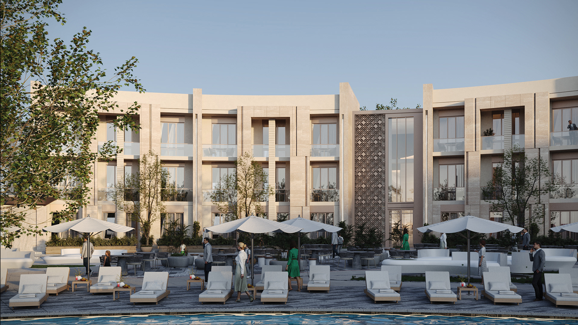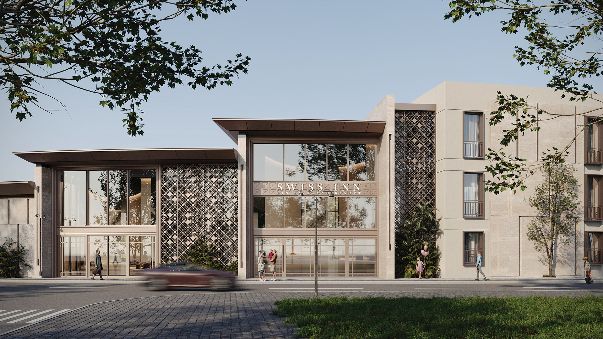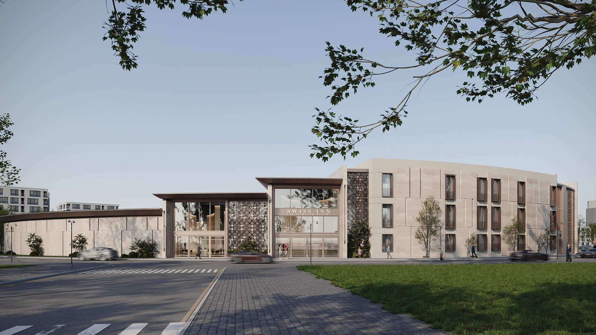 The design concept focuses on achieving a balanced integration between contemporary architecture and local identity. The building mass and façade composition are inspired by the surrounding context, using natural materials and earthy tones to create a calm and welcoming architectural expression.