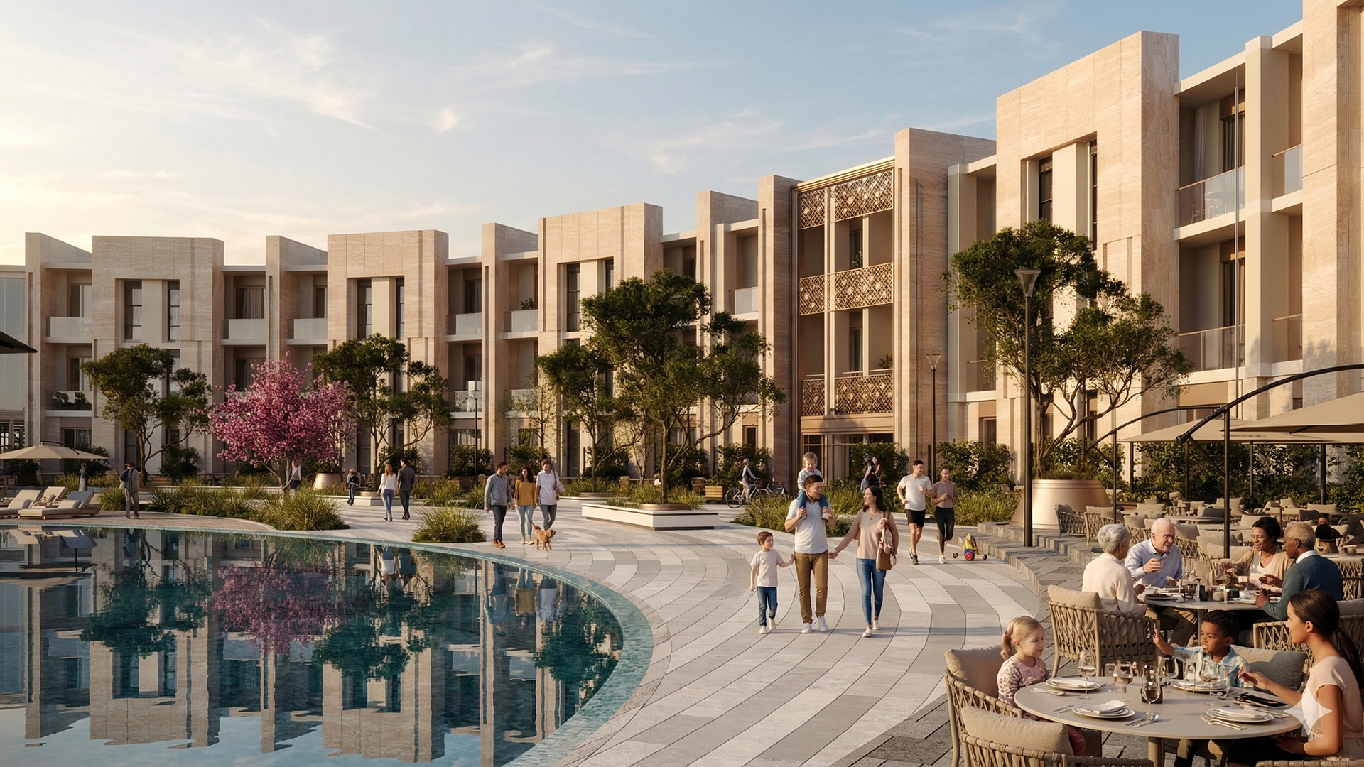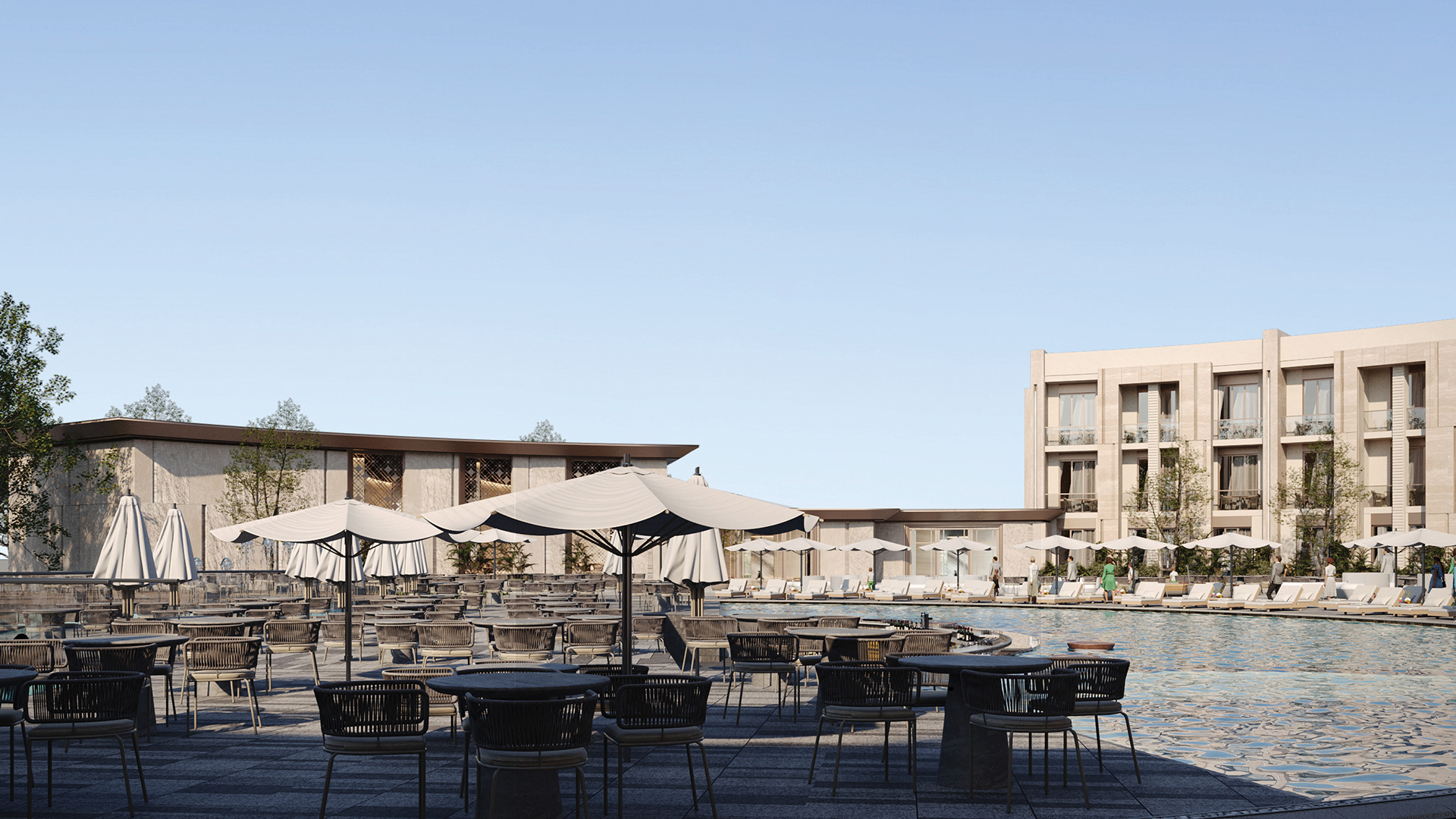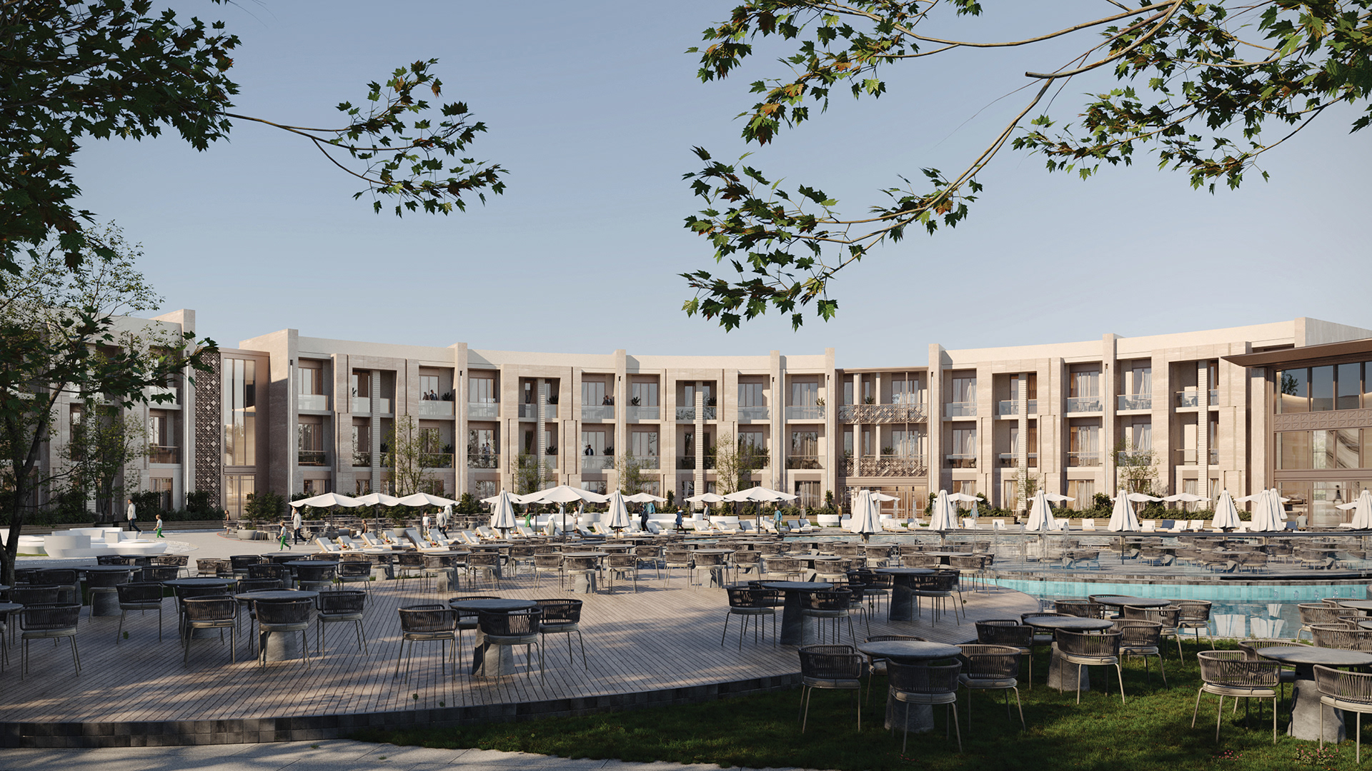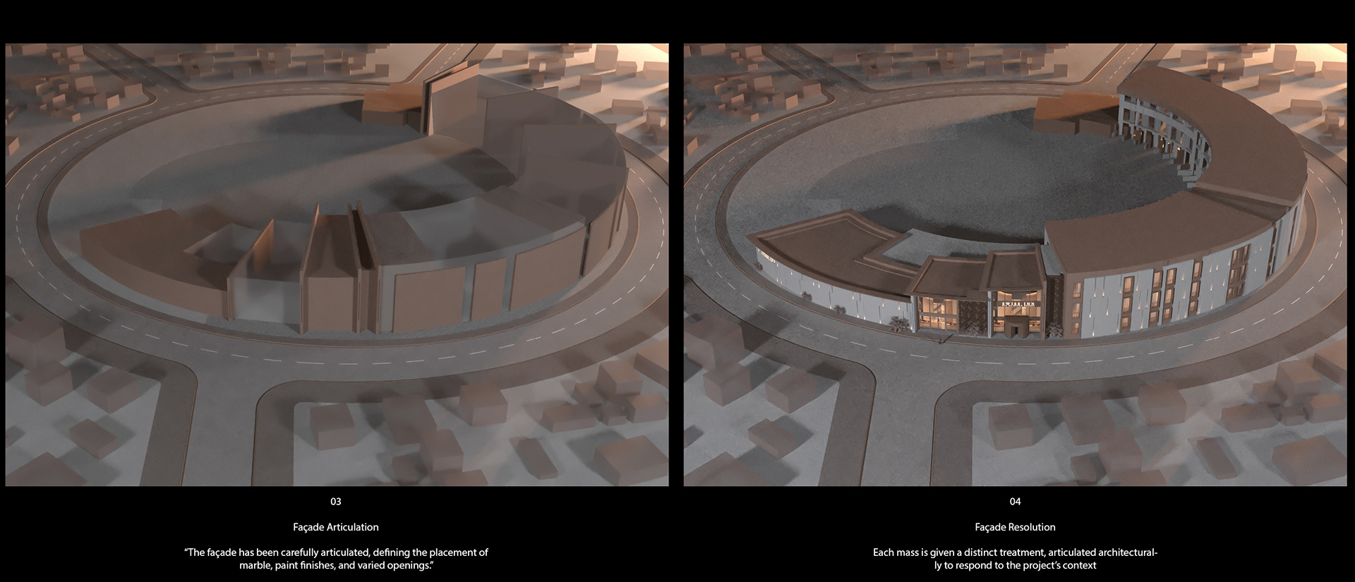 The design concept focuses on achieving a balanced integration between contemporary architecture and local identity. The building mass and façade composition are inspired by the surrounding context, using natural materials and earthy tones to create a calm and welcoming architectural expression.