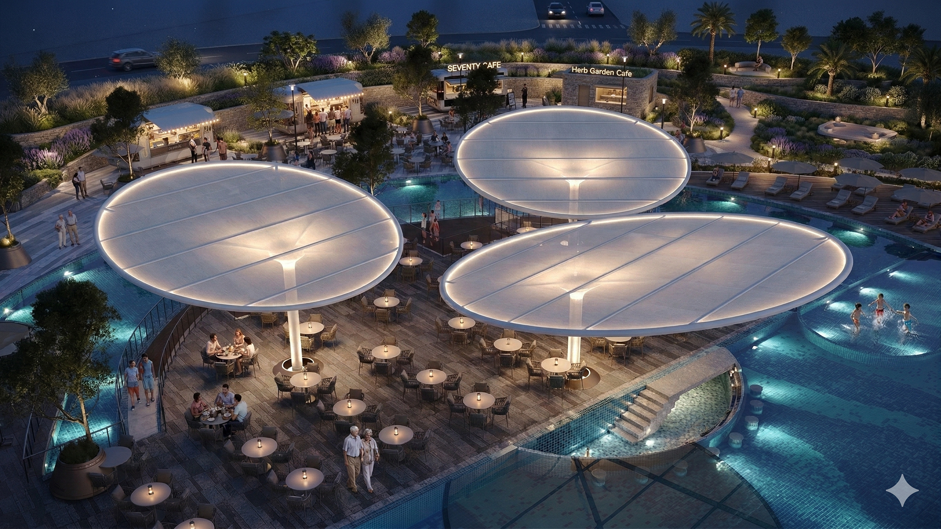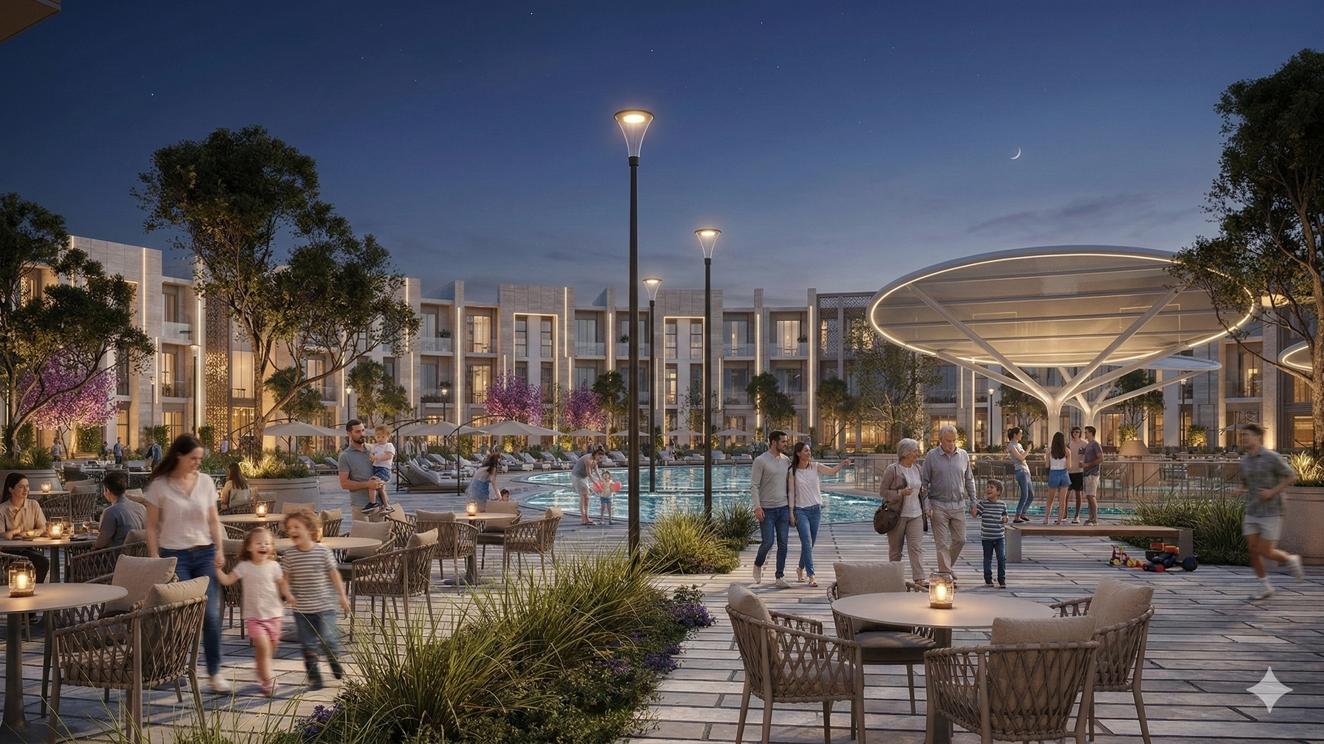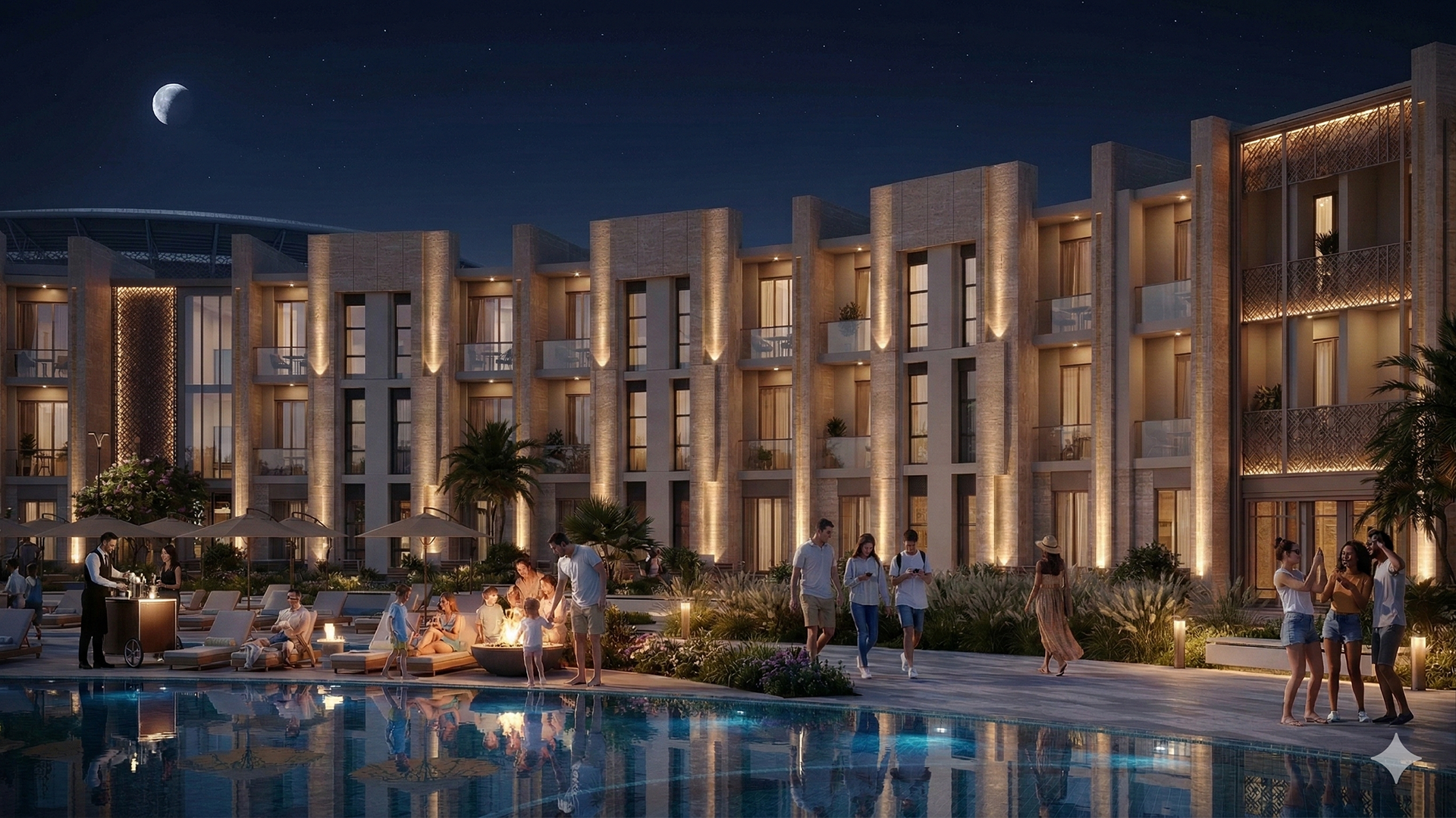Material selection plays a key role in reinforcing this concept. The use of natural-toned stone, textured surfaces, and warm accent materials evokes a sense of permanence and familiarity, echoing traditional architectural references while maintaining a modern and refined identity. These materials contribute not only to the visual character of the project but also to the emotional comfort of its users.