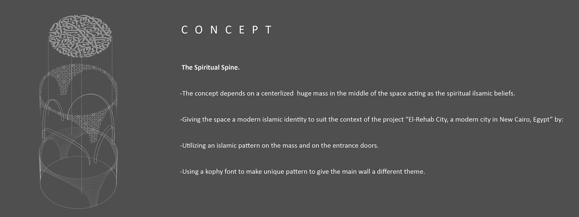 The following Project is our entry to redesign occasion hall in El-Rehab mosque. Project desired to develop the identity of the place to modern islamic and give it unique spirit that anyone can feel it.