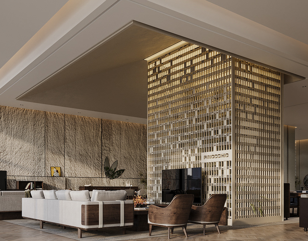 Material selection plays a key role in reinforcing this concept. The use of natural-toned stone, textured surfaces, and warm accent materials evokes a sense of permanence and familiarity, echoing traditional architectural references while maintaining a modern and refi